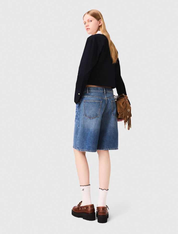 • This cropped pleated poplin shirt features a shirt collar, long sleeves with buttoned cuffs, and a button fastening with decorative buttons. Wear it with denim bermuda shorts and signature accessories like a fringed bag and chunky-soled loafers.