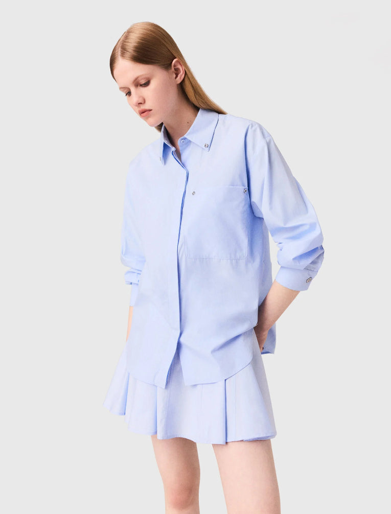 • This poplin shirt gives a twist to a wardrobe essential with its Clover jewellery buttons. Its straight cut is accented with a box pleat on the back, a chest pocket, and classic details subtly reimagined.