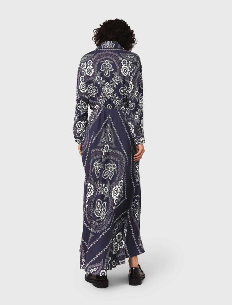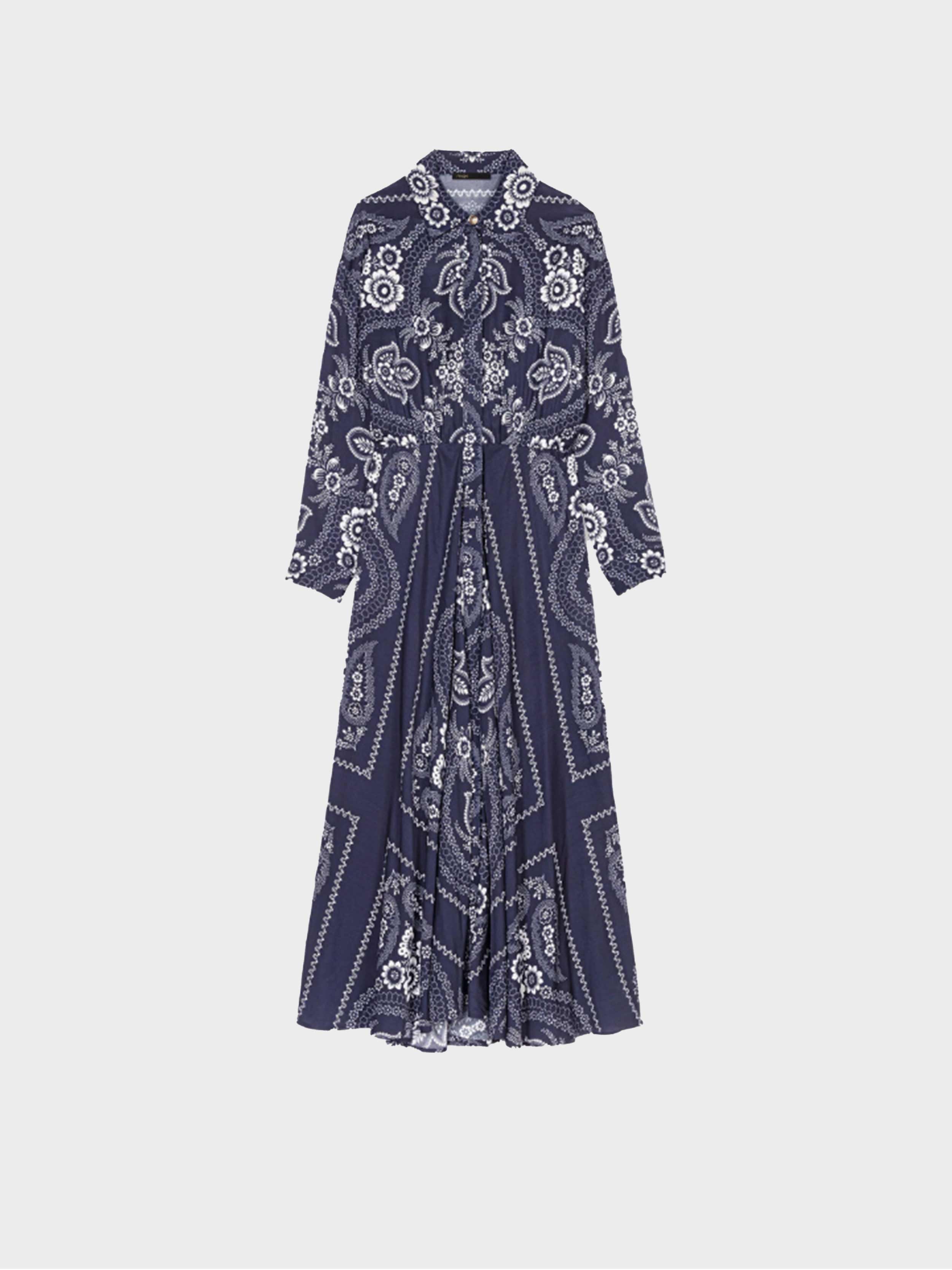 • This satin shirt dress with a floral print embodies timeless elegance. Featuring a shirt collar with a decorative button and long sleeves with buttoned cuffs, it has an elasticated waist and a fluid cut for a flattering, feminine silhouette.