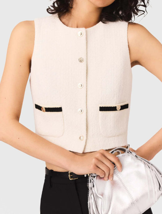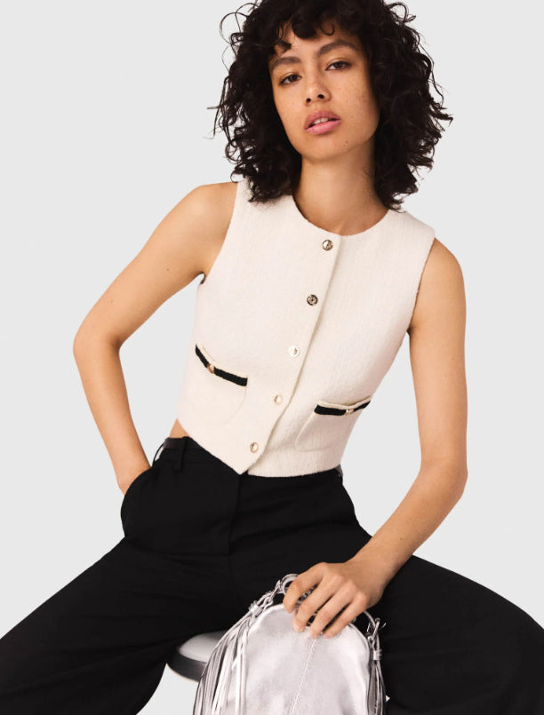 • Maje - Women's Sleeveless Tweed Lurex Top