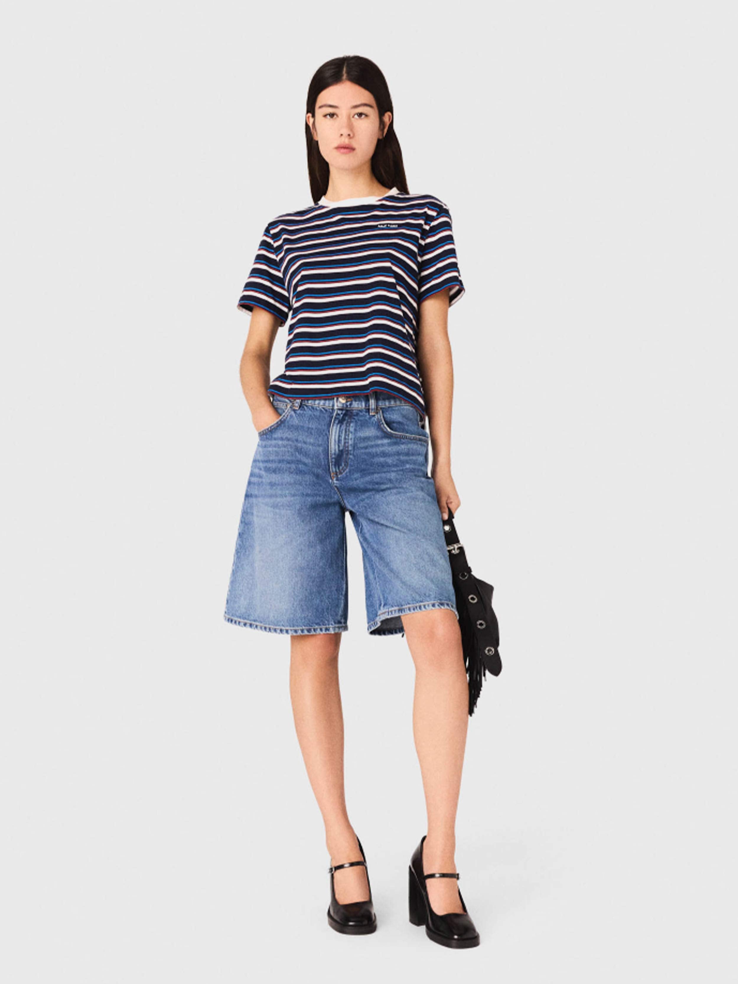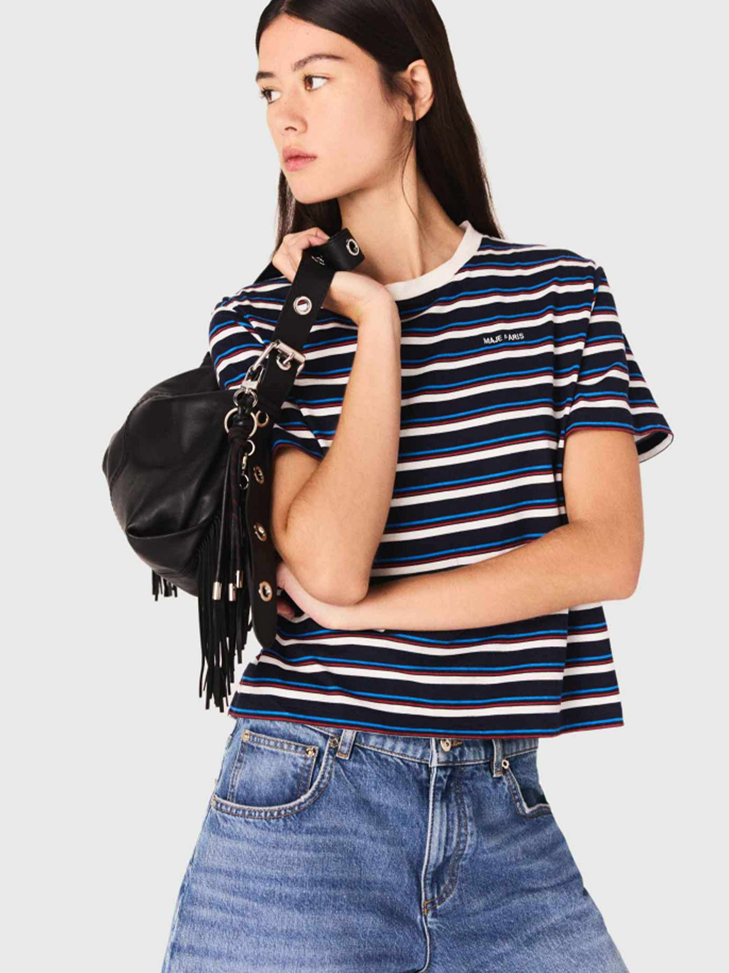 • This cropped T-shirt, a key piece of the collection, features contrasting stripes and Maje Paris embroidery on the chest. With a round neck and short sleeves, it complements all your outfits.