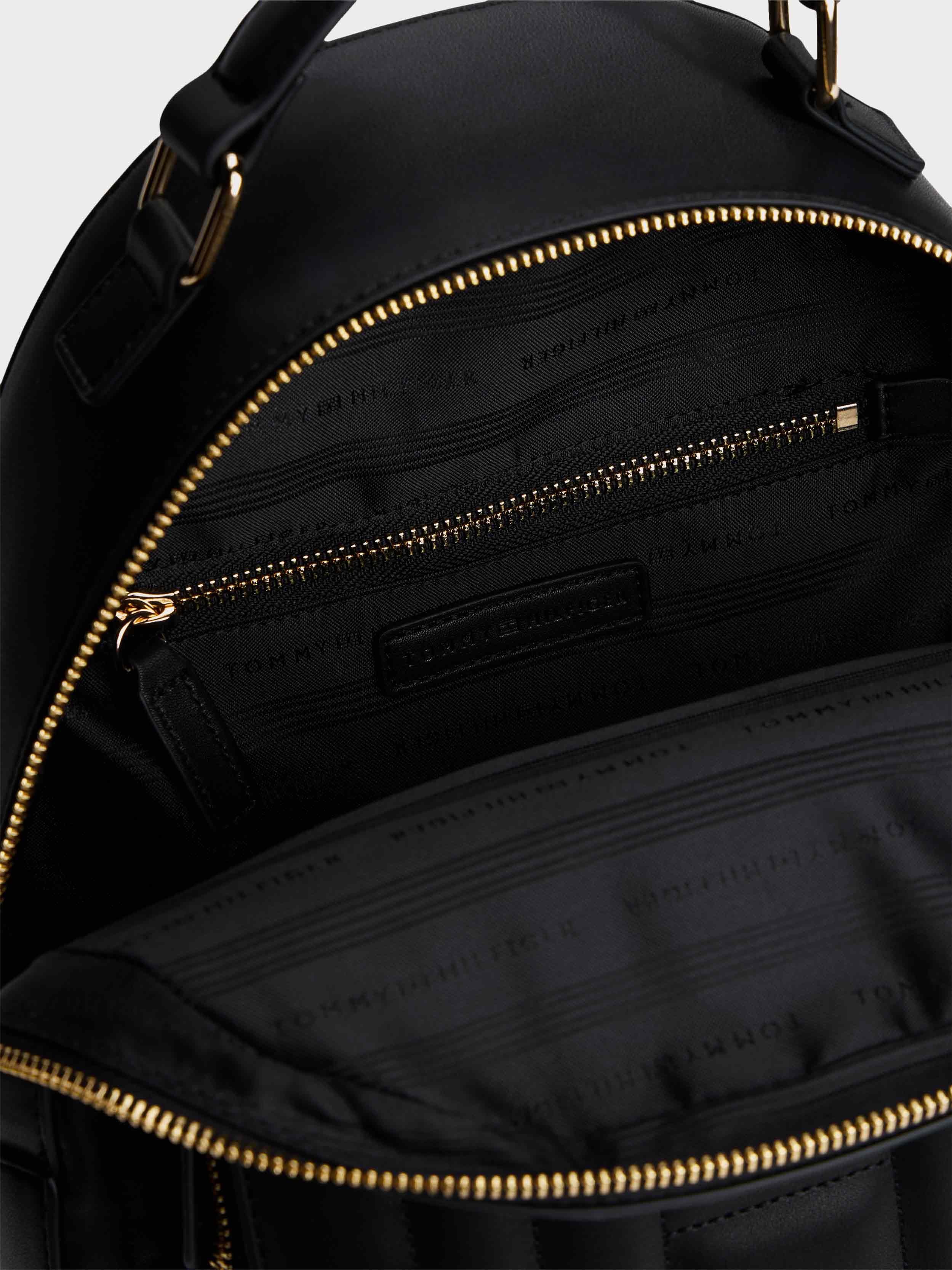 • This Tommy Hilfiger backpack, made from durable coated canvas, combines practicality and style. It features a front zip pocket for quick access to your essentials, while the main zip closure keeps your belongings secure. Adjustable shoulder straps ensure a comfortable fit tailored to your body, and the 6 cm top handle allows easy carrying when needed. Inside, a zip pocket provides safe storage for small accessories. With its sleek design, this backpack is perfect for everyday use—whether for work, outings, or travel—adding a refined touch to your look.