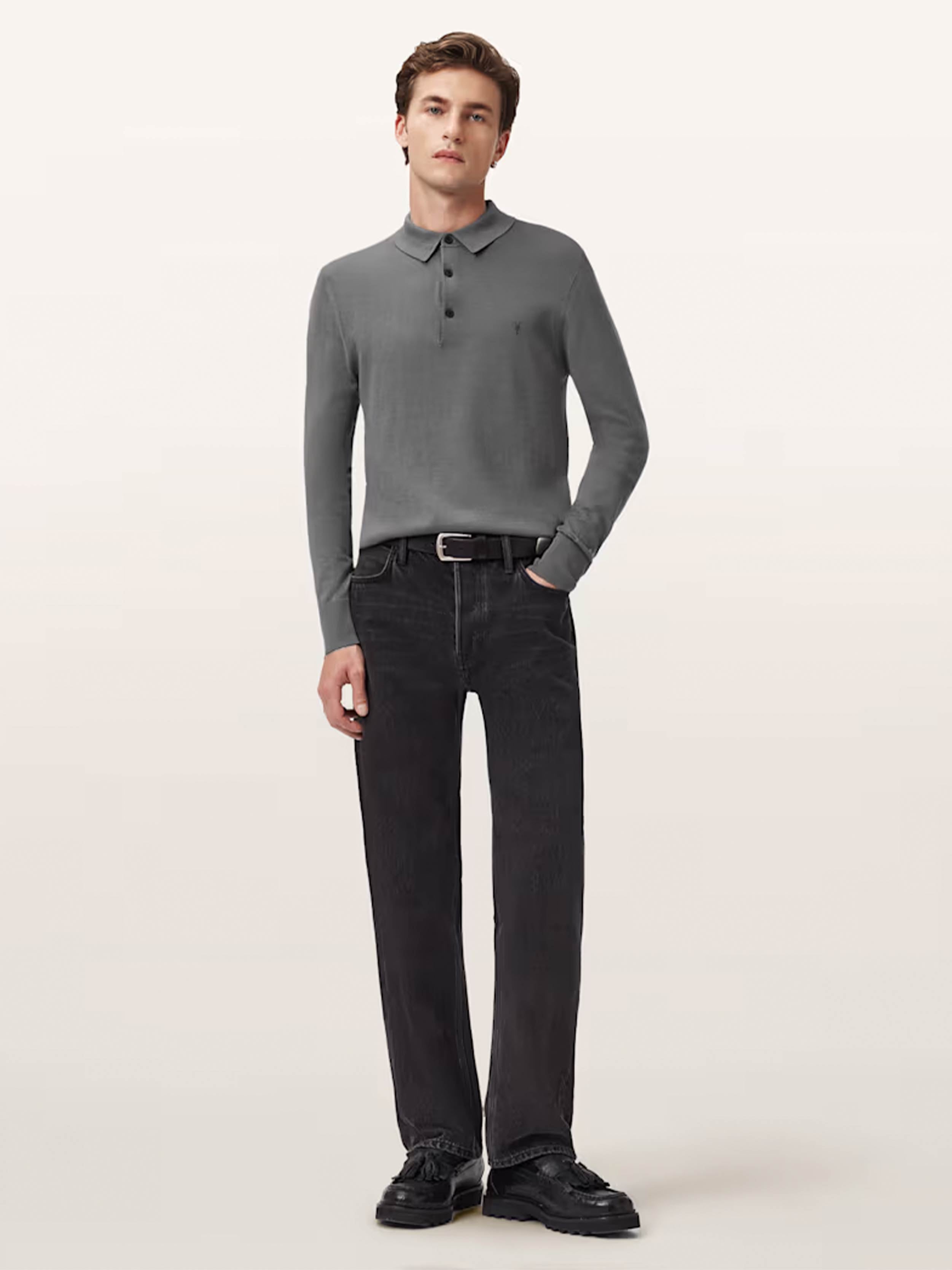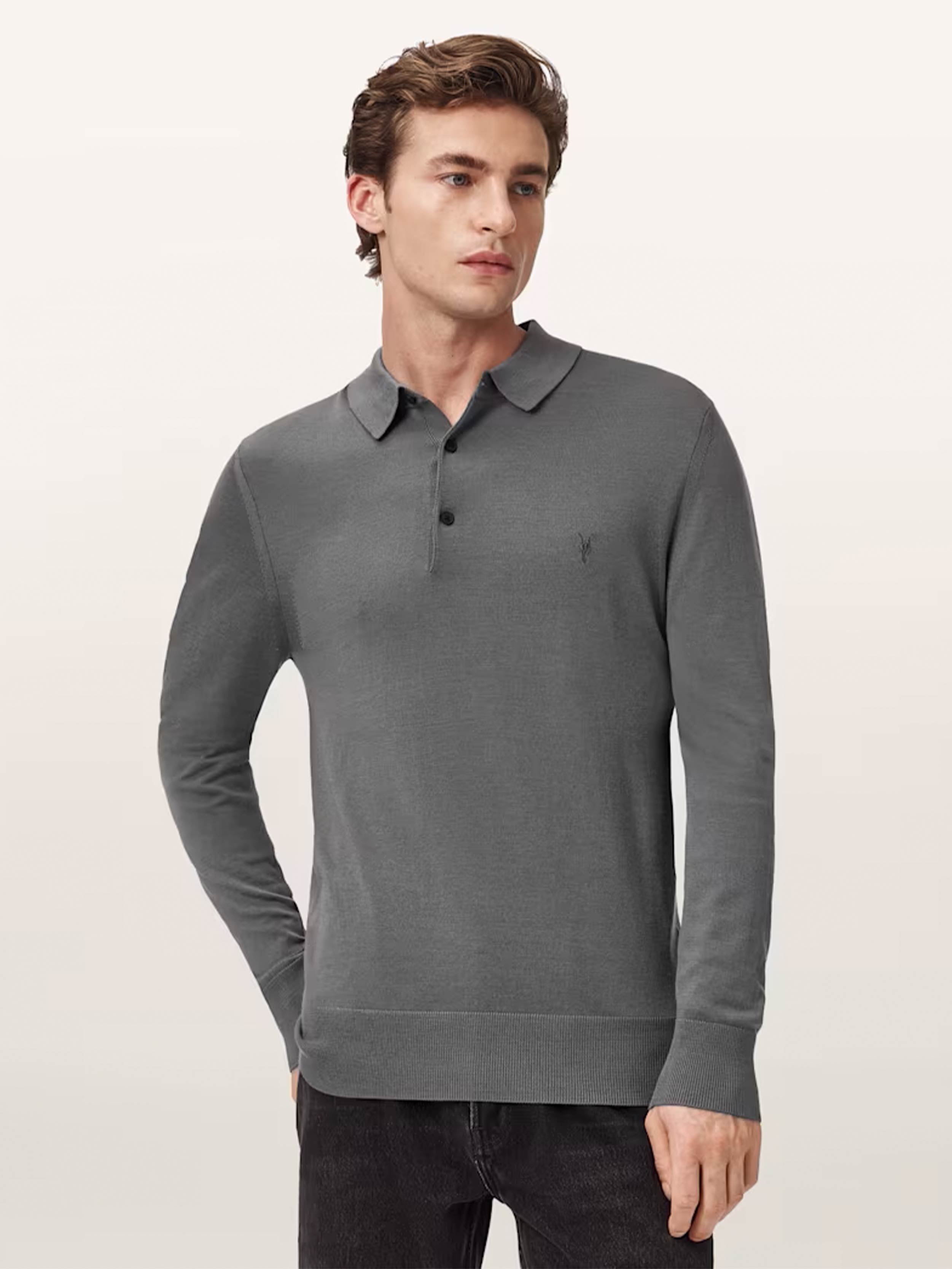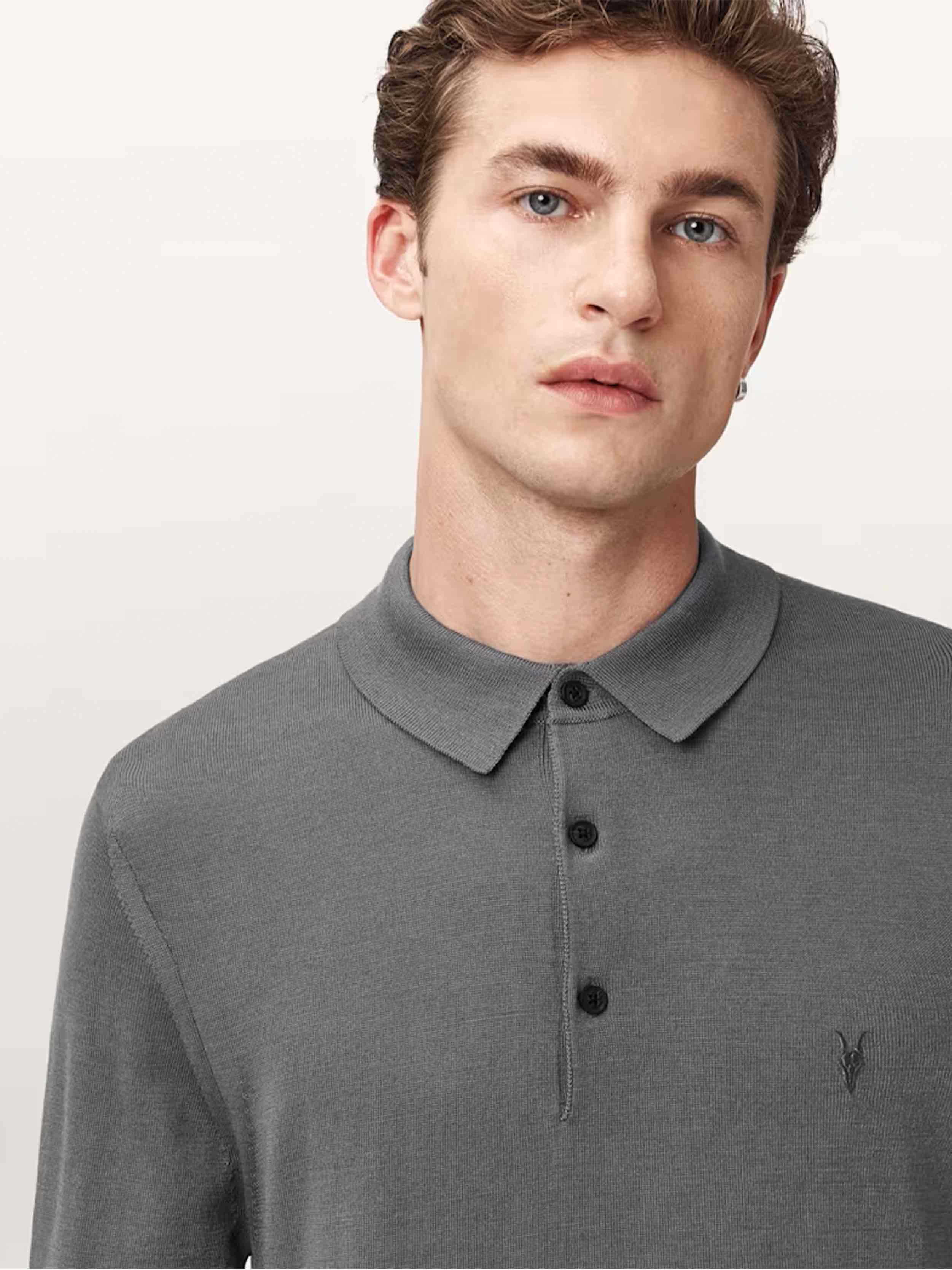 • AllSaints - Men's Mode Merino Long Sleeve Ramskull Polo