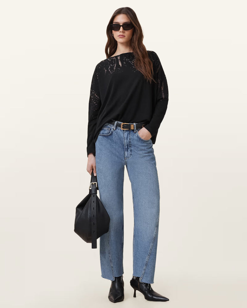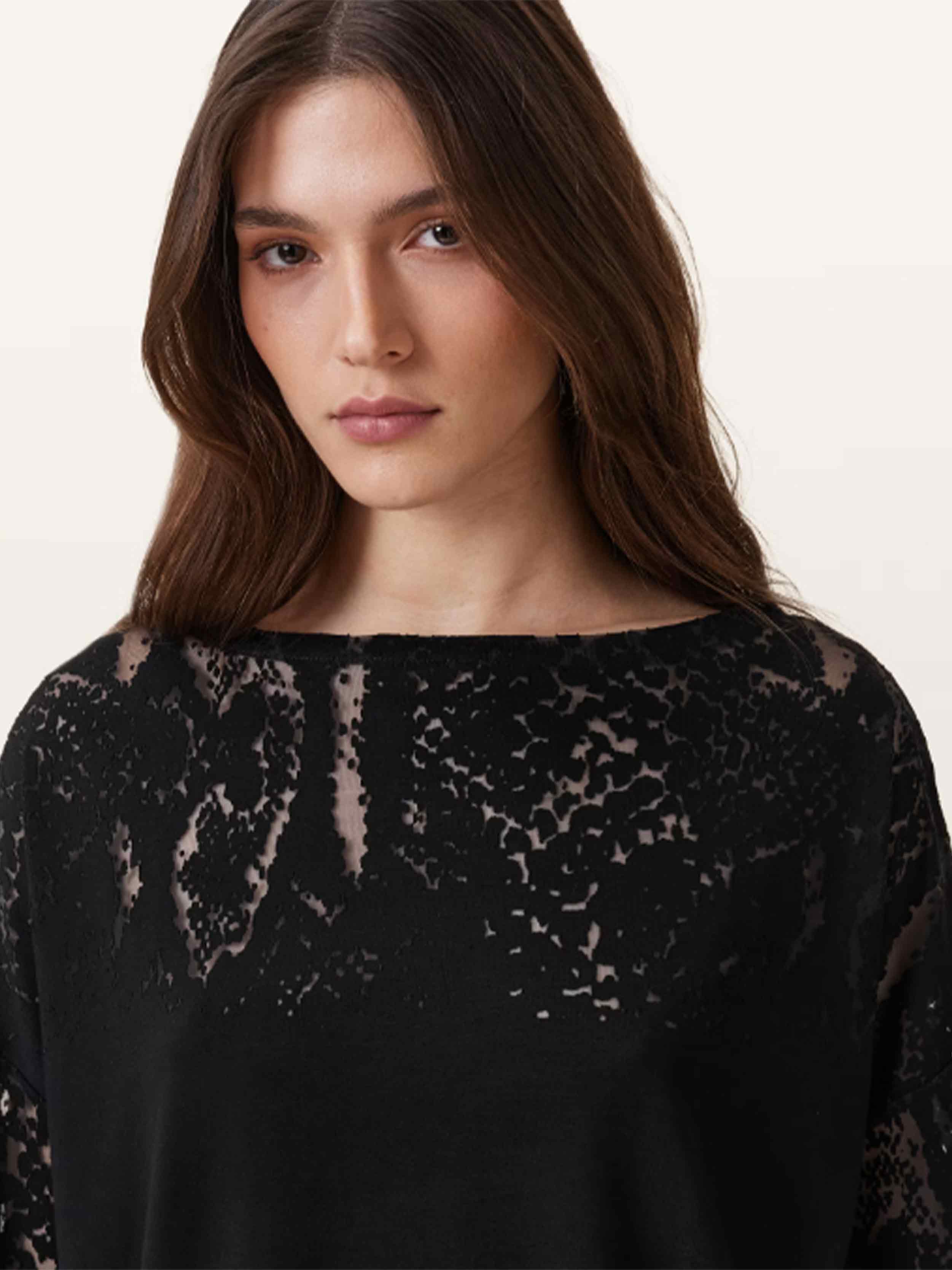 • The Rita T-Shirt. Loose and relaxed, it's perfect for layering. Crafted from a devoré fabric with an ombre snake-print finish, it's super comfy but looks good. Style it off-the-shoulder, if you like.