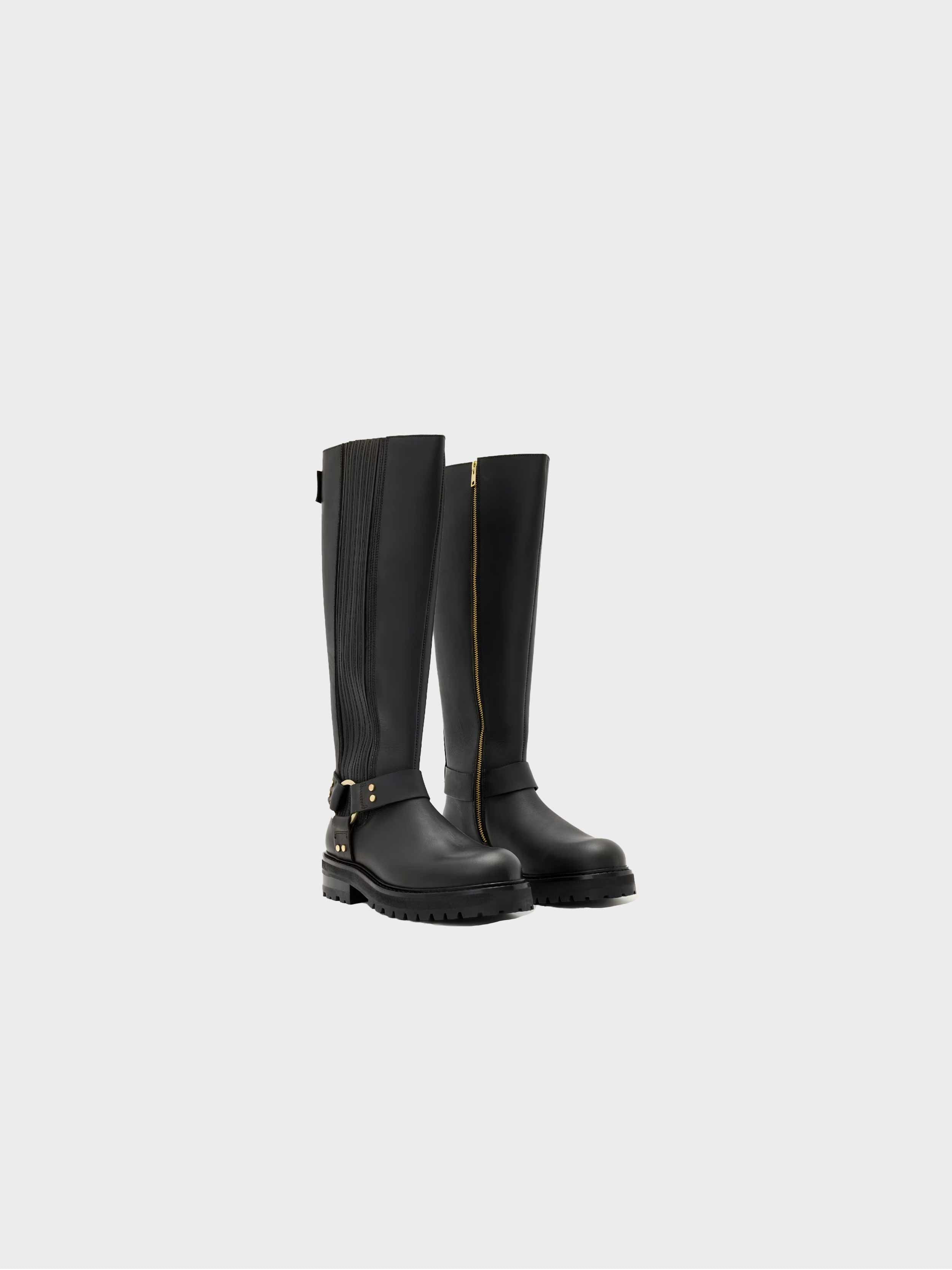 • These boots are made for adding edge and that’s just what they’ll do to your gig outfits. Our Maddie Knee High Boots are ideal for matching with a floral mini dress and leather jacket. Soak up the music whilst others enjoy your outfit.