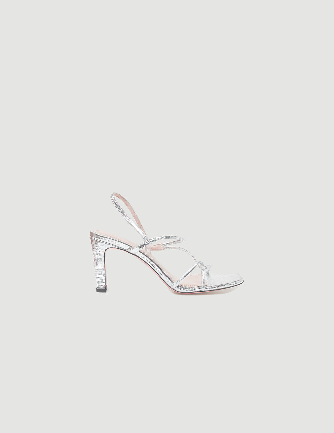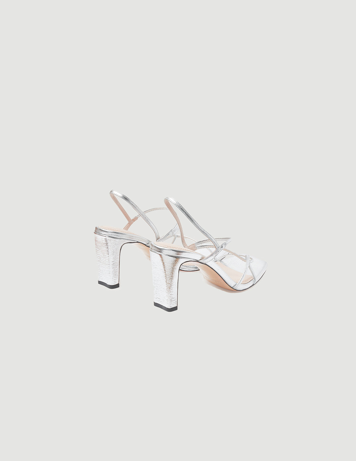 • Women's sandals with a wide heel and thin straps in metallic leather.