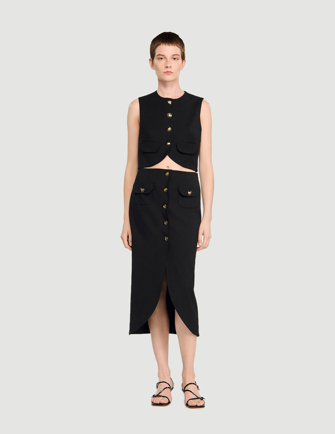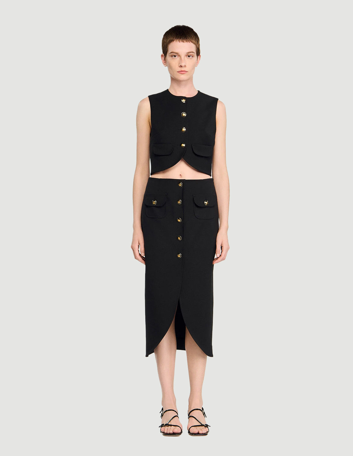 • SANDRO - Women's Buttoned Midi Skirt