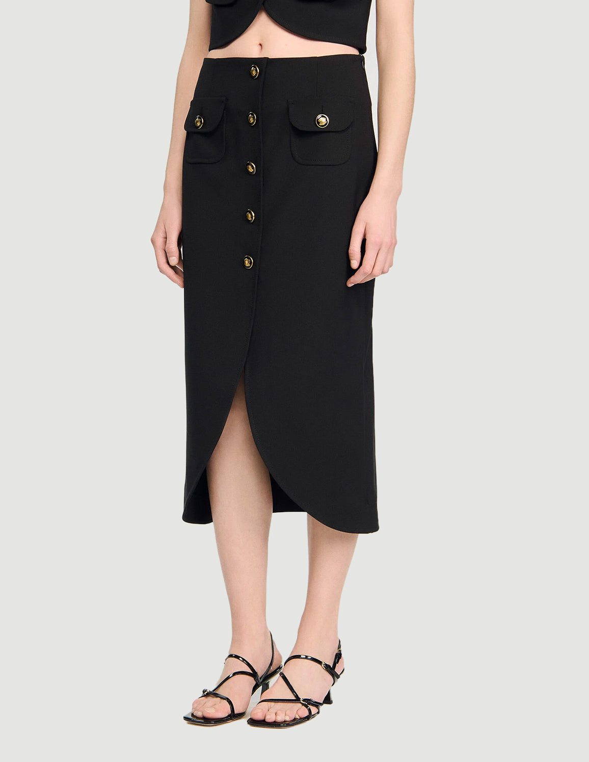 SANDRO - Women's Buttoned Midi Skirt