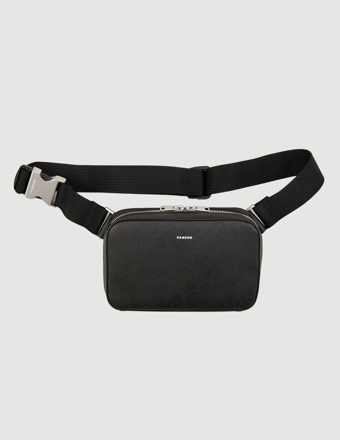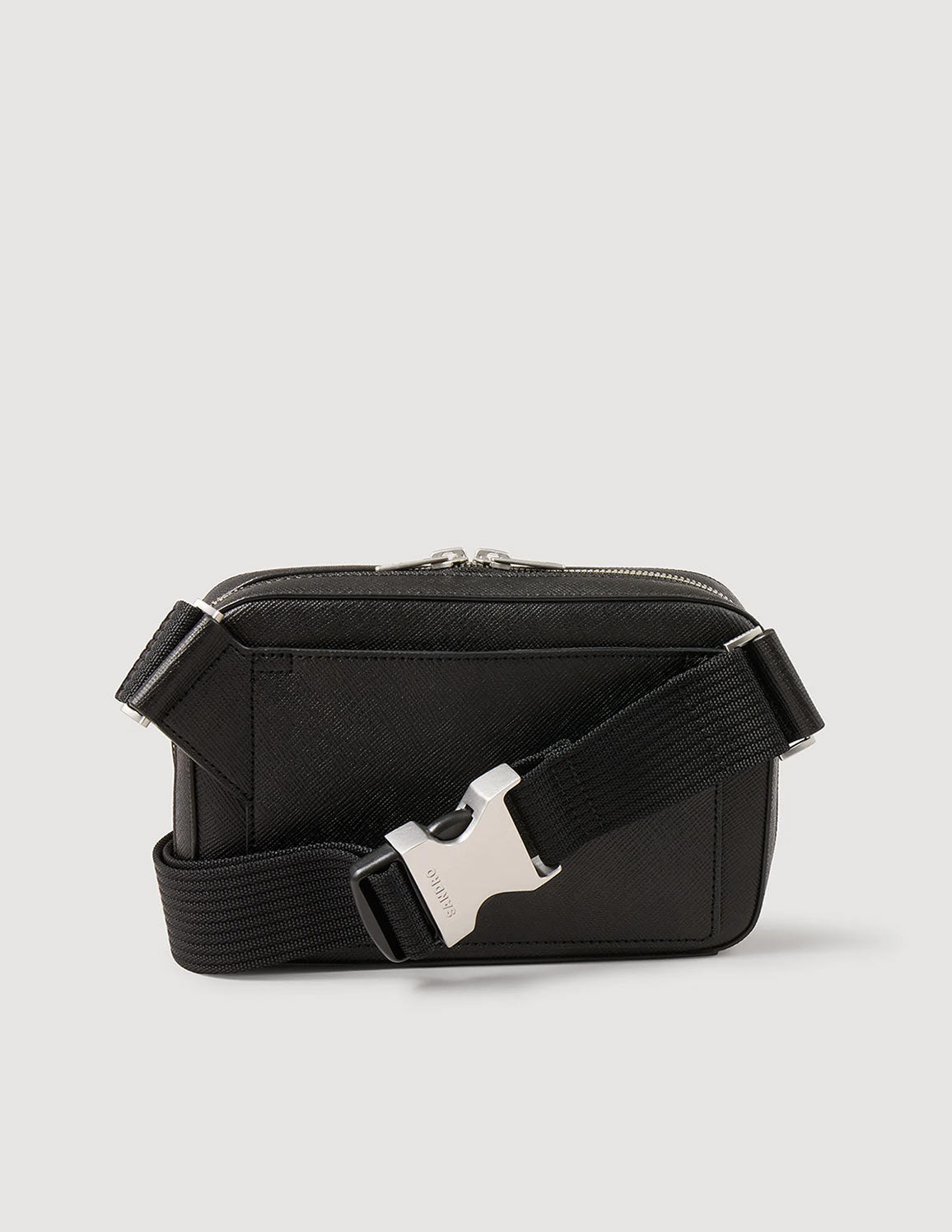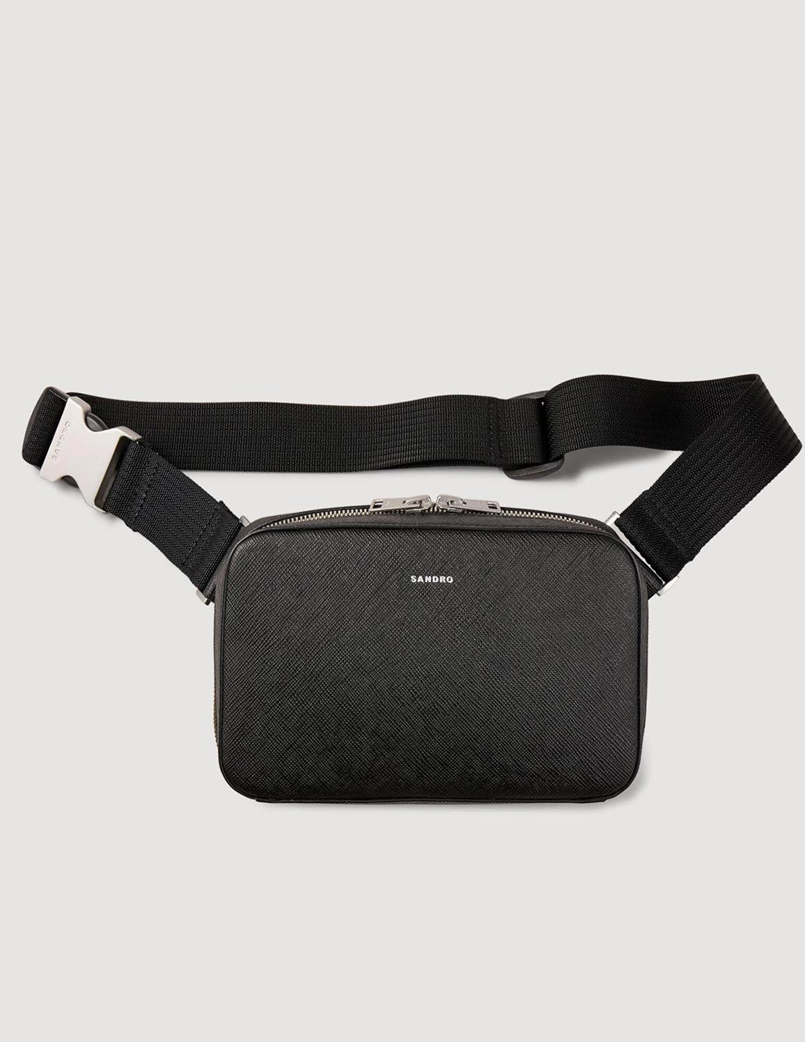 • Small bag in Saffiano patterned reconstituted leather with zip fastening, long adjustable shoulder strap and embossed SANDRO signature logo.