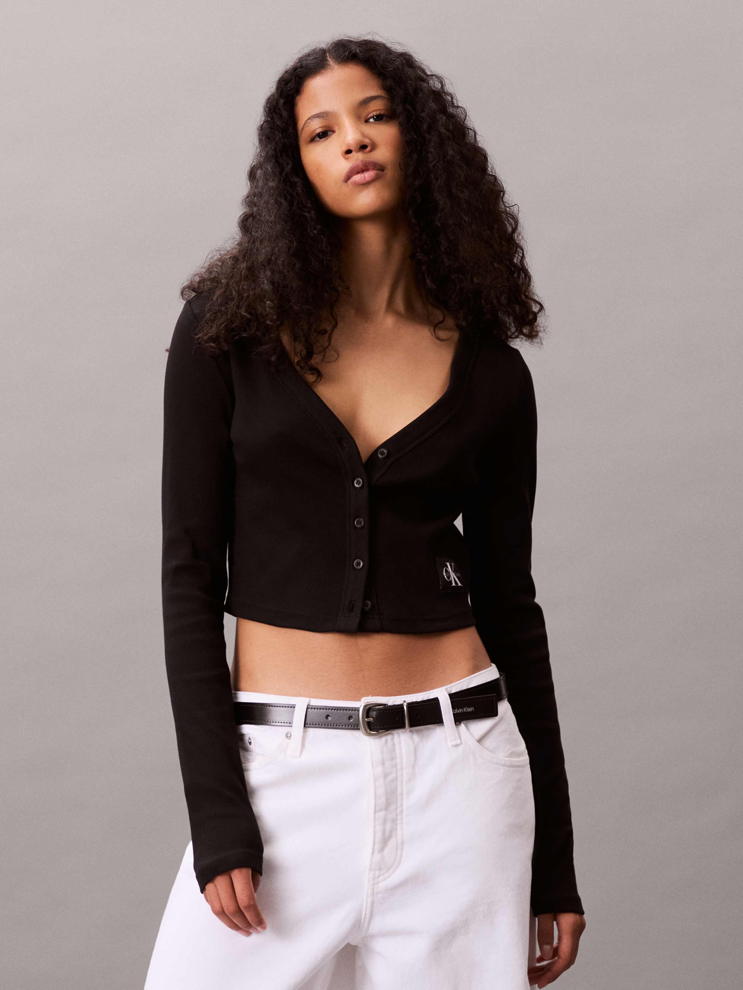 • Calvin Klein Jeans - Women's Ribbed Long Sleeve Crop Top
