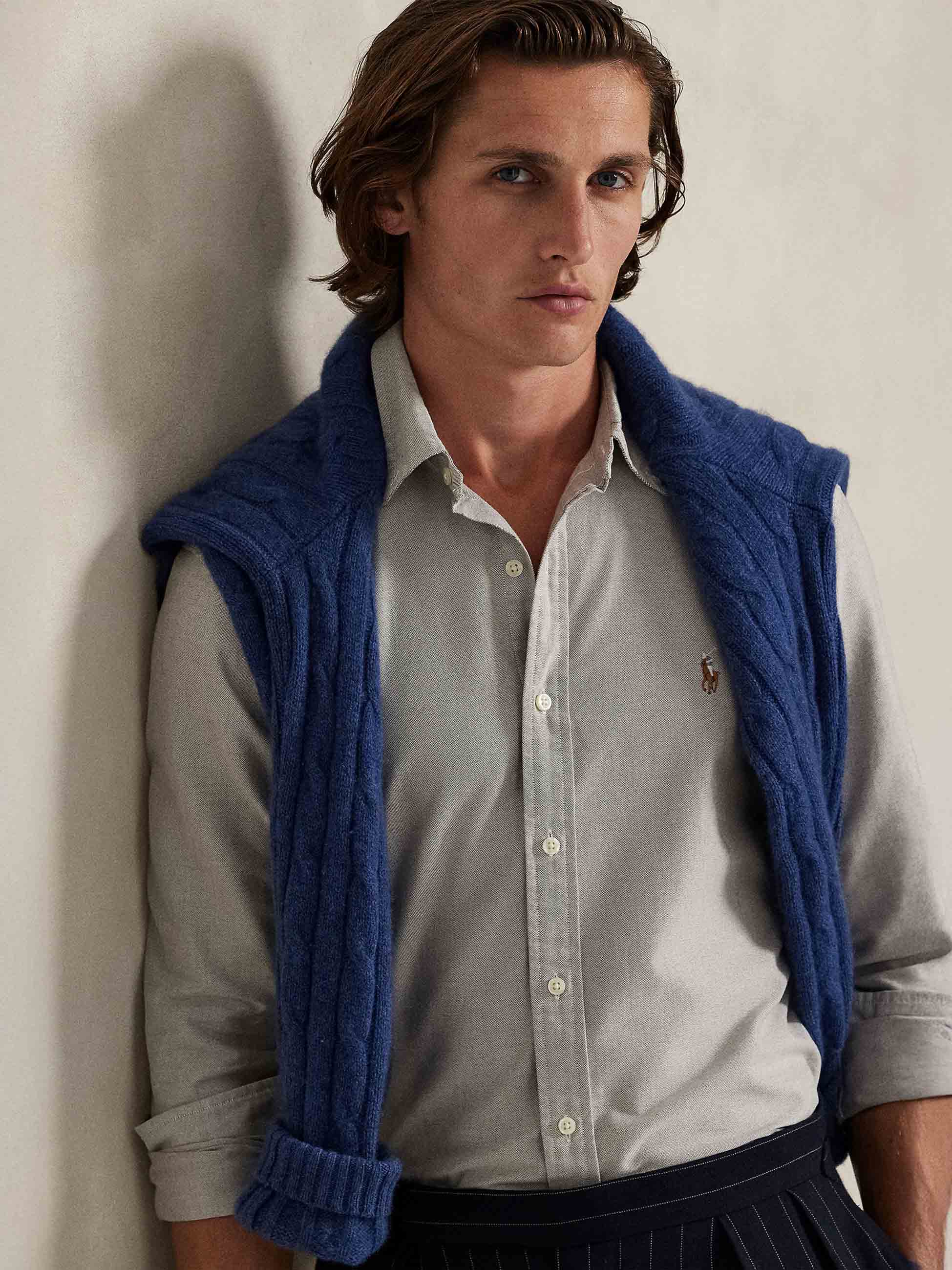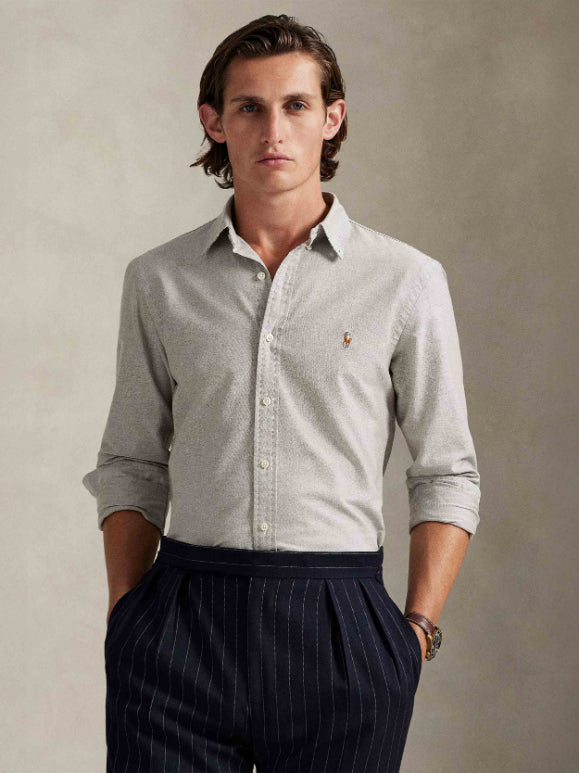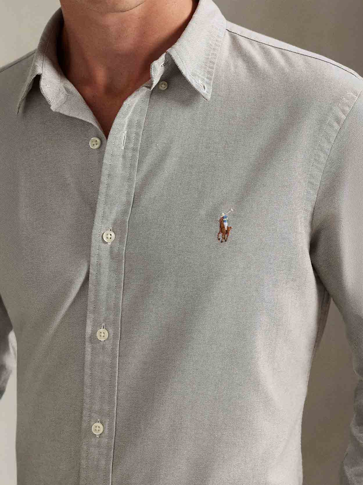 • The oxford shirt made its debut at the beginning of the Ralph Lauren brand, and since then it has solidified its status as a pillar of the Polo look. Today, Mr. Lauren continues to design countless variations of his iconic shirt, including this trim version that is embroidered with our multicoloured signature Pony.