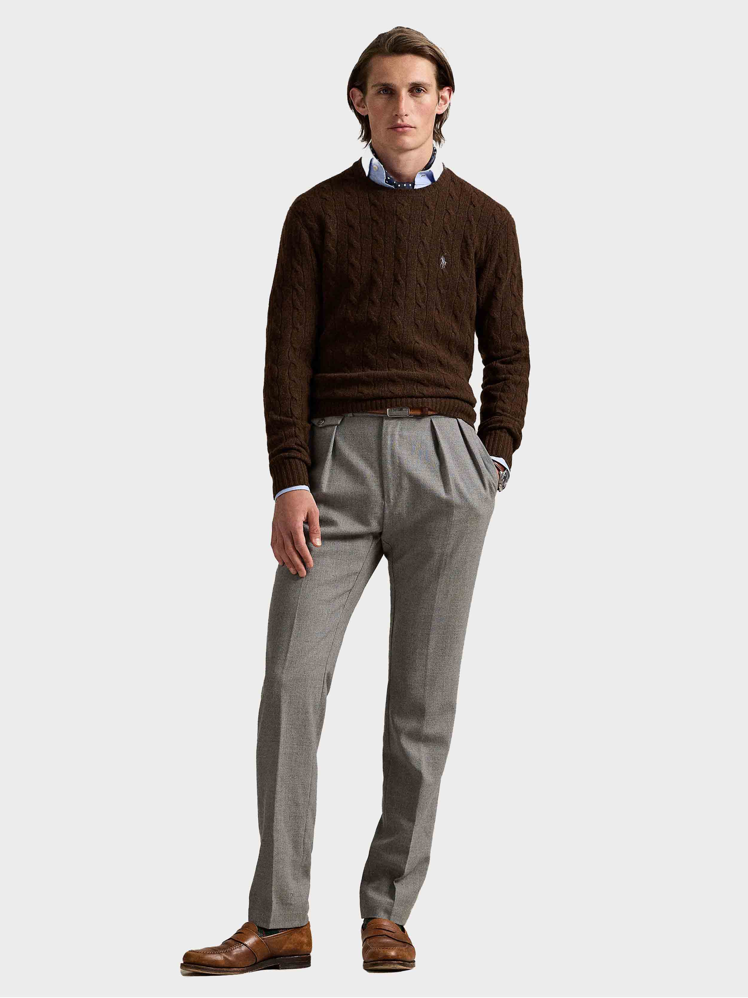 • This interpretation of our iconic cable-knit jumper is crafted from Italian yarn that's spun with wool and cashmere.