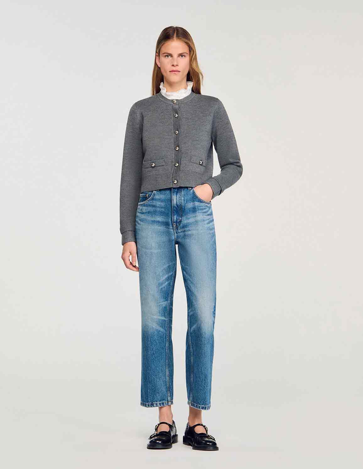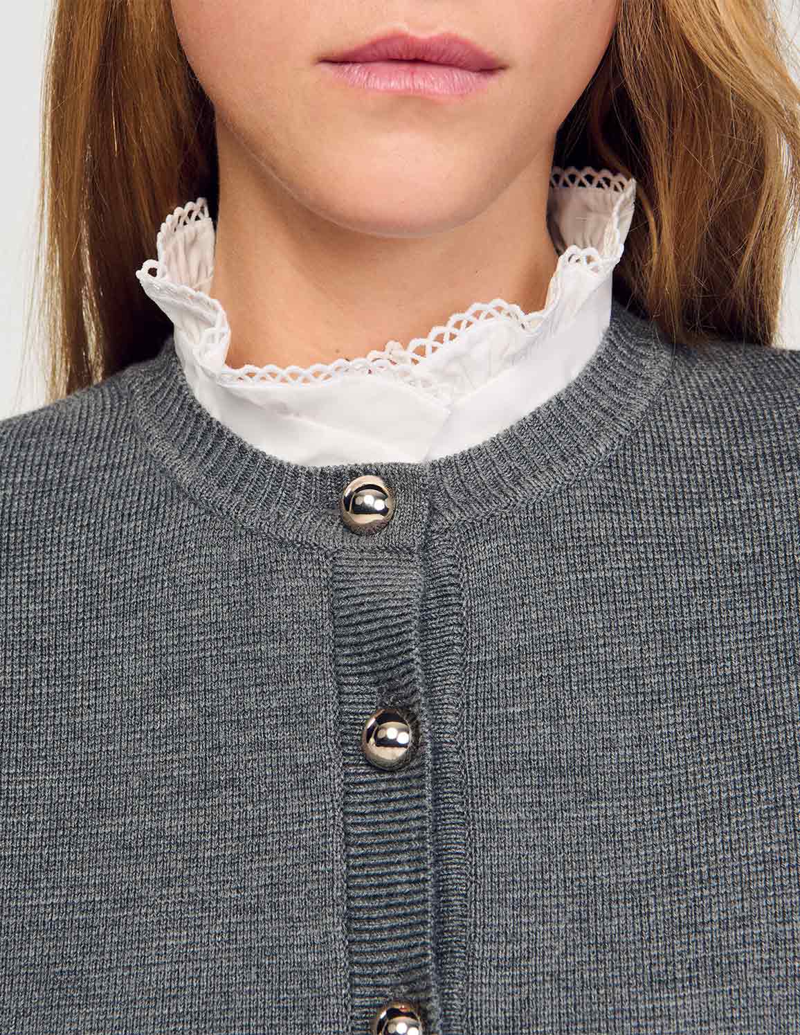 • SANDRO - Women's Cardigan With Ruffle Collar