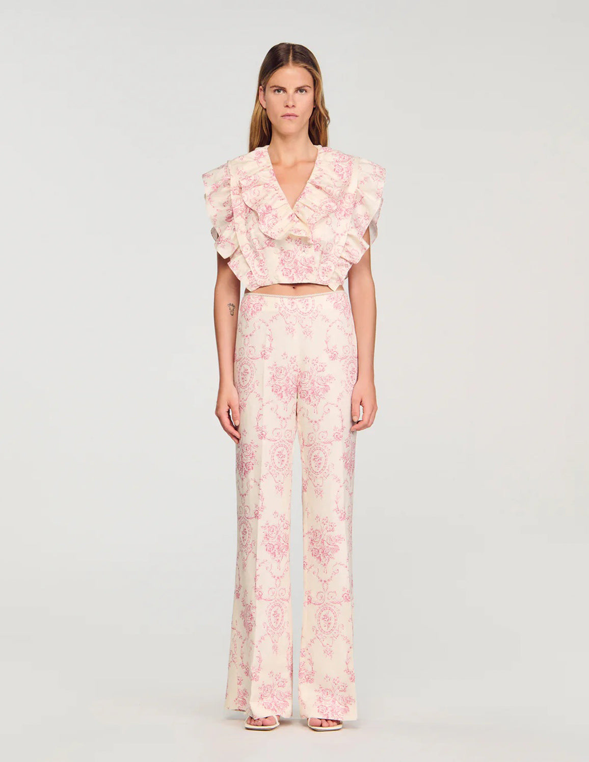 SANDRO - Women's Darwin Floral Trousers Pink Ecru