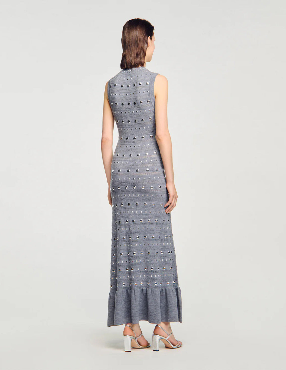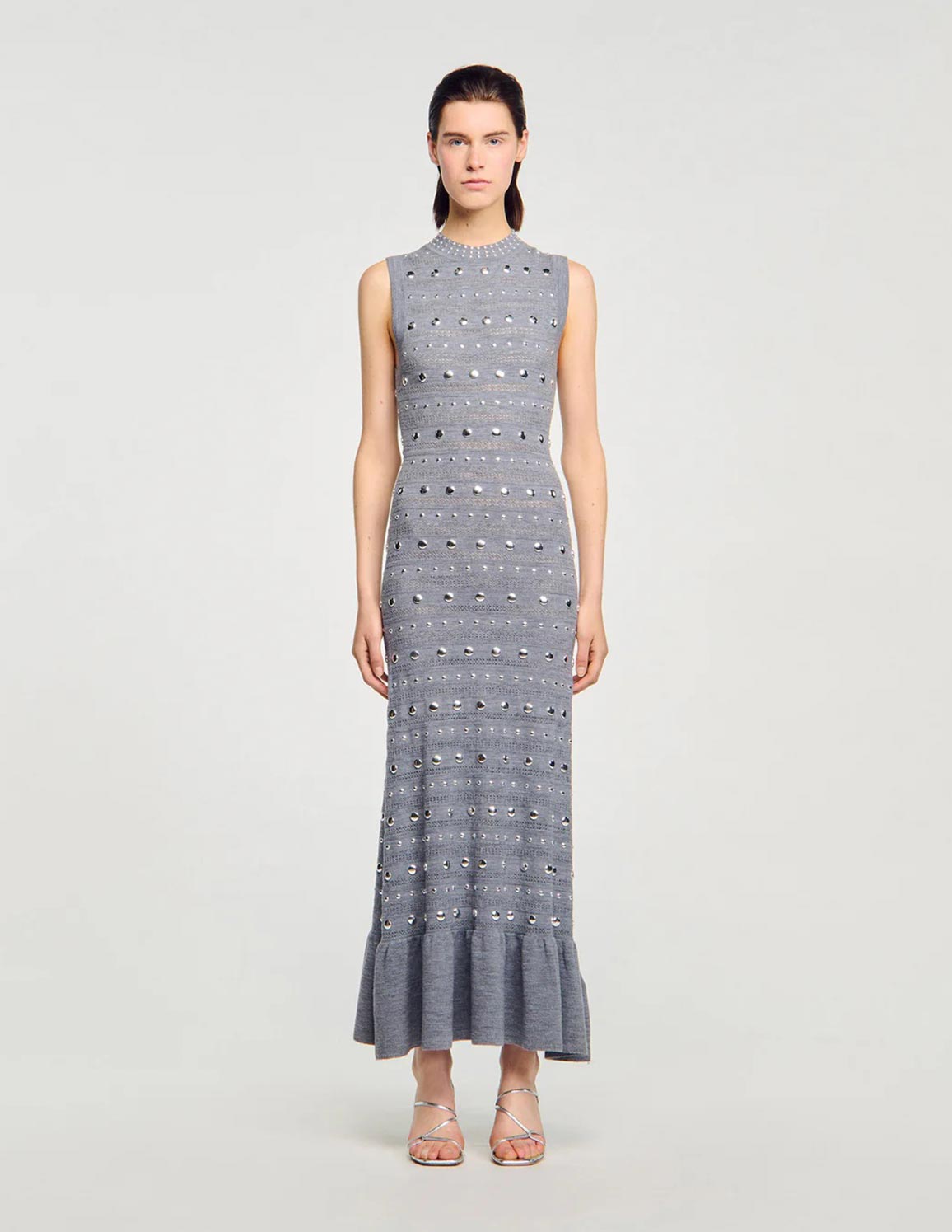 SANDRO - Women's Venus Knit Maxi Dress With Studs Grey
