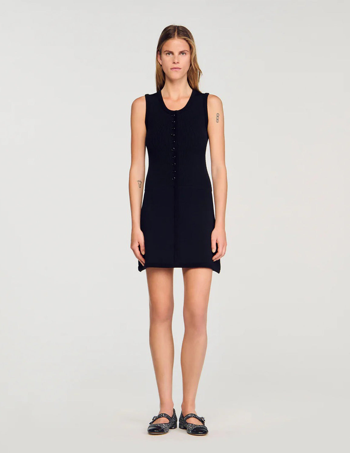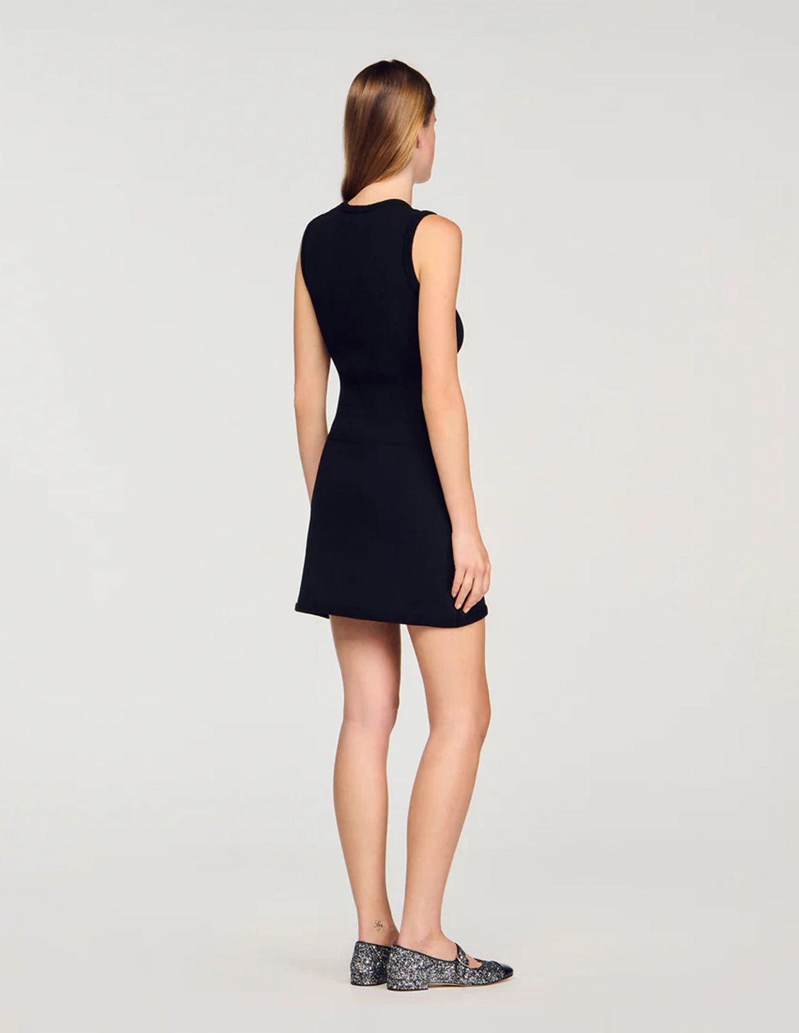 SANDRO - Women's Axelia Short Ribbed Knit Dress Black