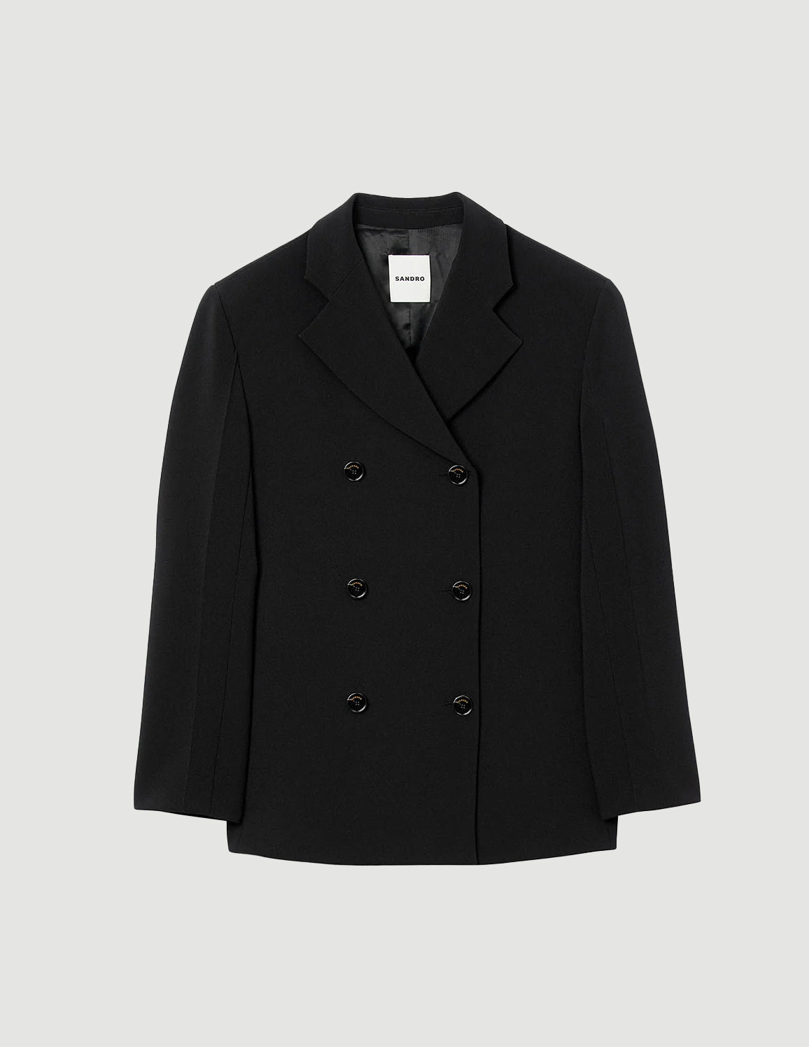 • Double-breasted suit jacket with a tailored collar, long sleeves and double welt pockets.
