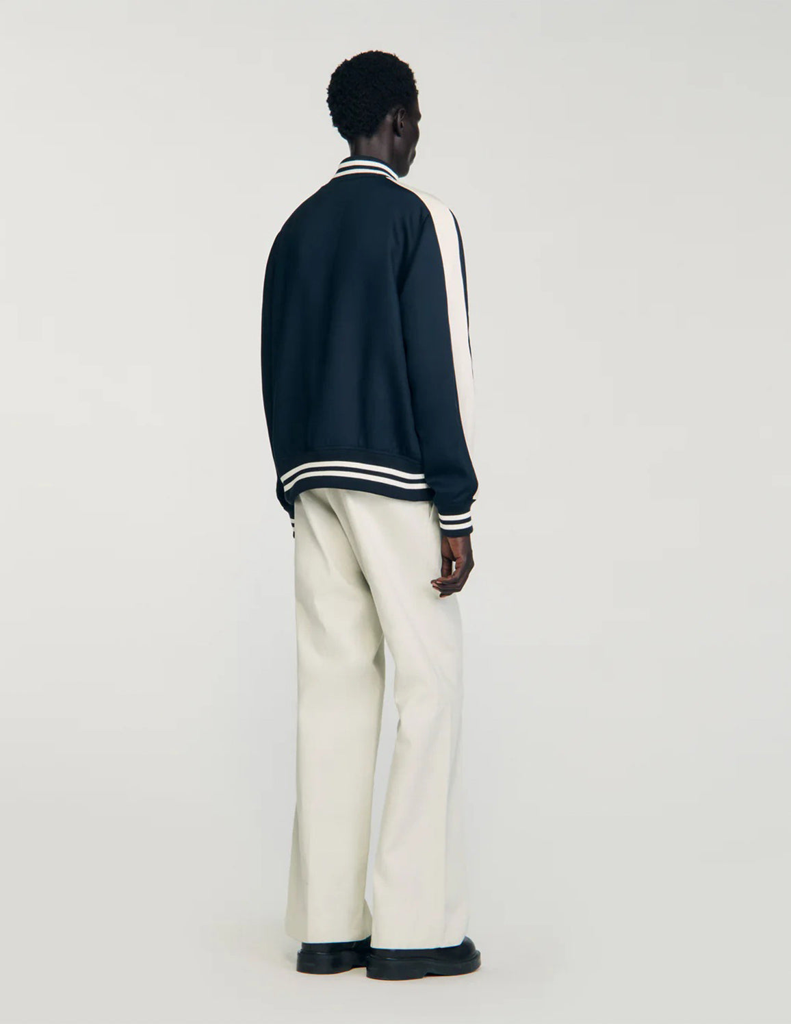 SANDRO - Men's Teddy Varsity Zip-Up Varsity Jacket Navy Blue