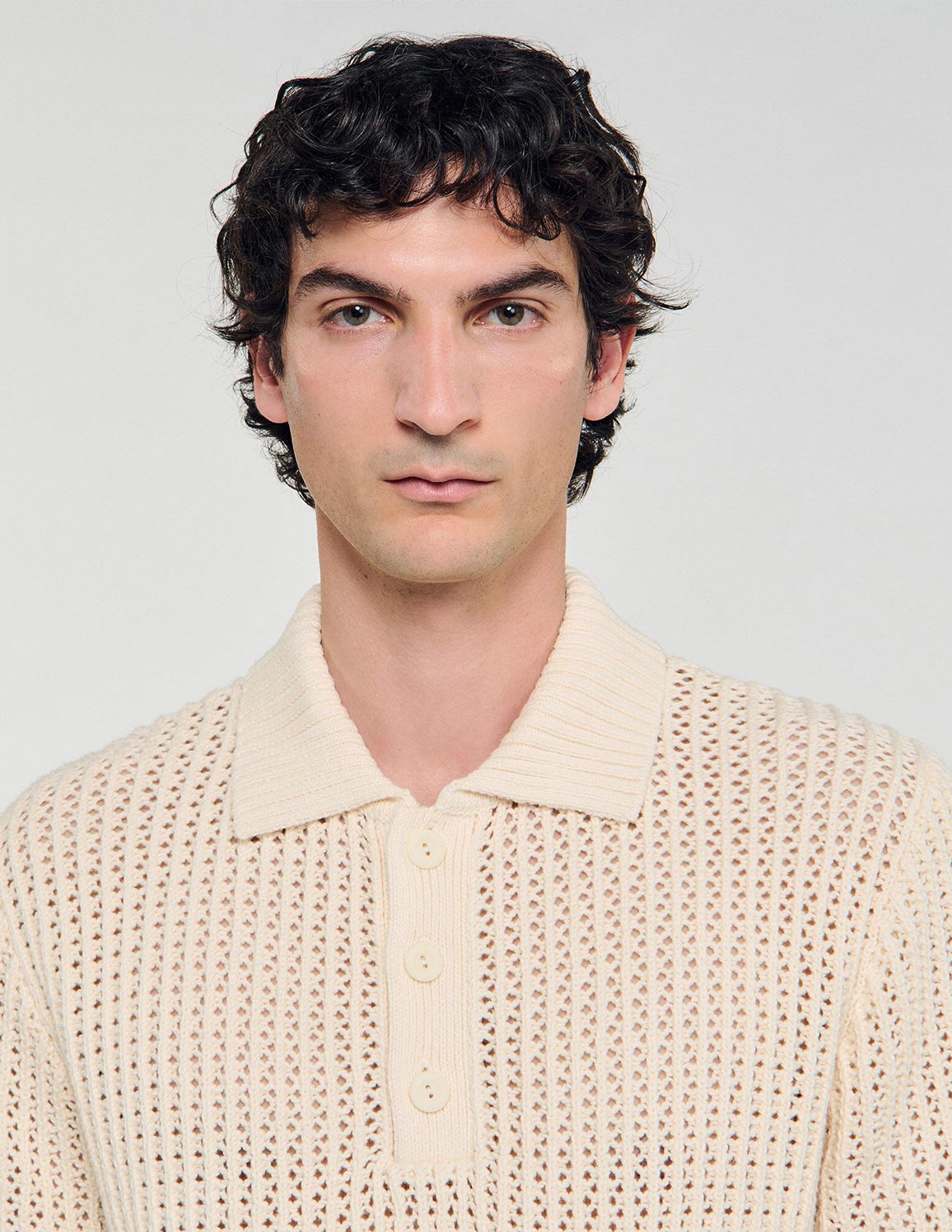 • Fine knit polo shirt with rope jacquard, polo collar and short sleeves.