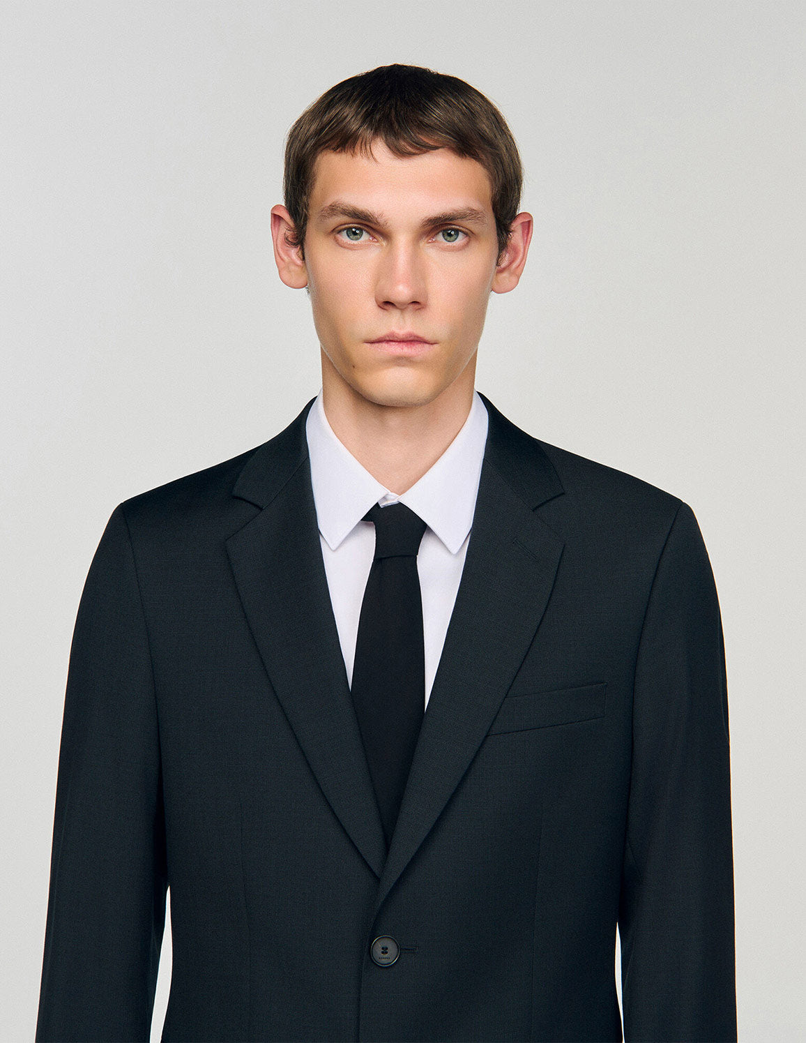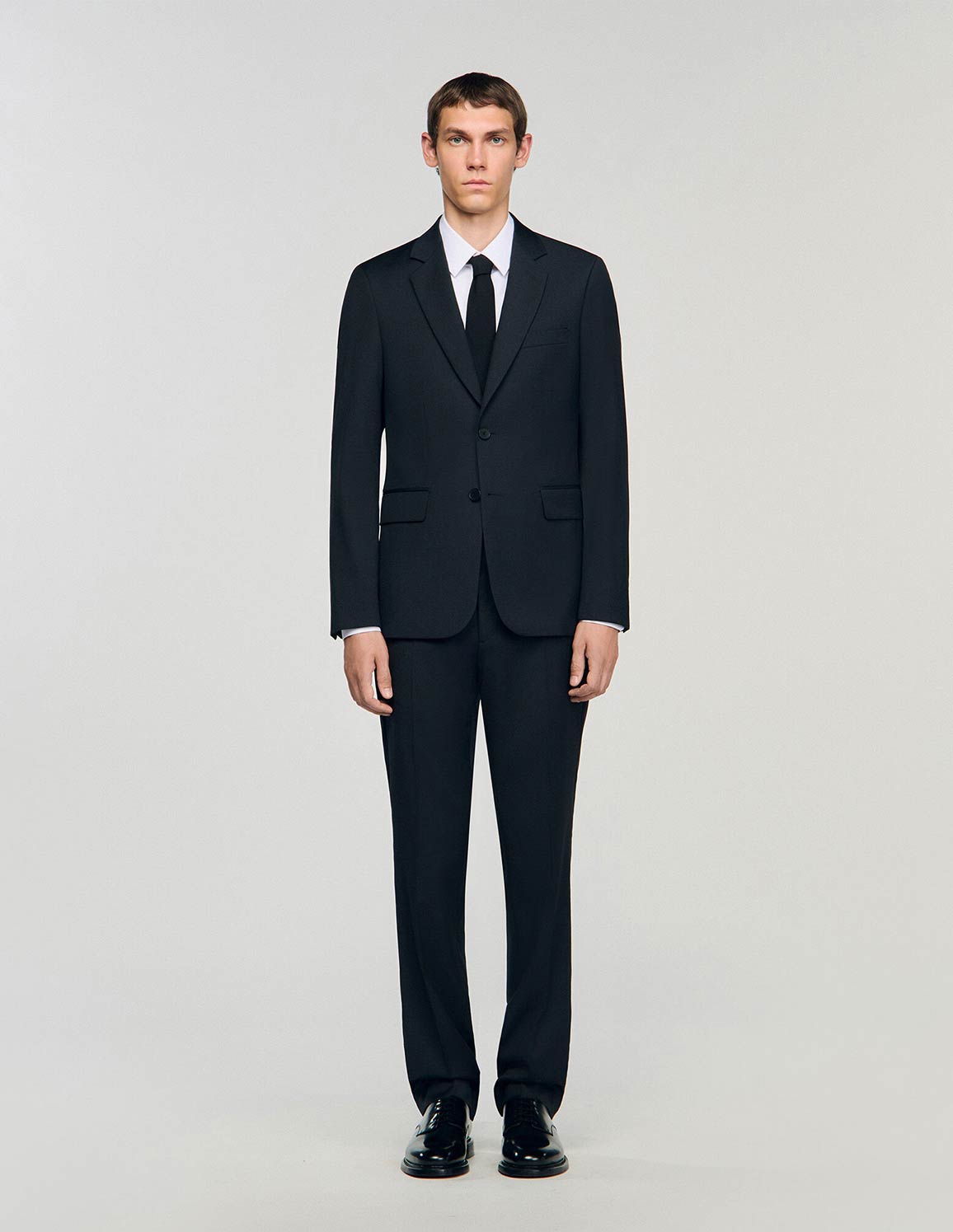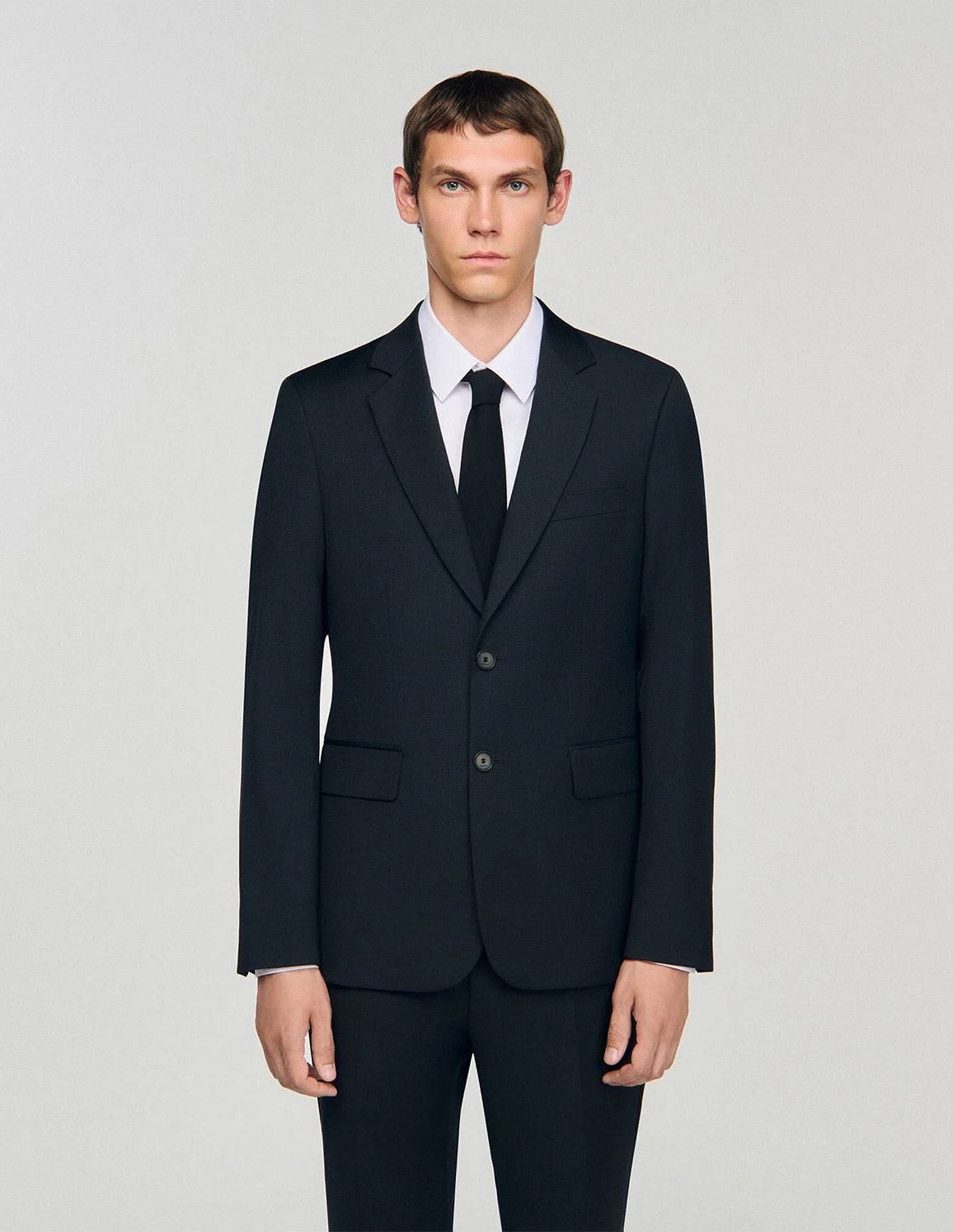 • Virgin wool suit jacket with a classic cut, featuring a tailored collar, 2-button fastening and flap pockets.