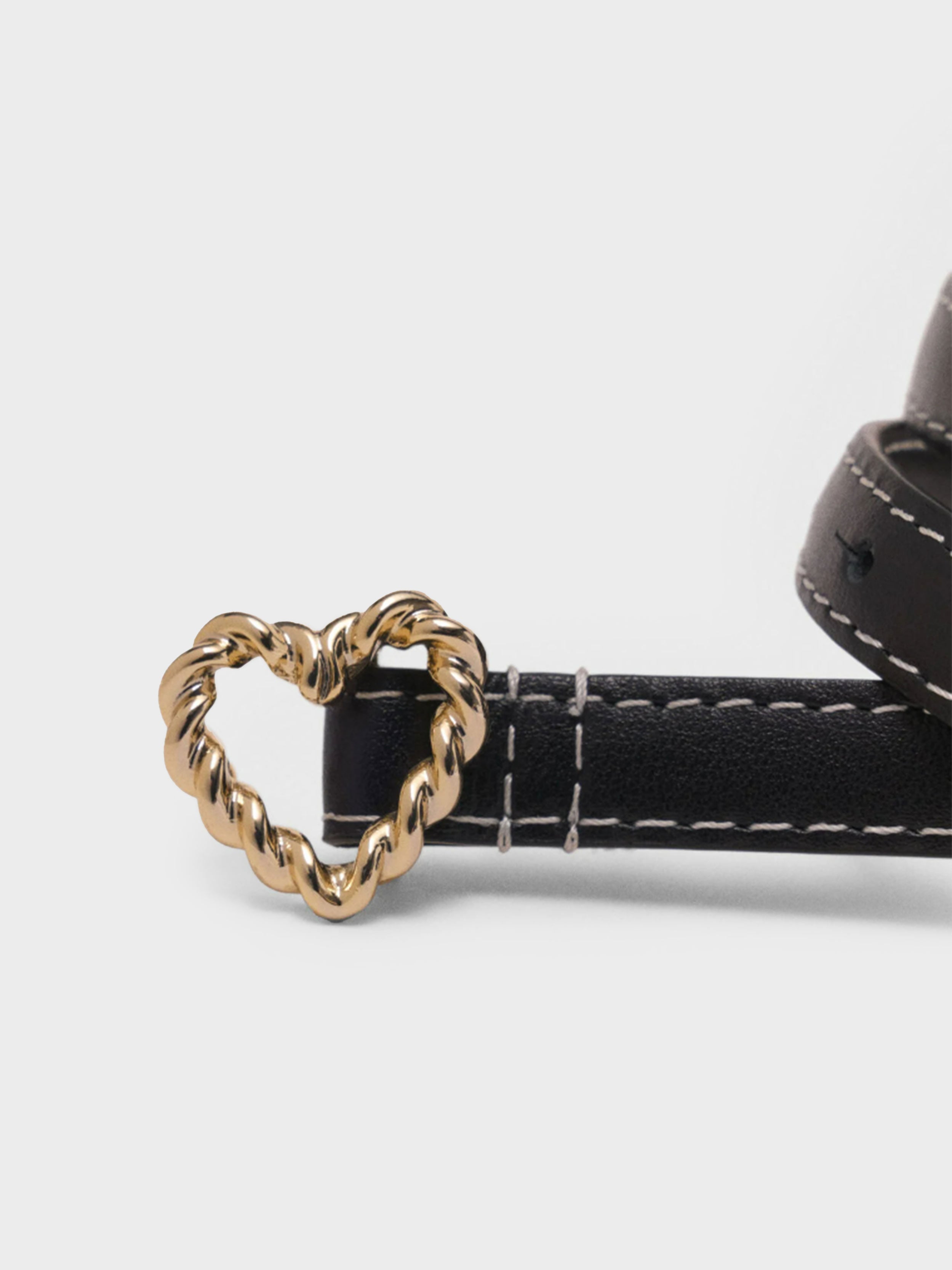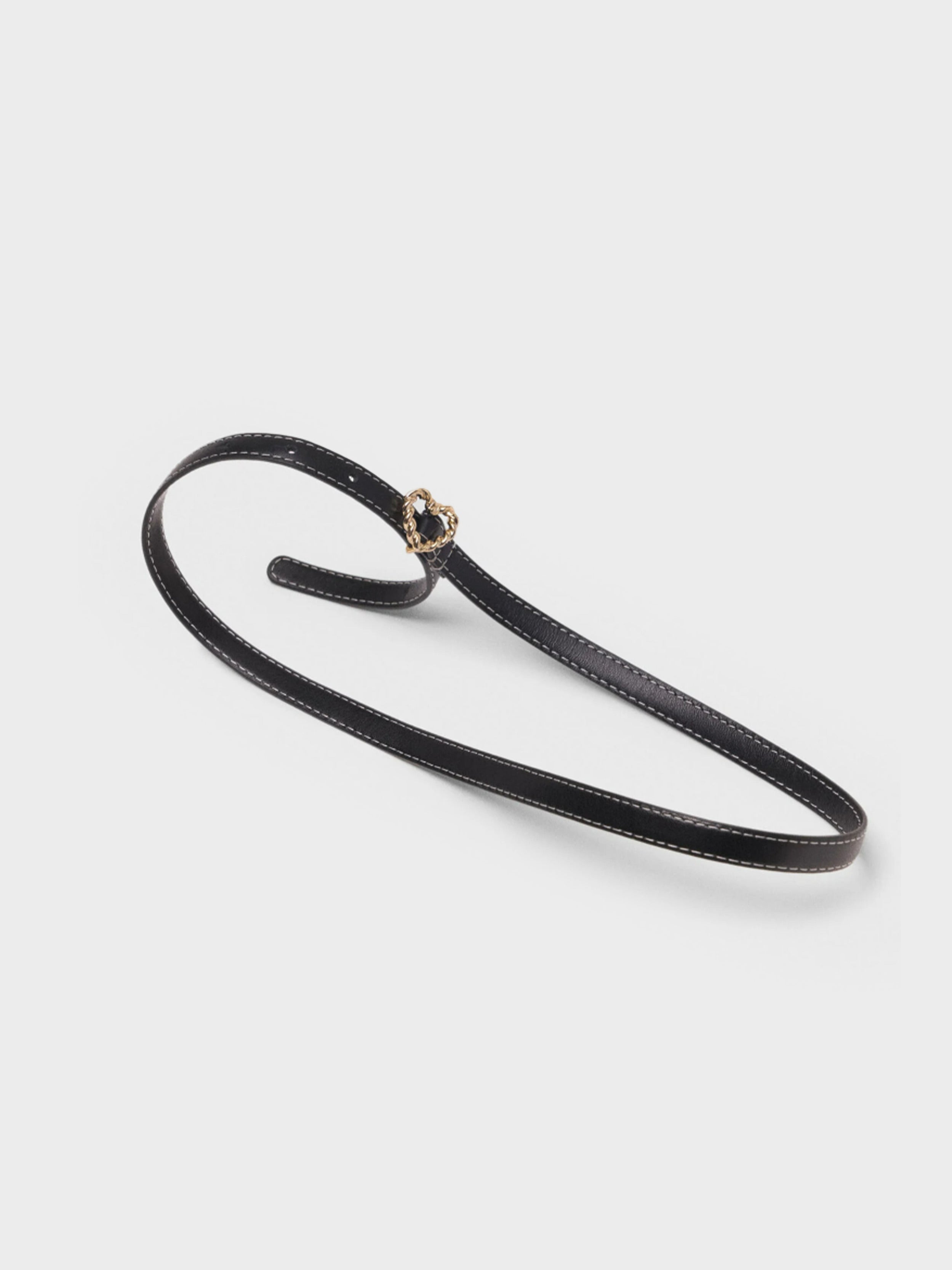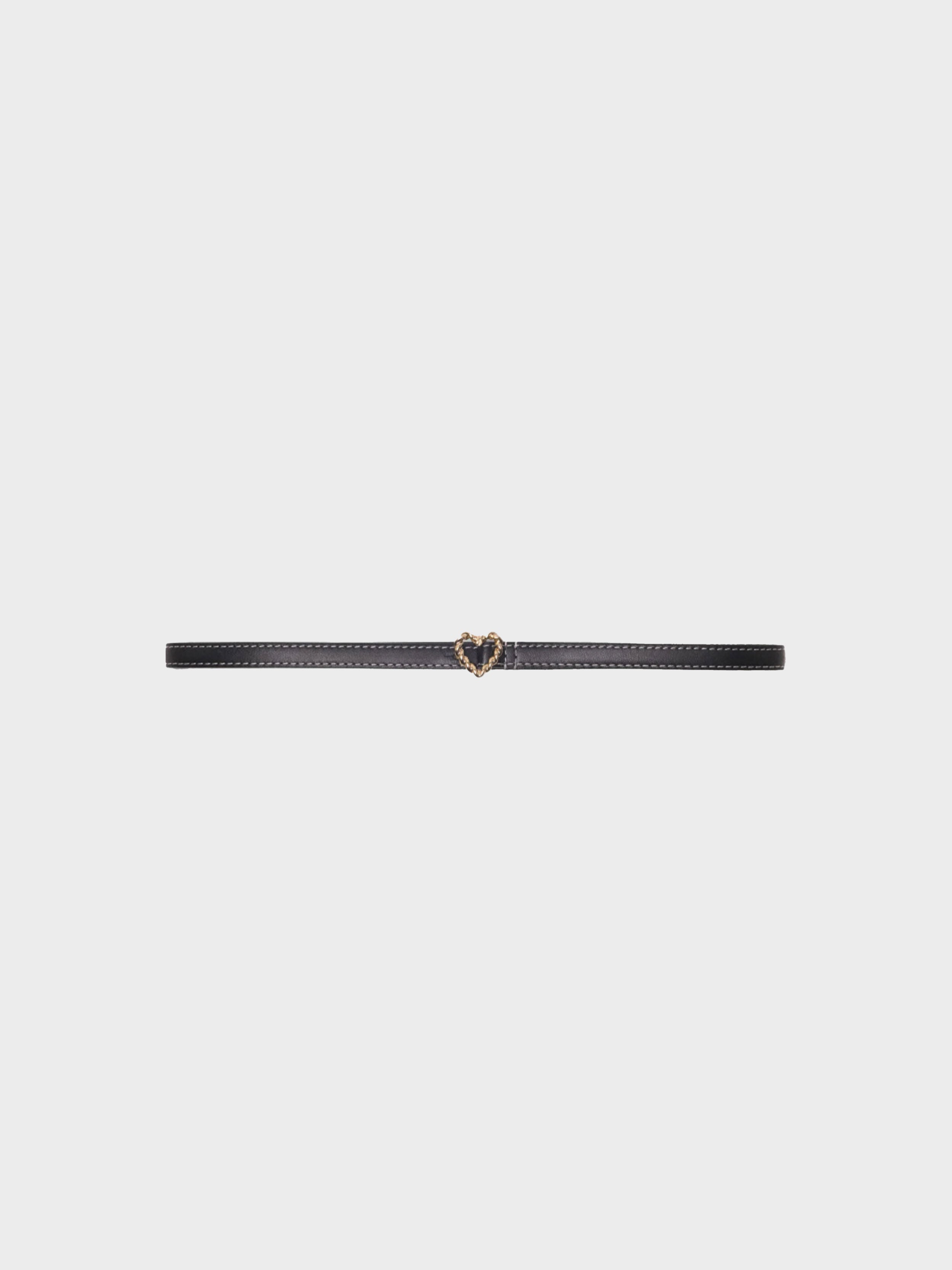 • Fine and delicate, this belt features signature details with a small gold heart and contrasting stitching. A subtle accessory to stylishly accentuate the waist.