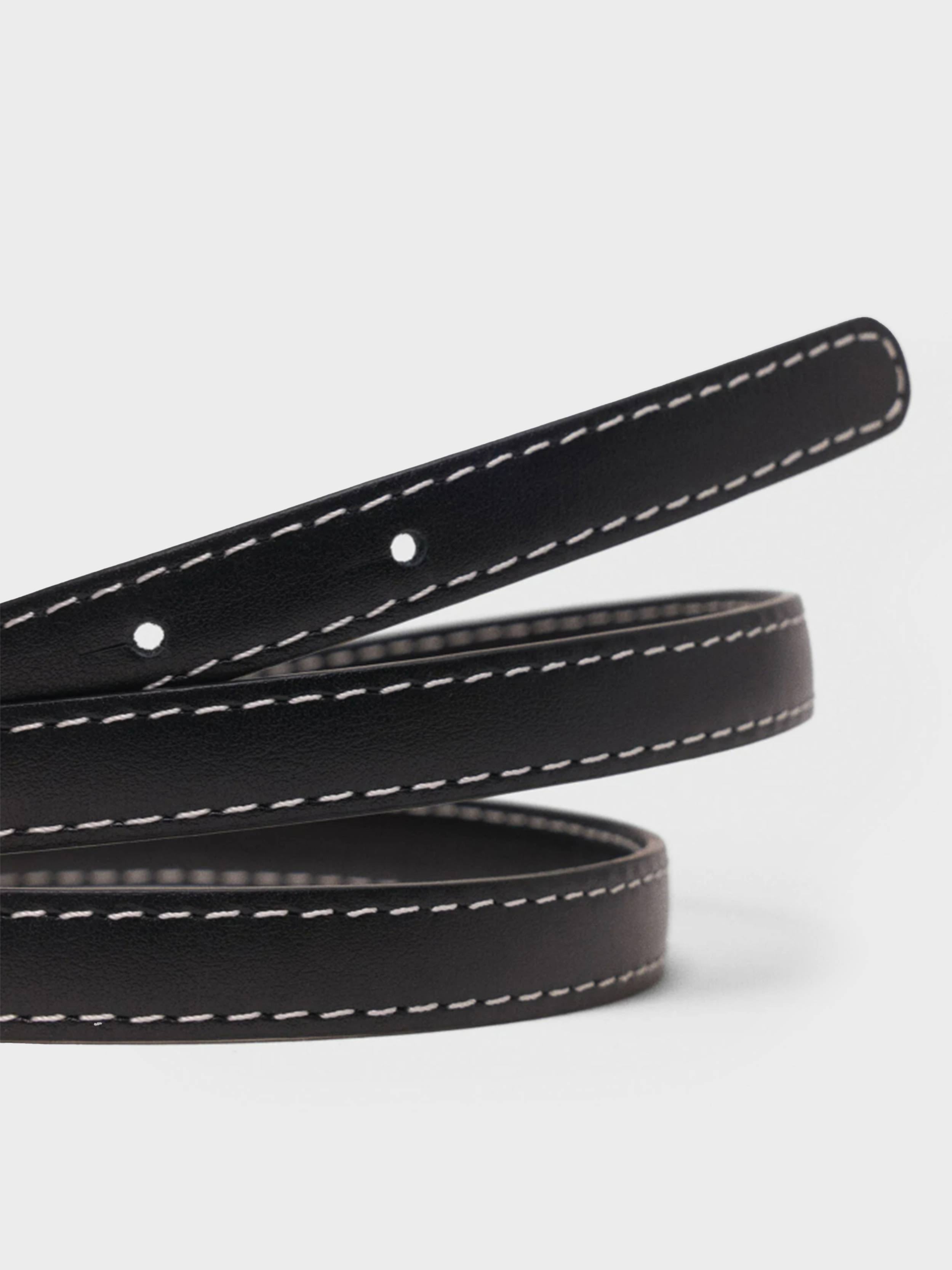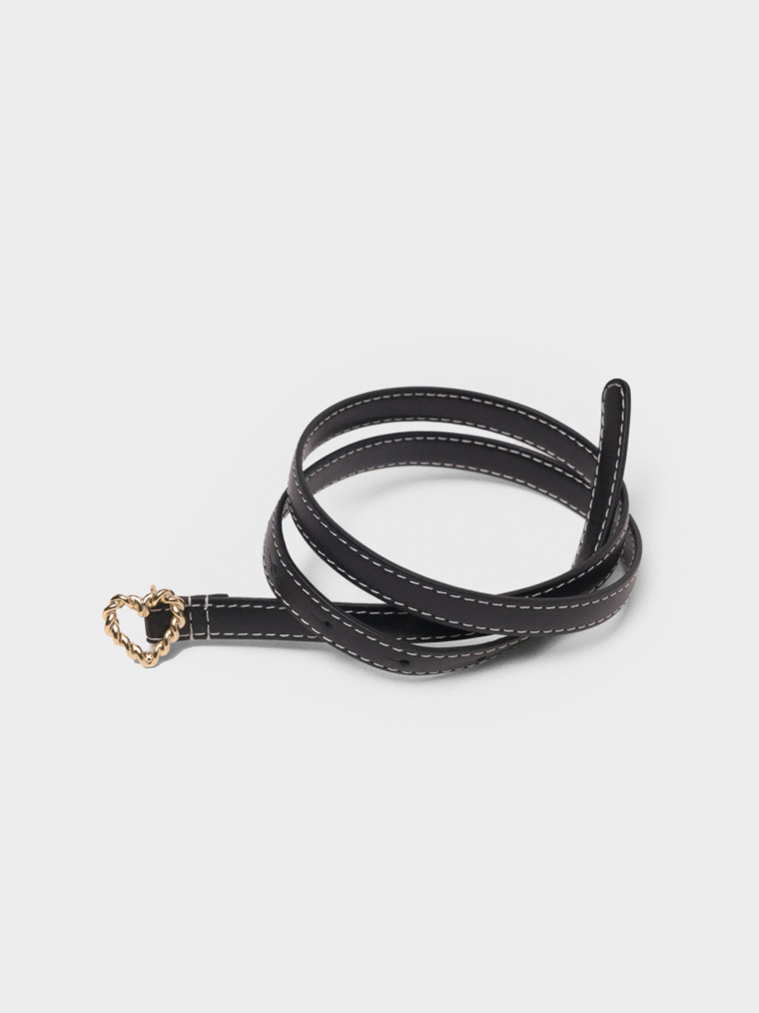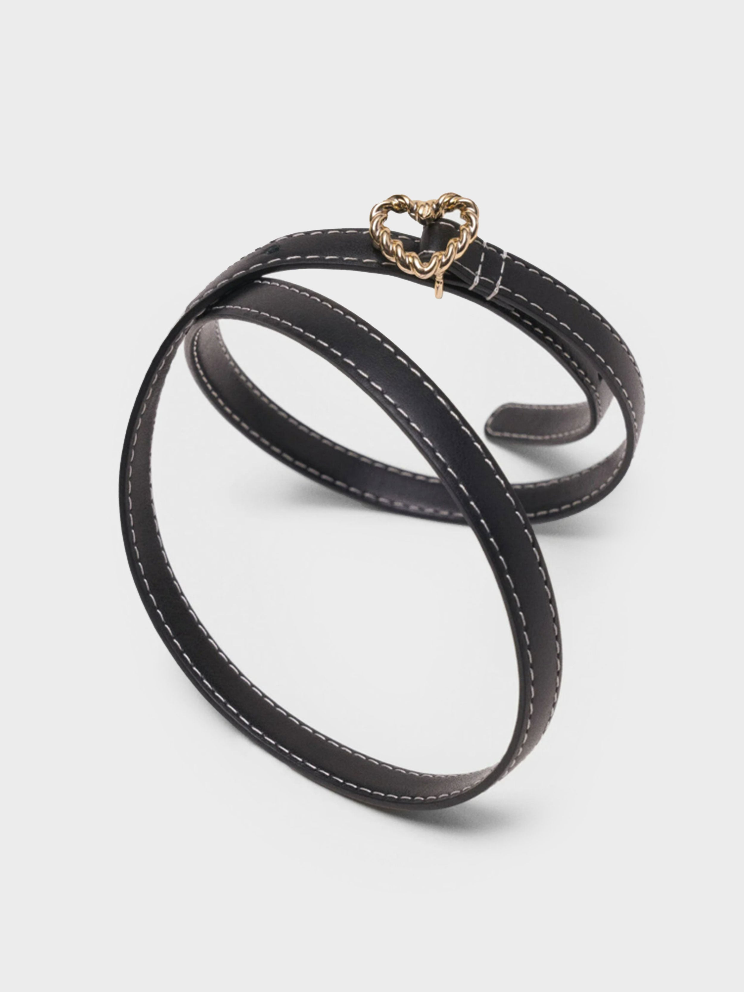 • Fine and delicate, this belt features signature details with a small gold heart and contrasting stitching. A subtle accessory to stylishly accentuate the waist.