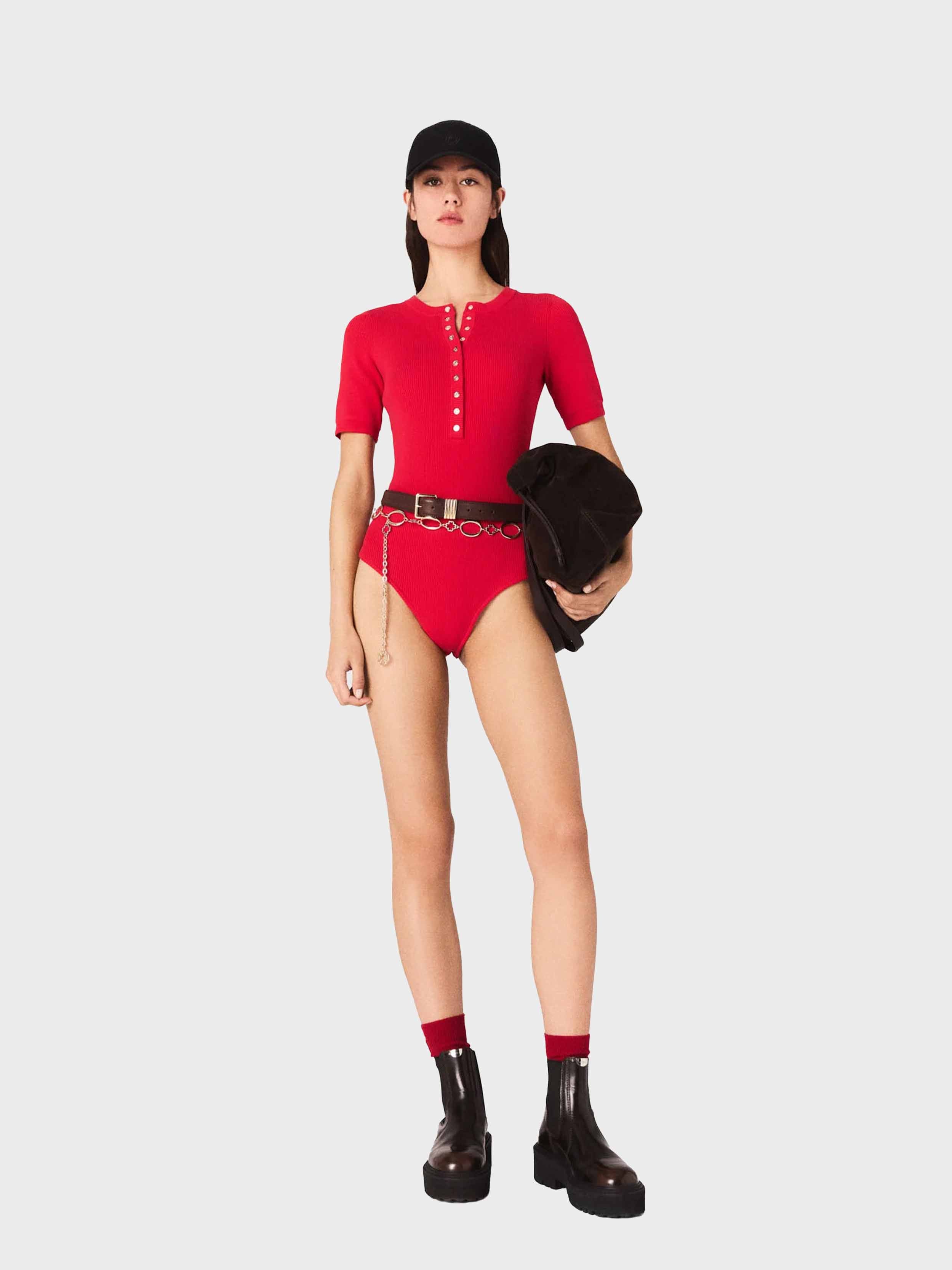 • Maje - Women's Ribbed Knit Sleeve Bodysuit