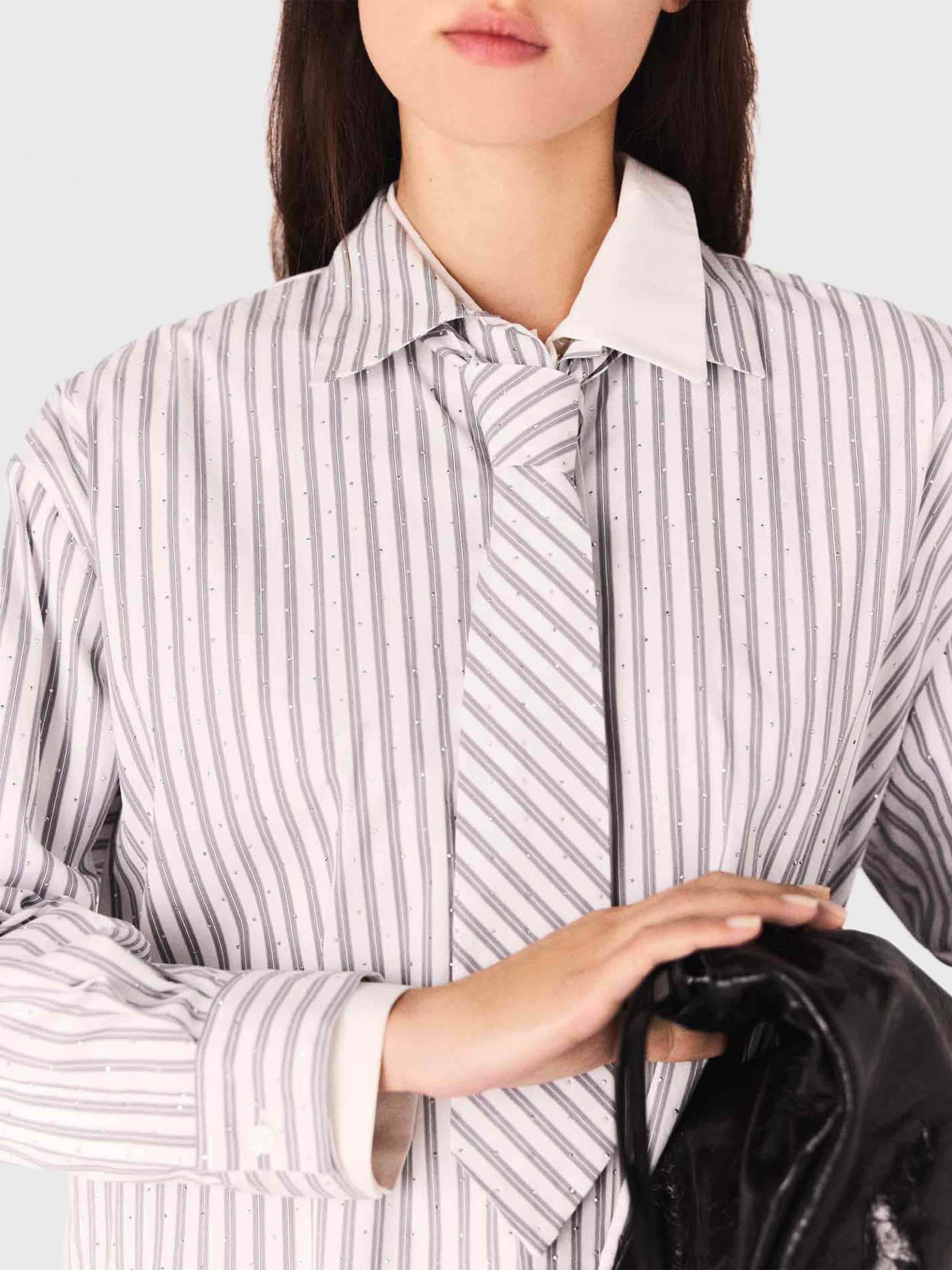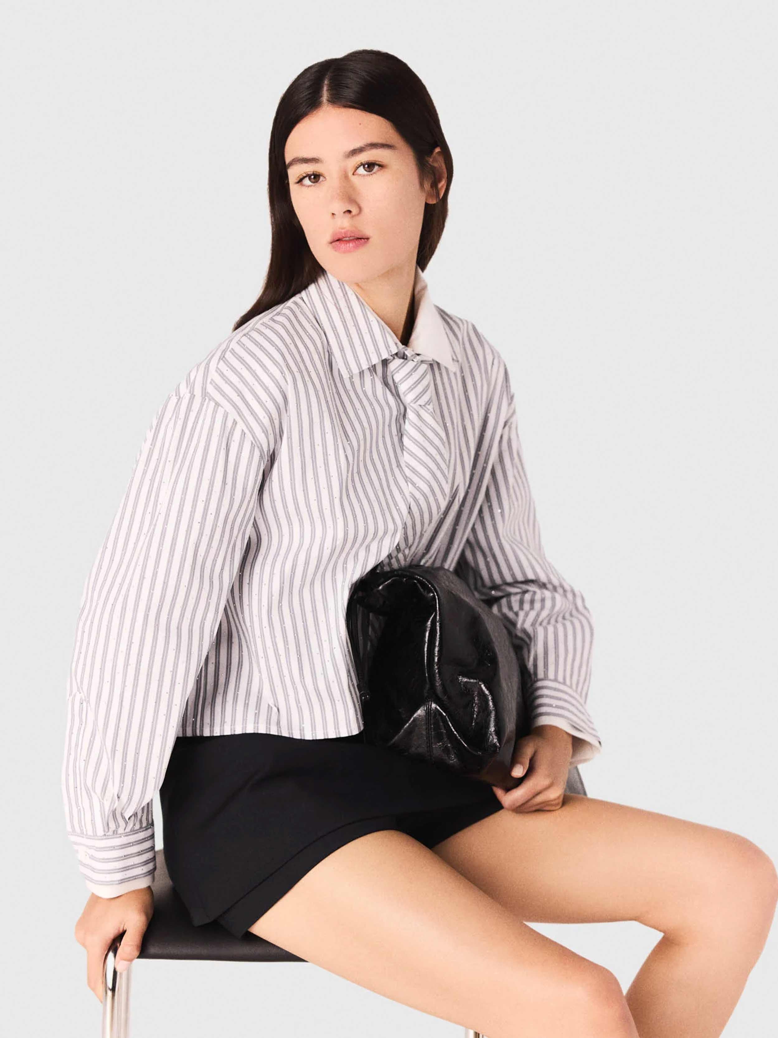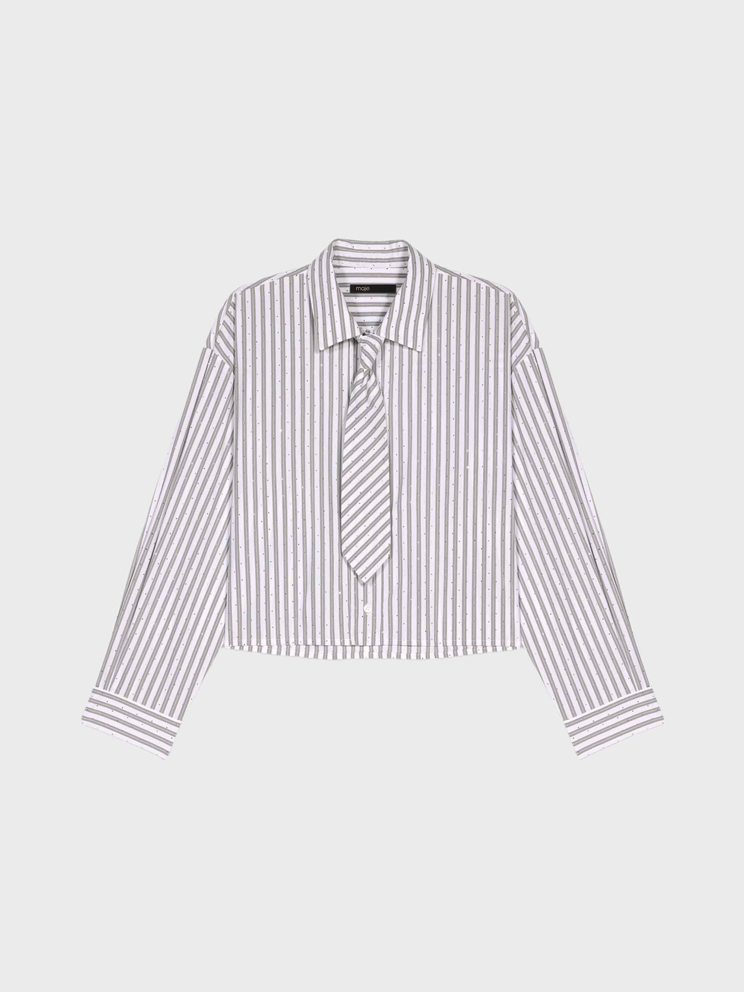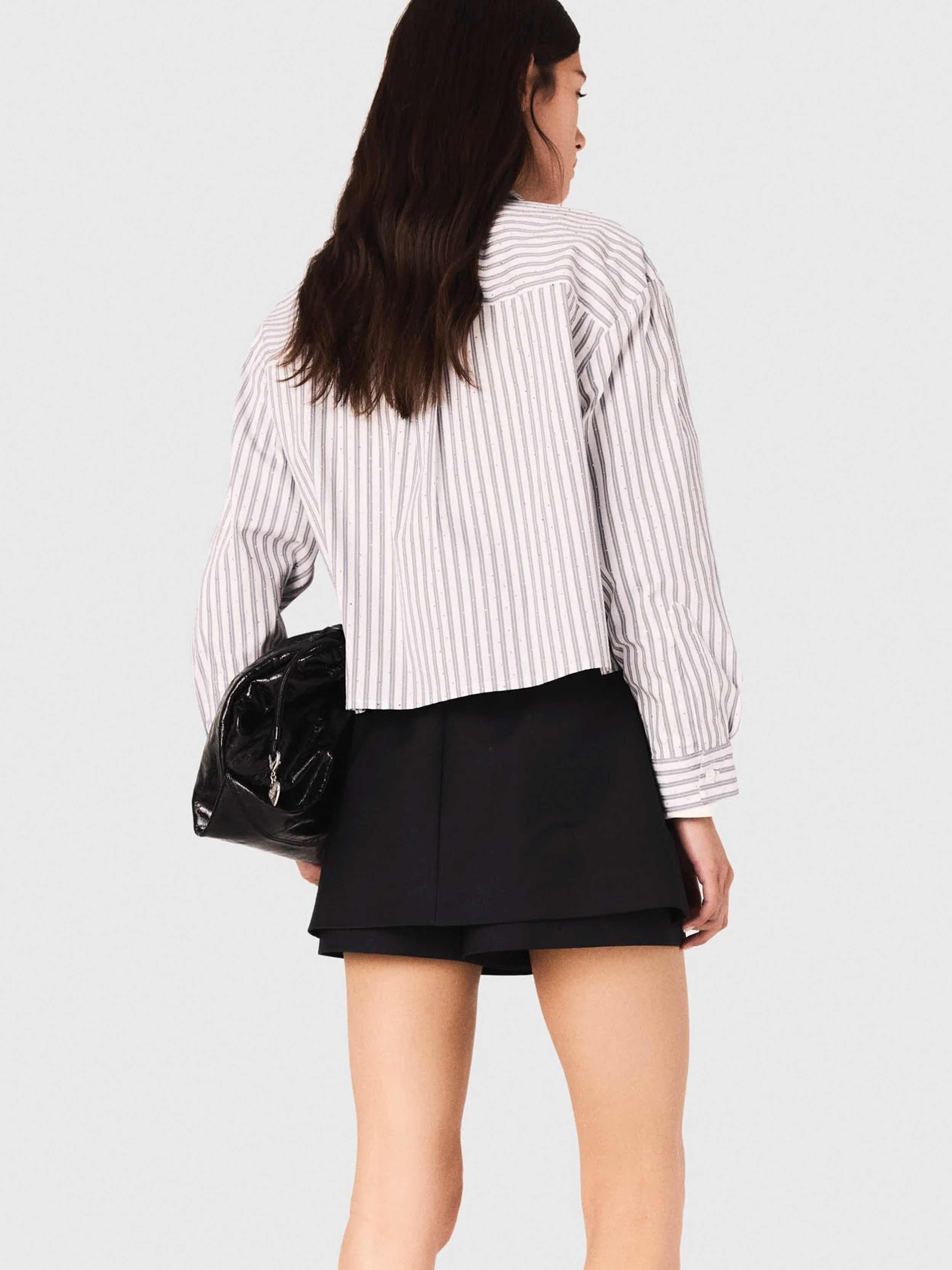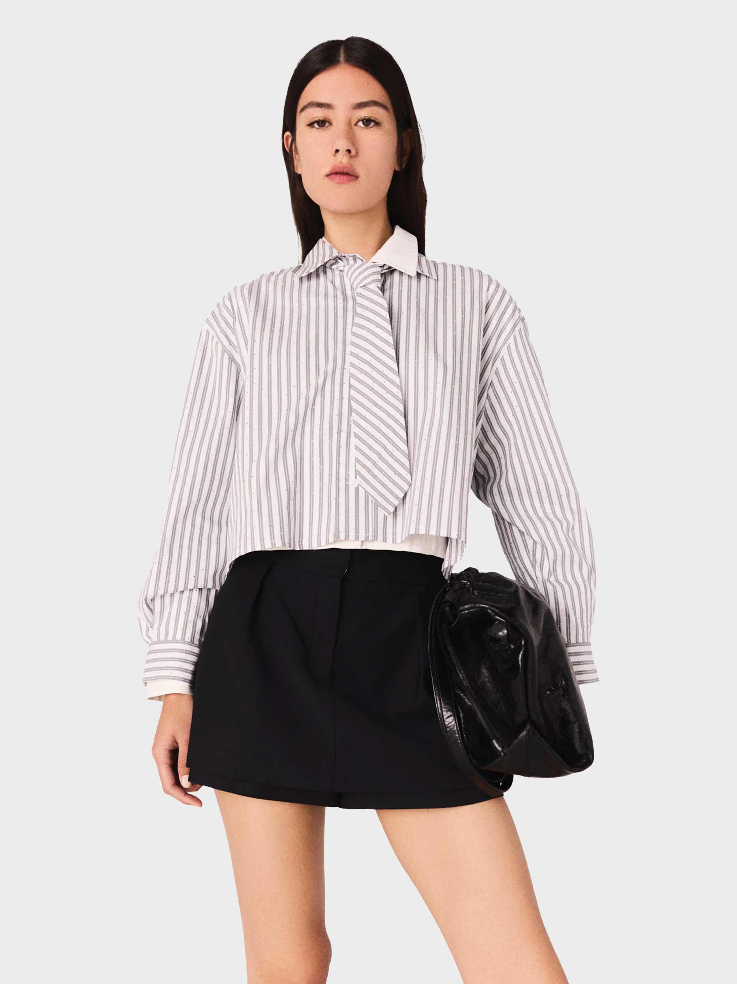• This short shirt combines classic stripes and rhinestone details for a bright twist. With its short cut that redefines the silhouette, its two-tone collar and buttoned cuffs, it's a wardrobe essential, easy to mix and match and accessorise. Its standout feature is the removable tie, offering a multitude of possibilities.