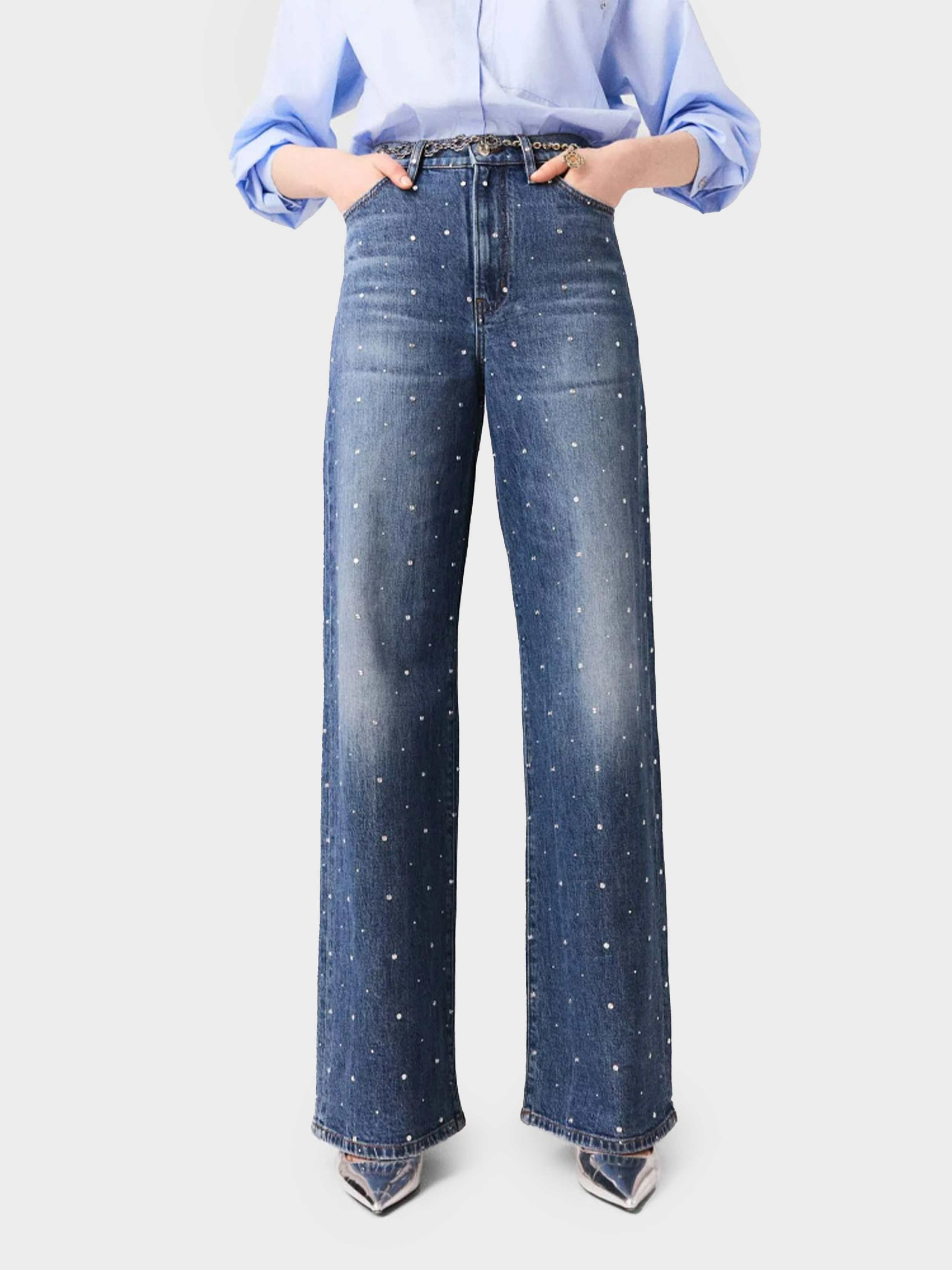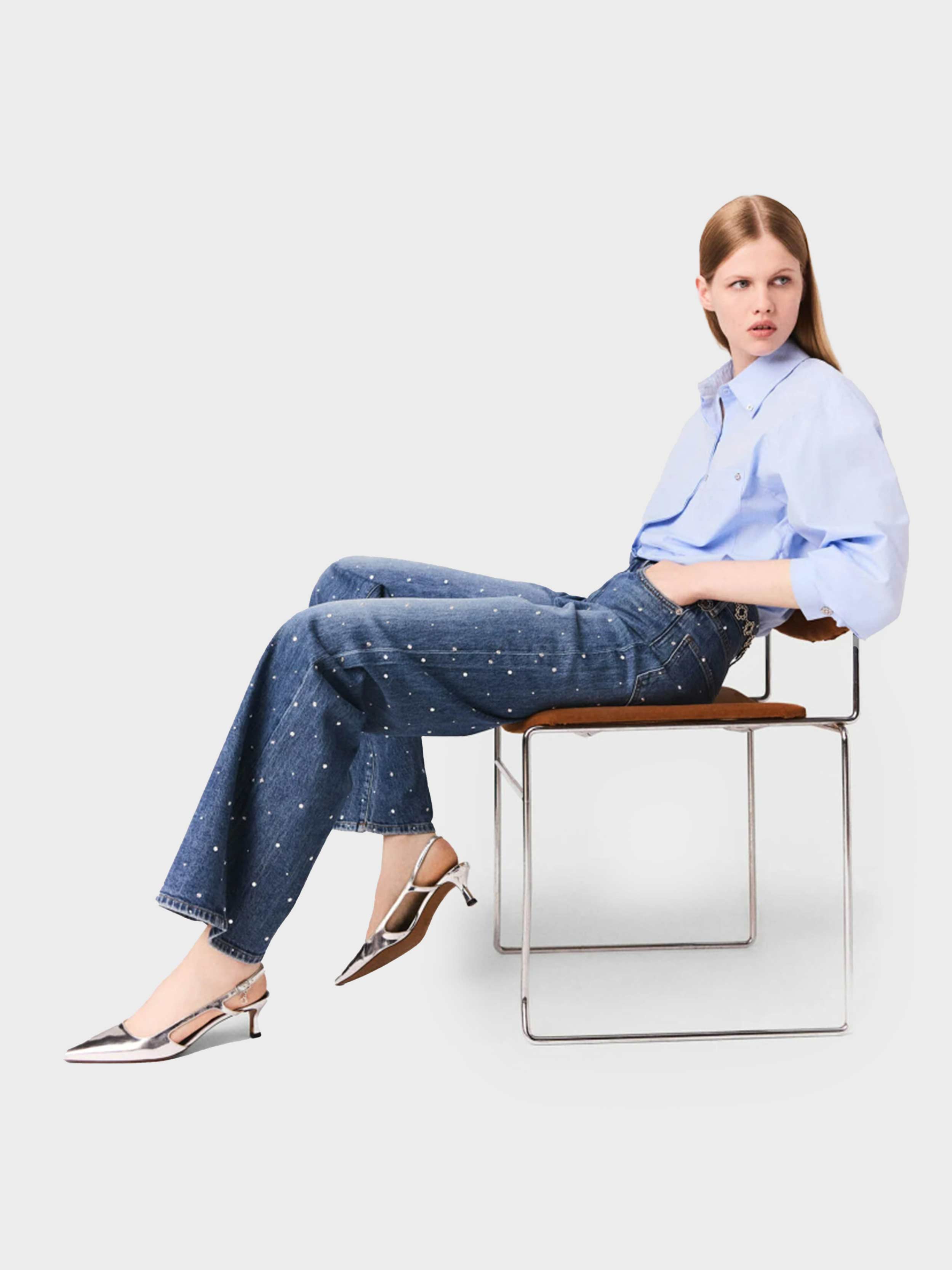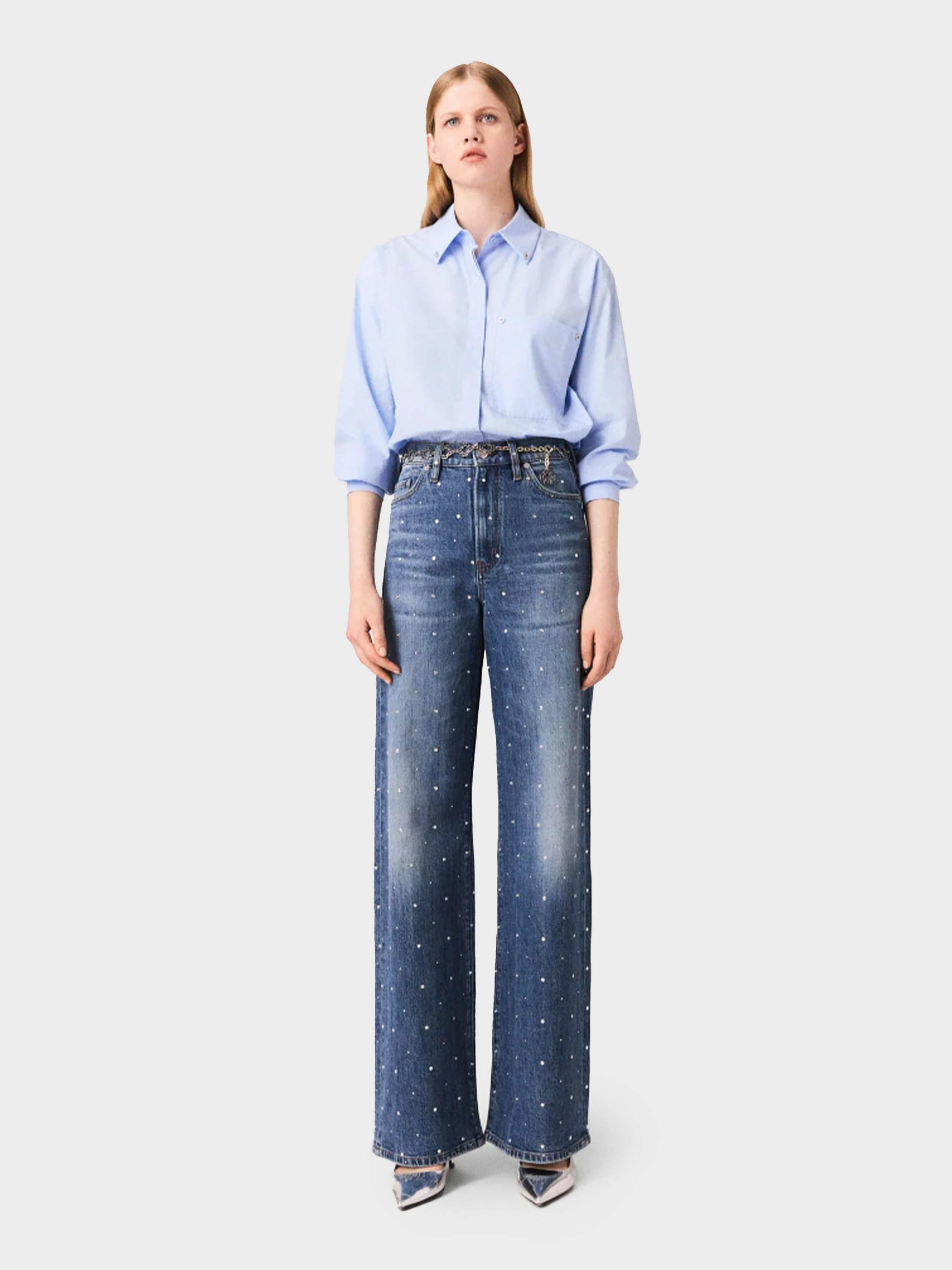 Maje - Women's Wide-Leg Denim Jeans With Studs