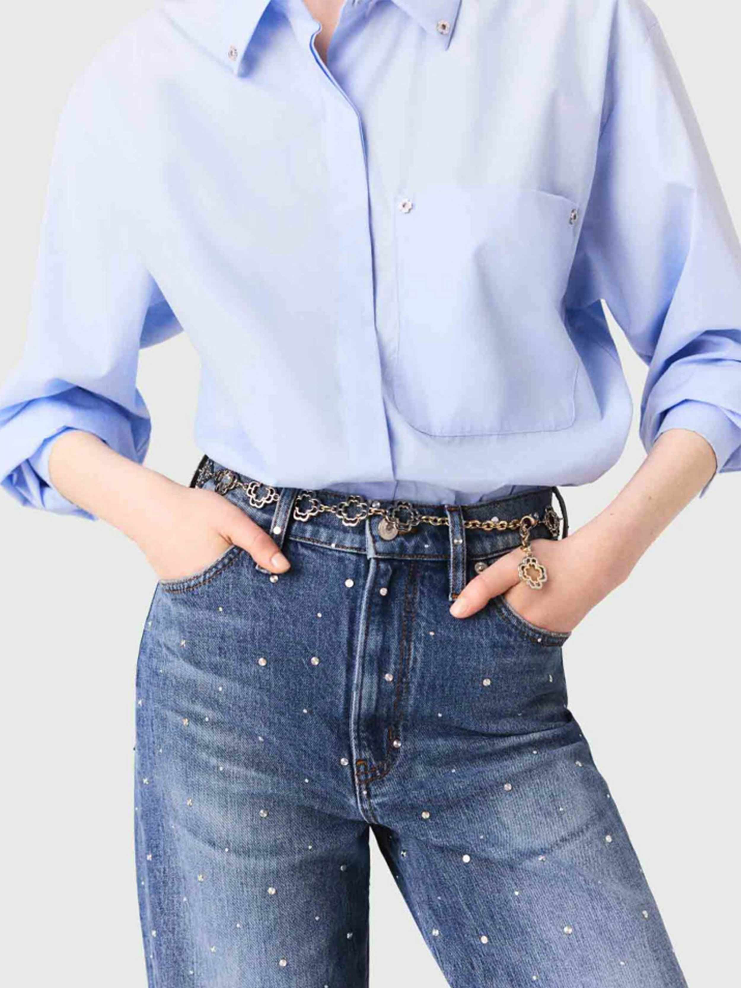 • These studded jeans add a rock touch to your wardrobe. Practical with its 5 pockets and Clover jacron on the back, it stands out with its metallic details that bring character to this timeless piece.