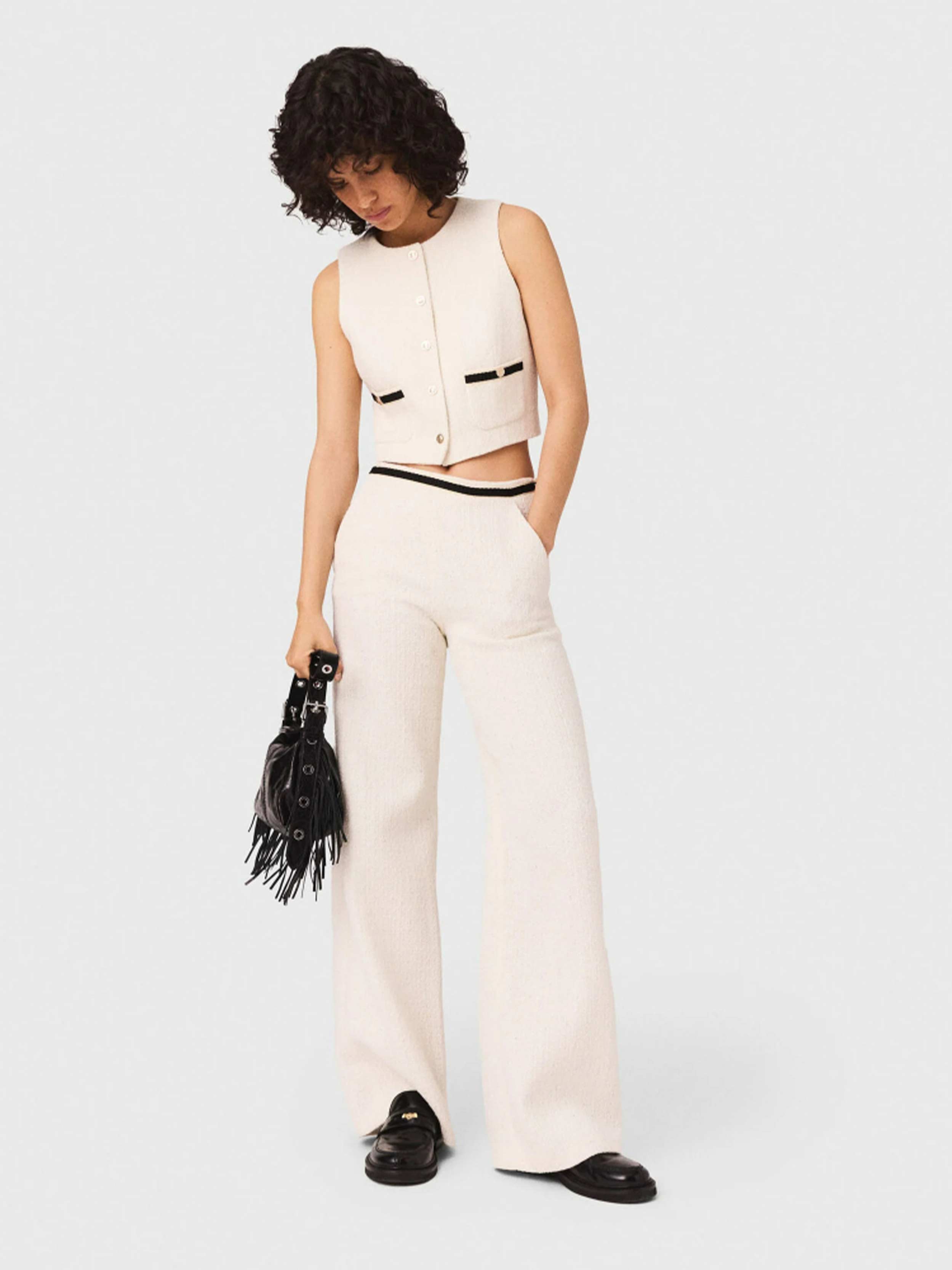Maje - Women's Wide Leg Tweed-Effect Trousers