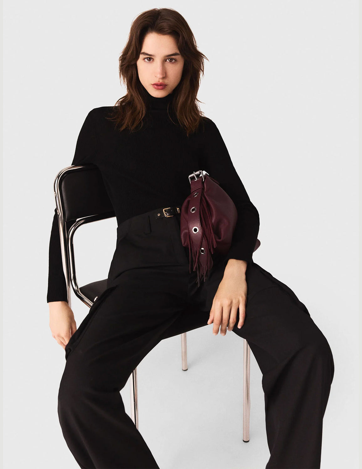 • Essential pieces are adorned with signature details in this new collection, imagined as an ode to preppy style. This high-neck jumper creates a close-fitting silhouette, enhanced by refined ribbed knit and a discreet Clover tag on the back. An ideal base for creating a metropolitan and elegant look, to be paired with tailored trousers or a preppy mini skirt. On the accessories side, add a pair of leather ankle boots to complete the look.