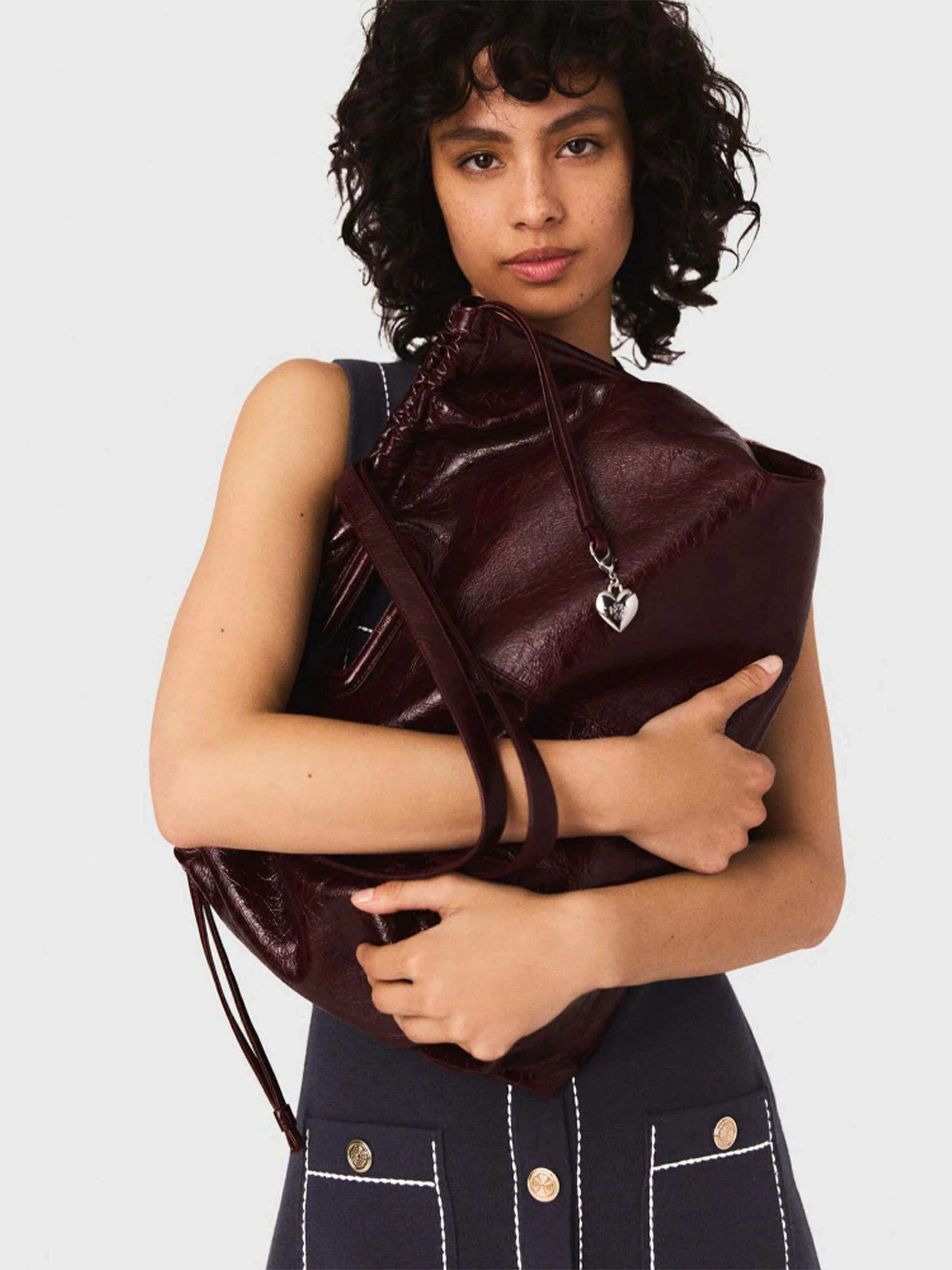 • Pair with the season's signature accessories: a bag and square-toed burgundy ballet flats.