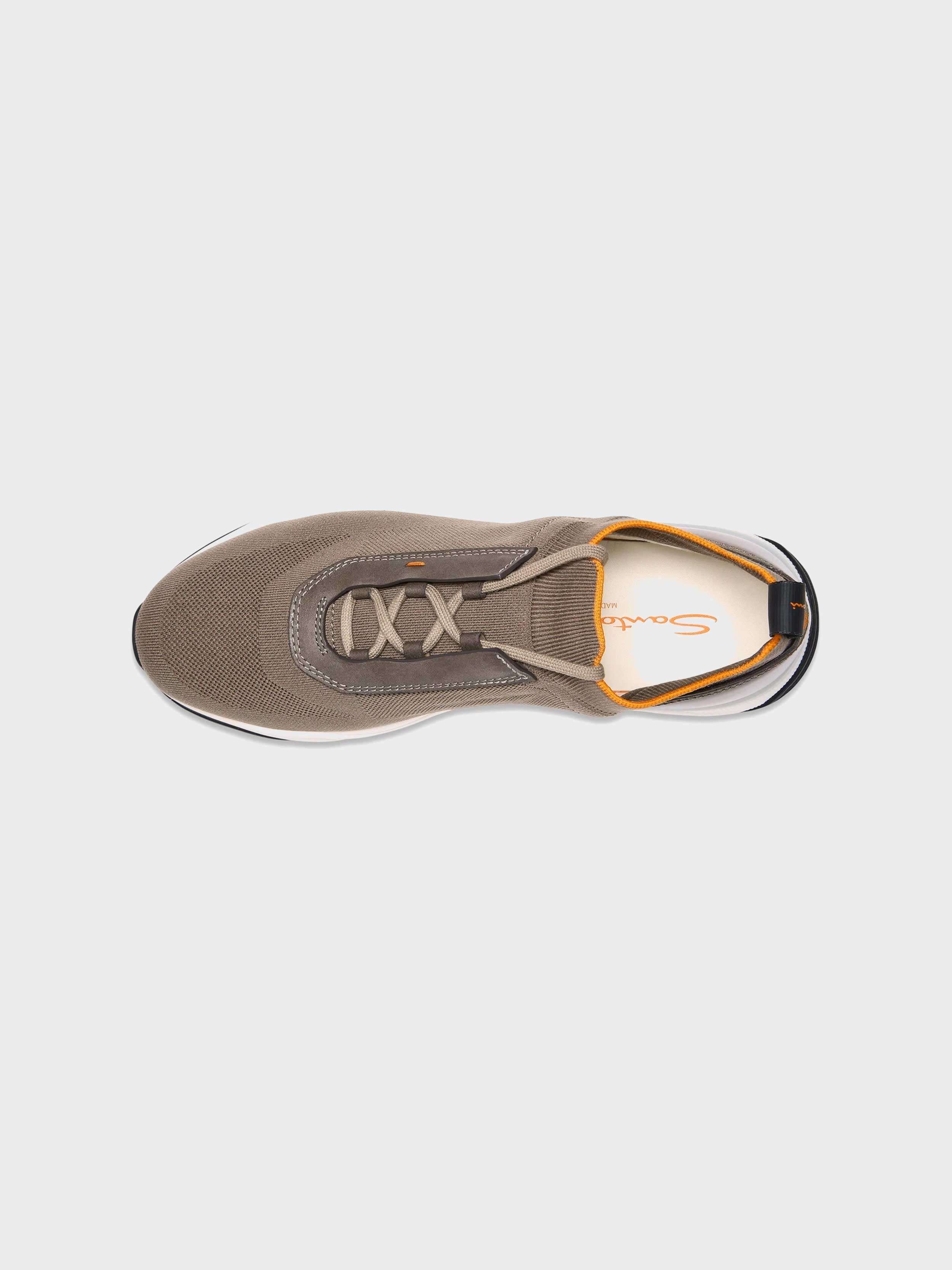 • Dynamic spirit, contemporary attitude and heritage details expressing Santoni’s DNA. This low-top sock sneaker is crafted from stretch fabric with nubuck accents for superior resistance, finished with contrast stitches in celebration of our signature orange tone. Its comfy running-inspired silhouette is enhanced with a chunky rubber sole that supports the movement of the foot, and a rear pull tab that makes it easy to slip on and off.