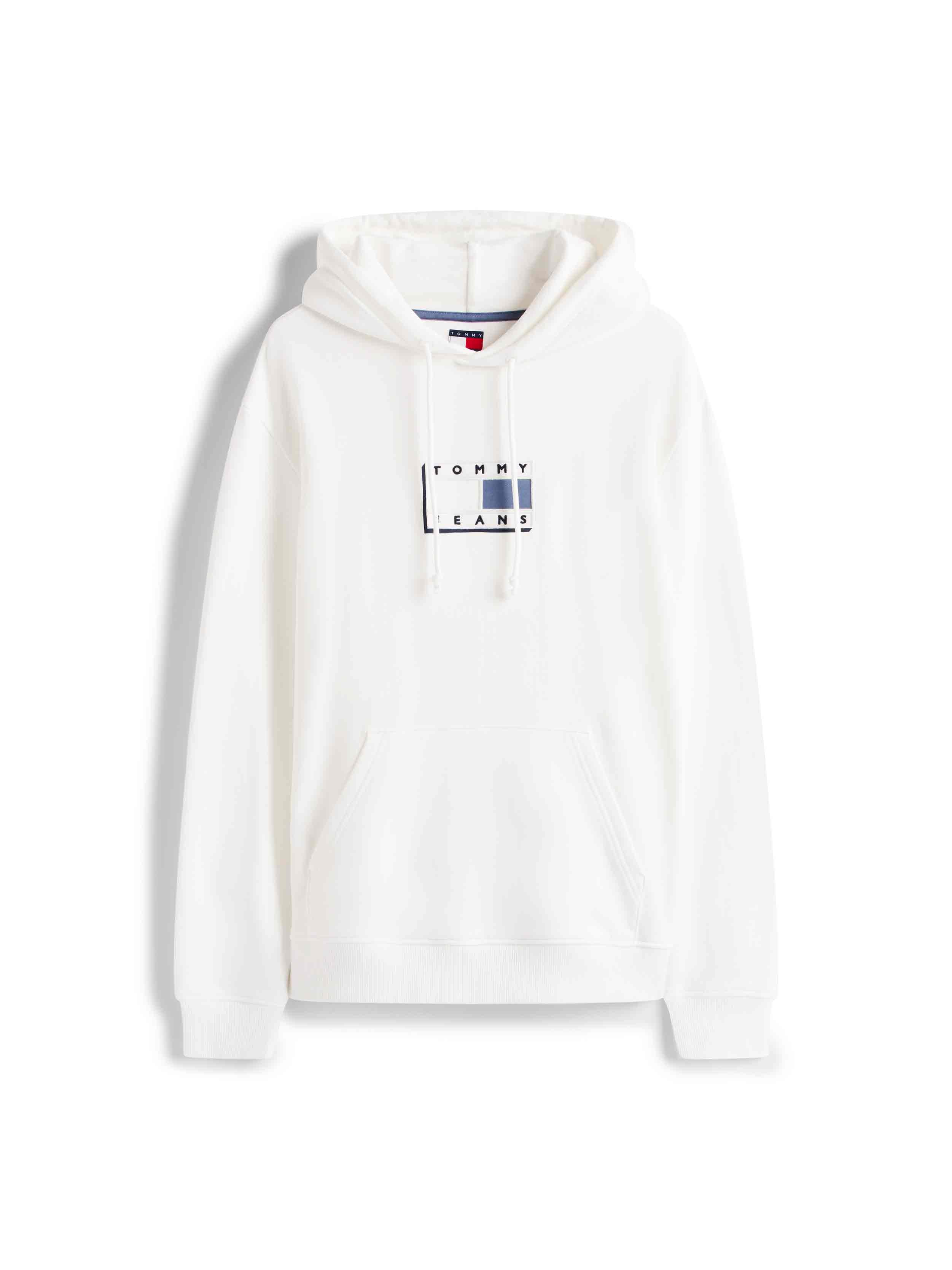 • Discover our Tommy Jeans Pullover Hoodie in ivory, an essential piece for every modern man's wardrobe. The combination of comfort and style is what sets this sweatshirt apart, perfect for those who love a casual look without sacrificing the quality of Tommy Jeans details .