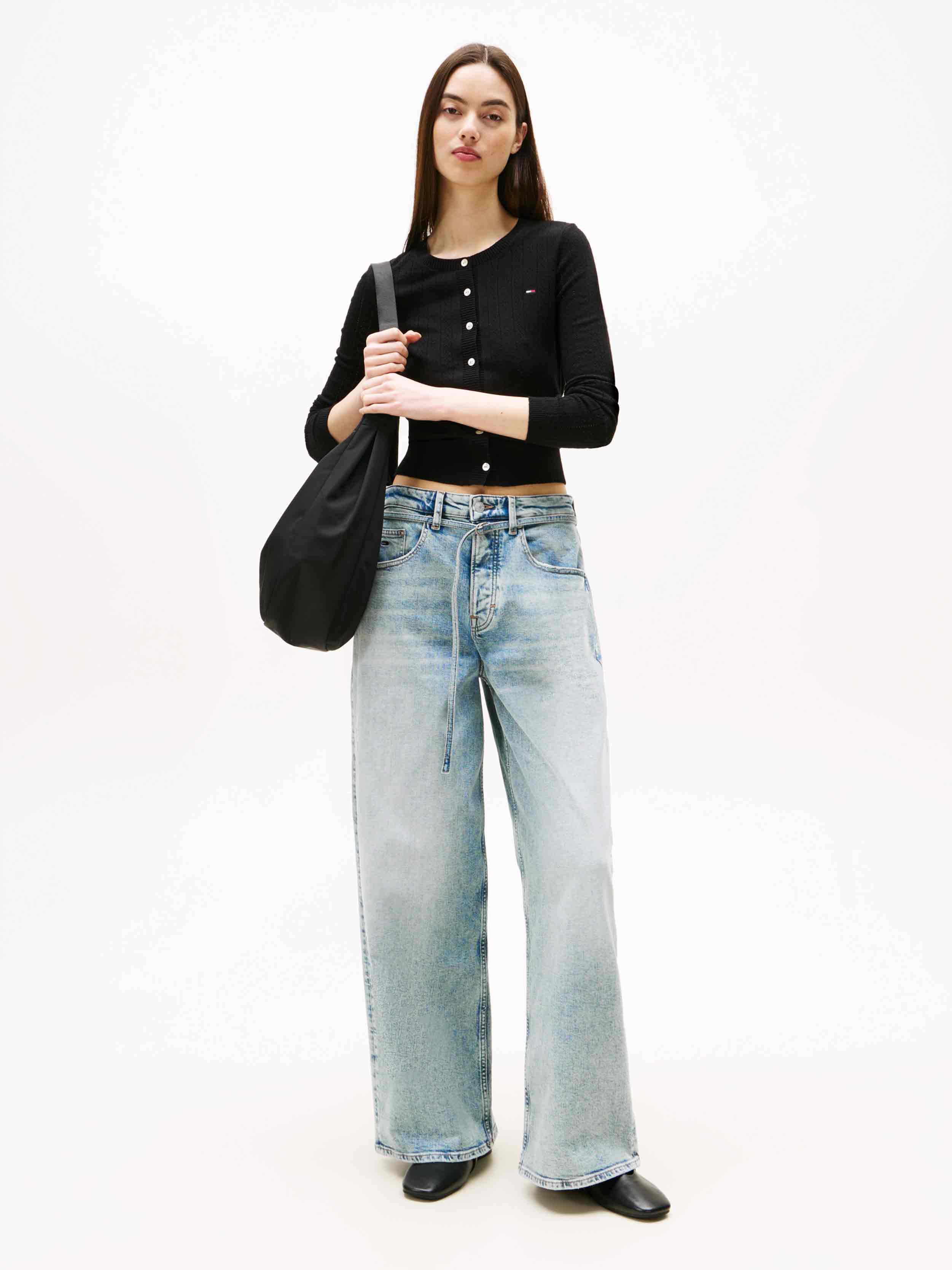 Tommy Hilfiger - TJW POINTELLE CREW NECK CARDIGAN , L , Black , Style DW0DW20966