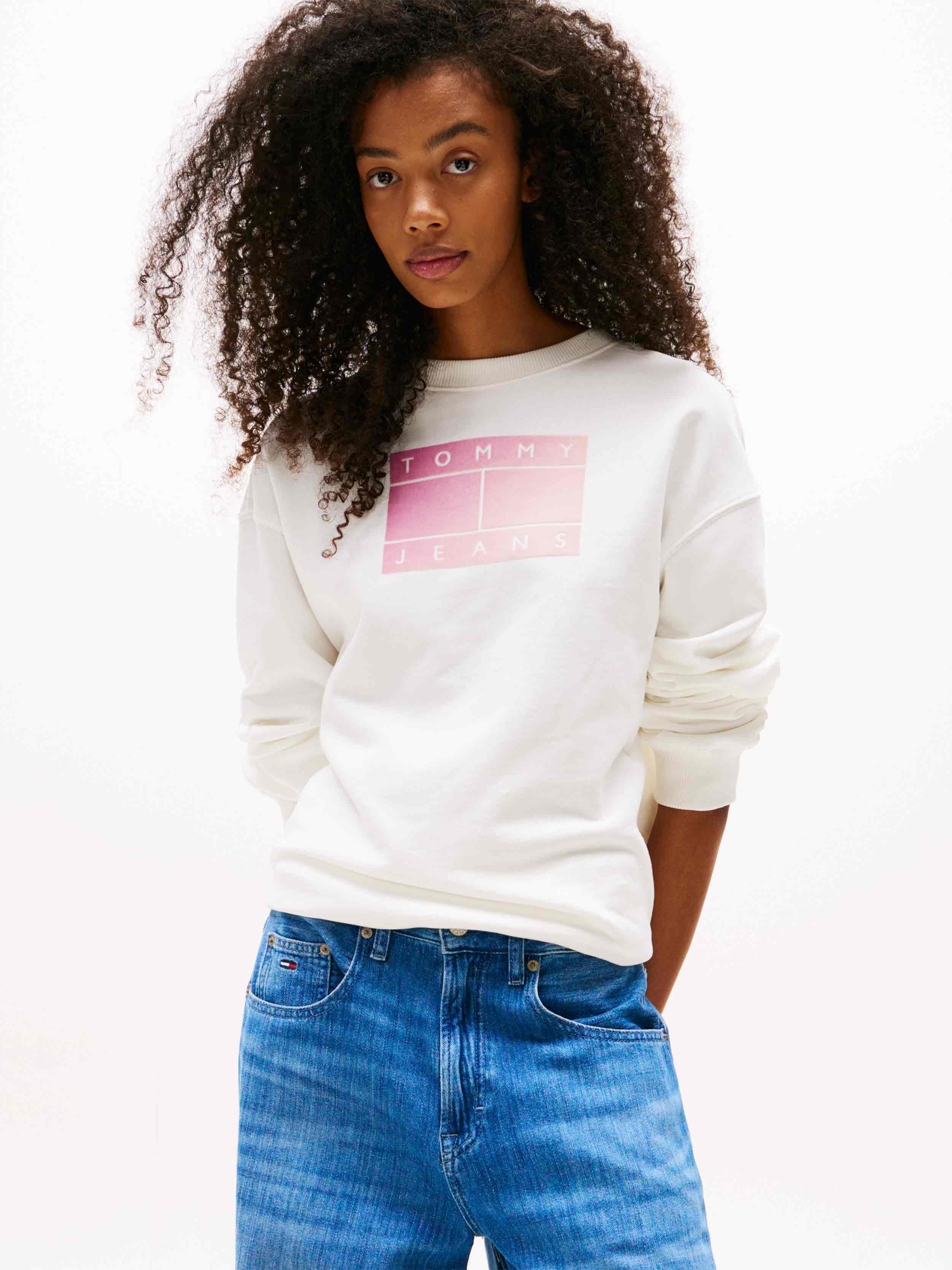 Tommy Hilfiger - TJW RLX GRADIENT FLAG CREW , S , ECRU , Style DW0DW21396