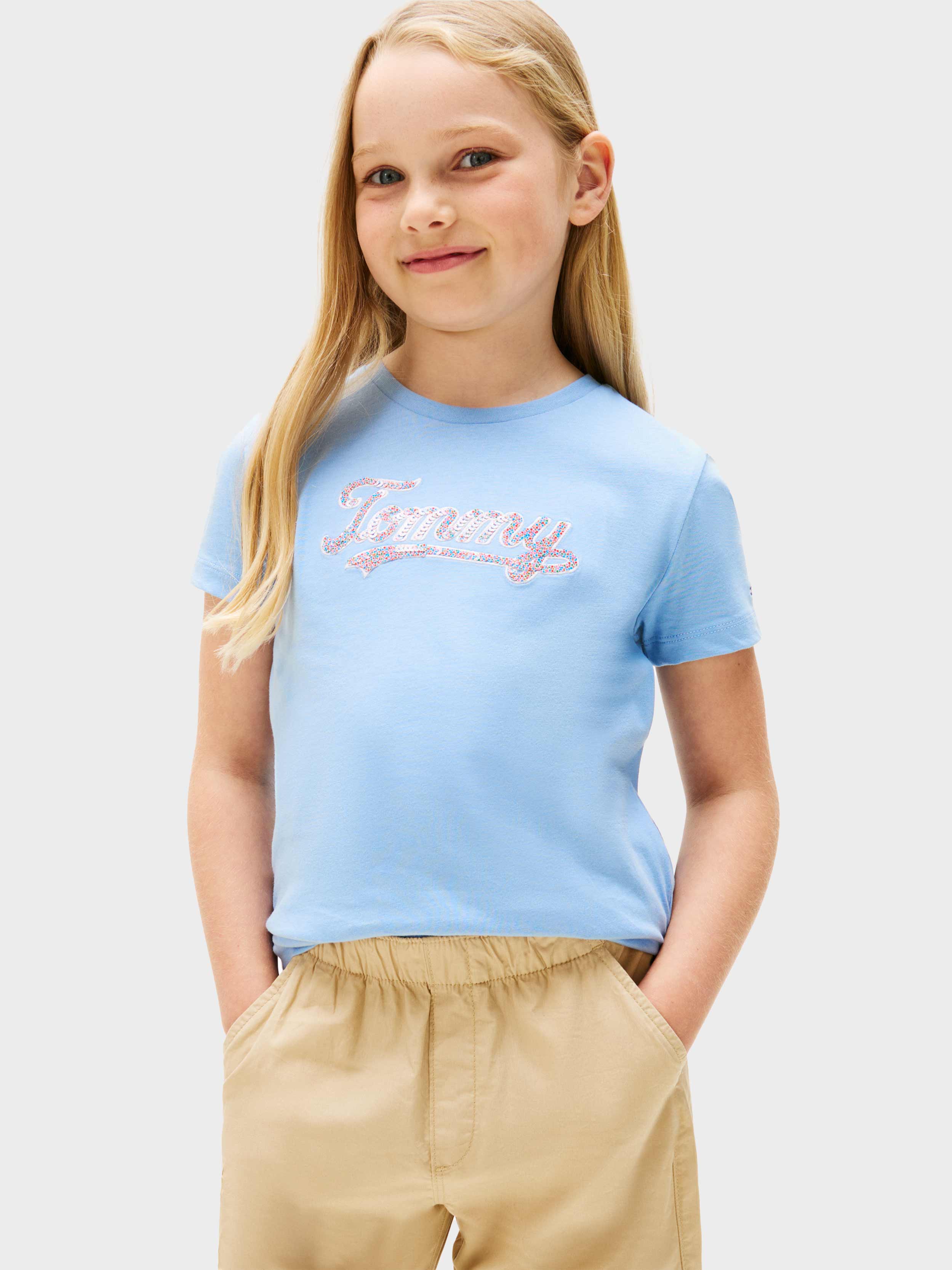 Tommy Hilfiger - TOMMY SCRIPT SEQUINS TEE SS , 8 , Cloudy Blue , Style KG0KG08637