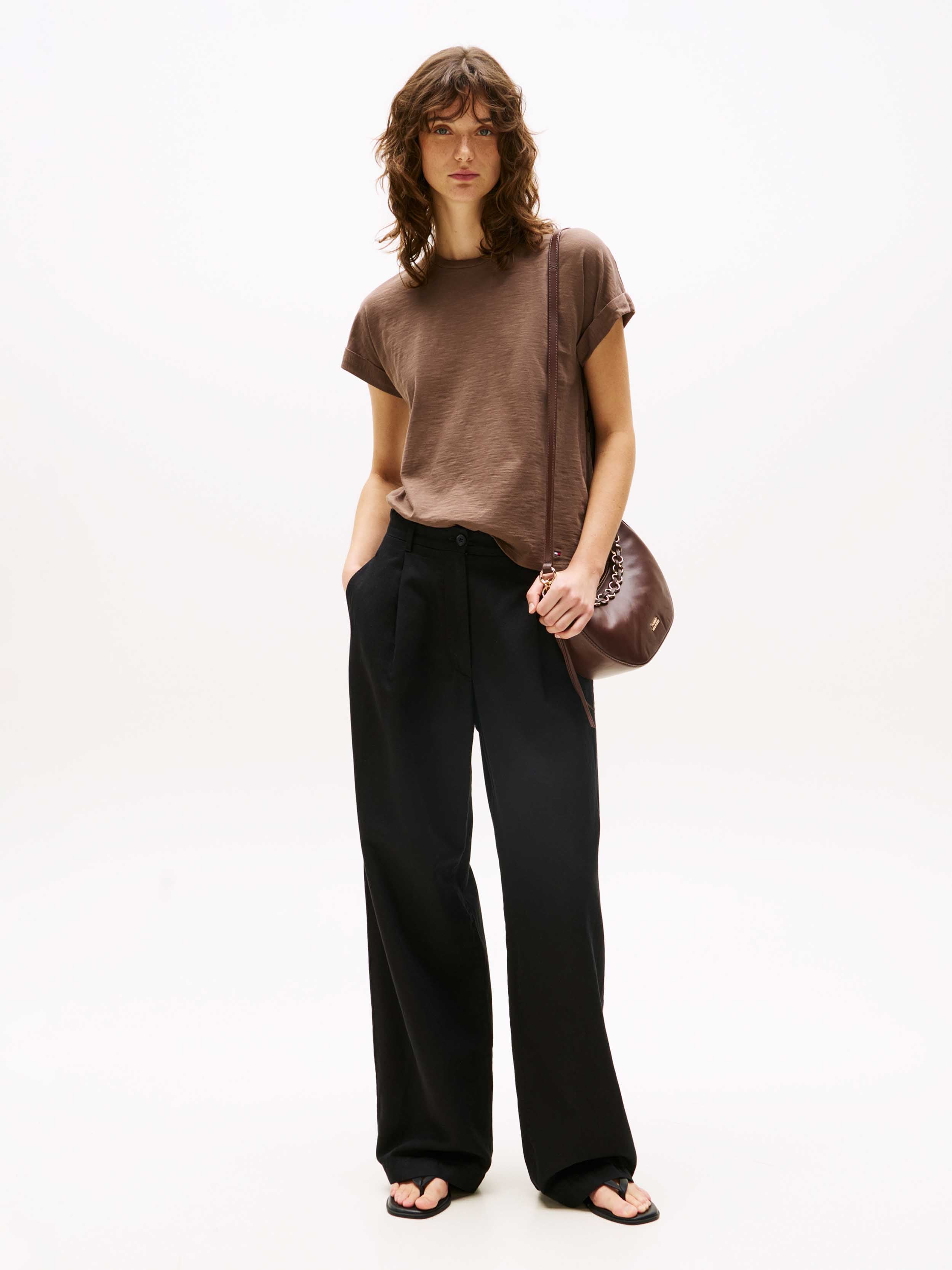 Tommy Hilfiger - TENCEL LINEN WIDE LEG PANT , 42 , Black , Style WW0WW45780