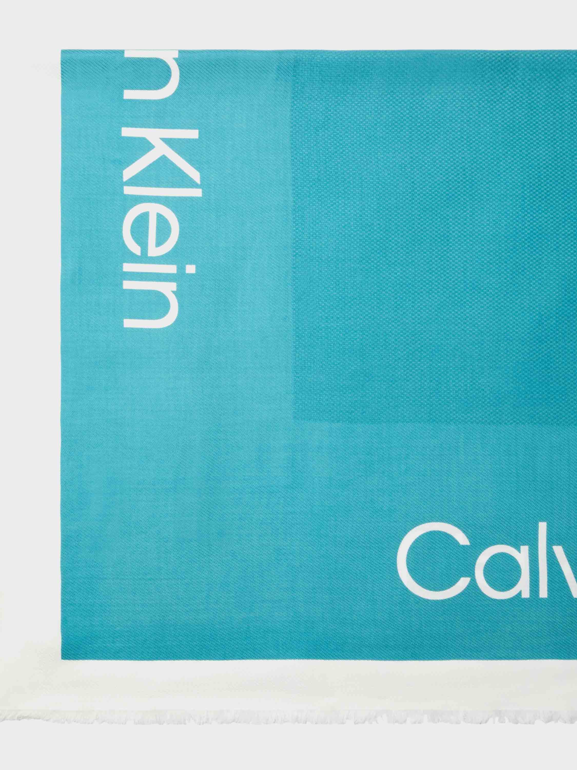 Calvin Klein - BOLD LOGO CONTRAST SCARF 120x120 , OS , Teal Slate , Style LV04F8052G