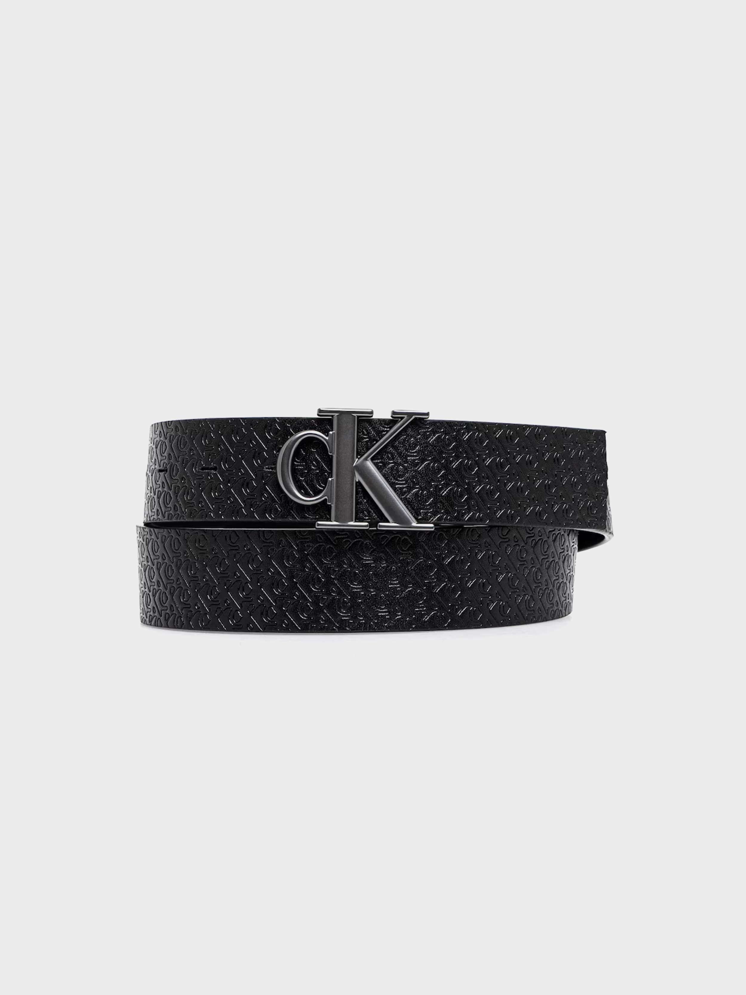 Calvin Klein - MONOGRAM PLAQUE BUCKLE 35MM ADJ/ , 105 , Black/Black AOP/Matte Gunmetal , Style LV04G7033G