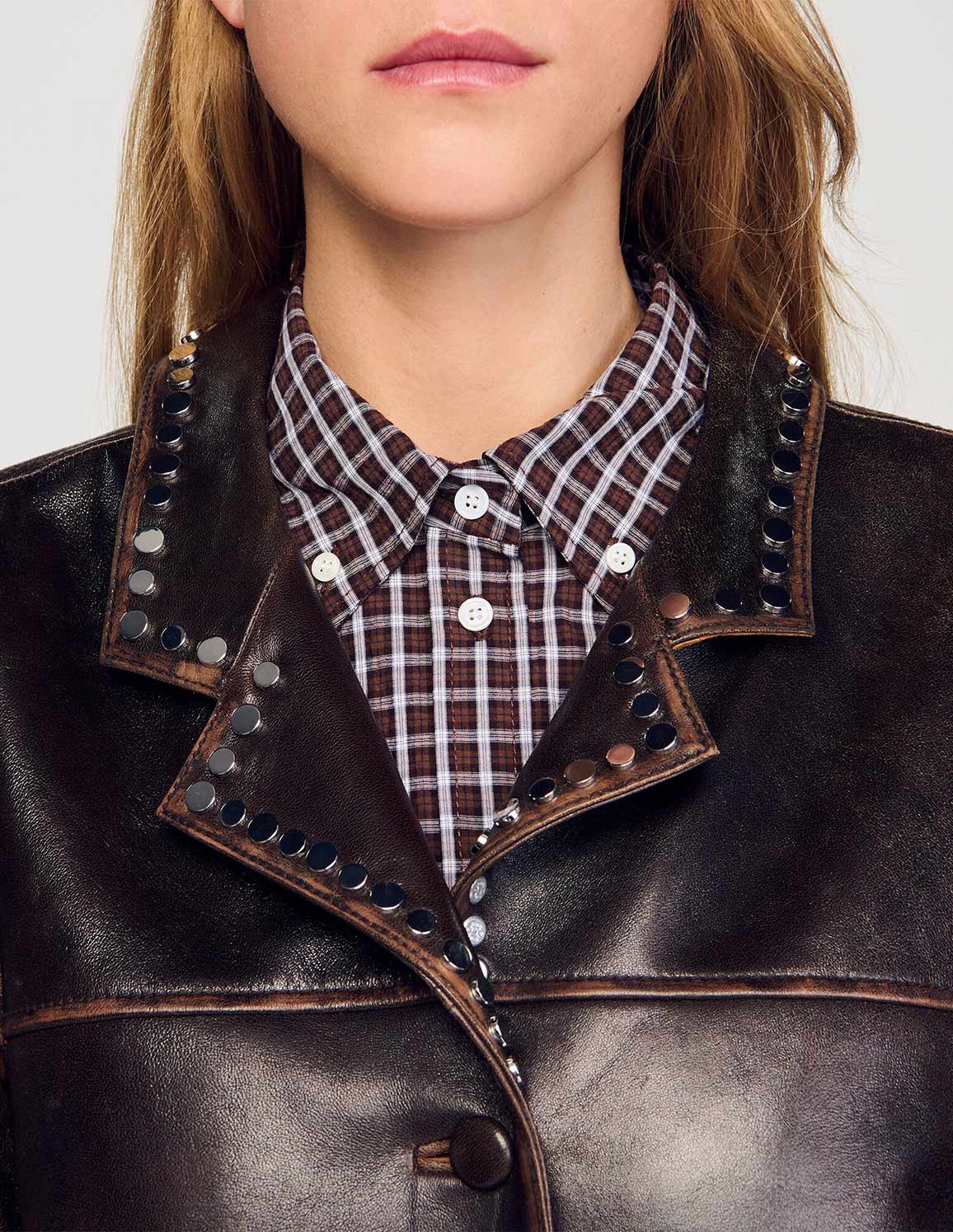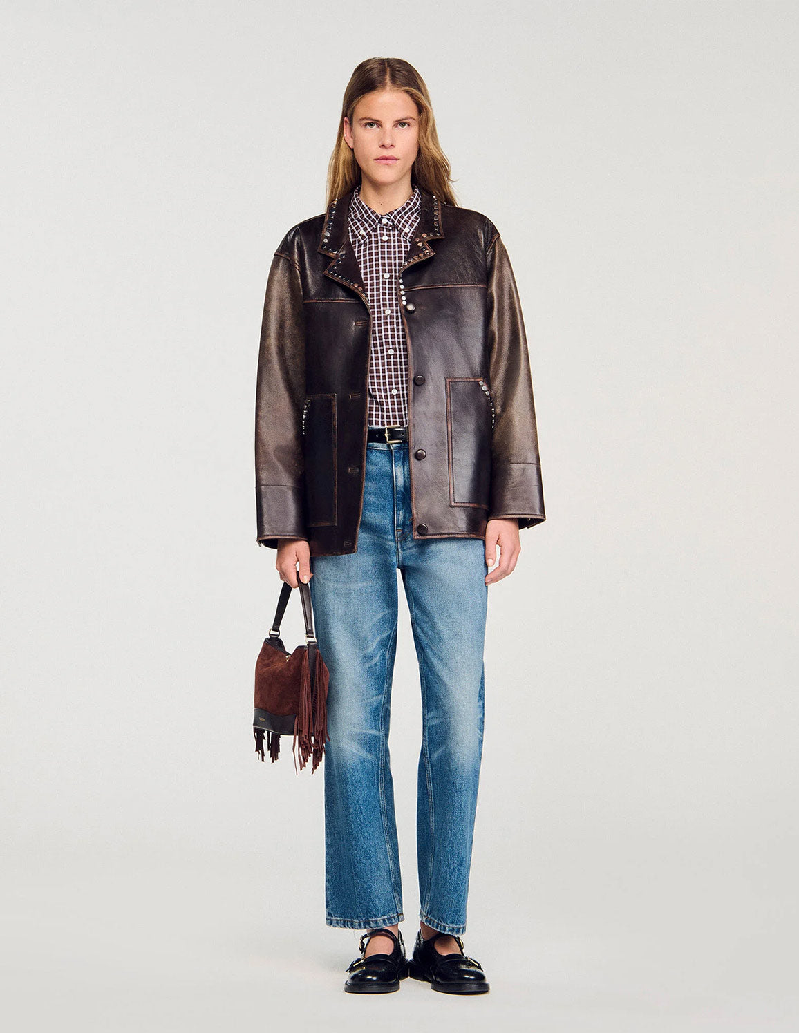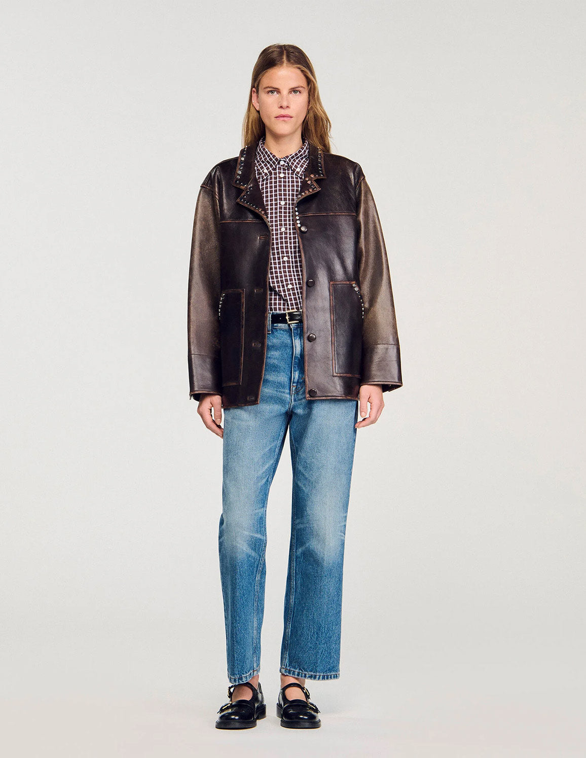 • SANDRO - Women's Oversized Leather Jacket With Studs