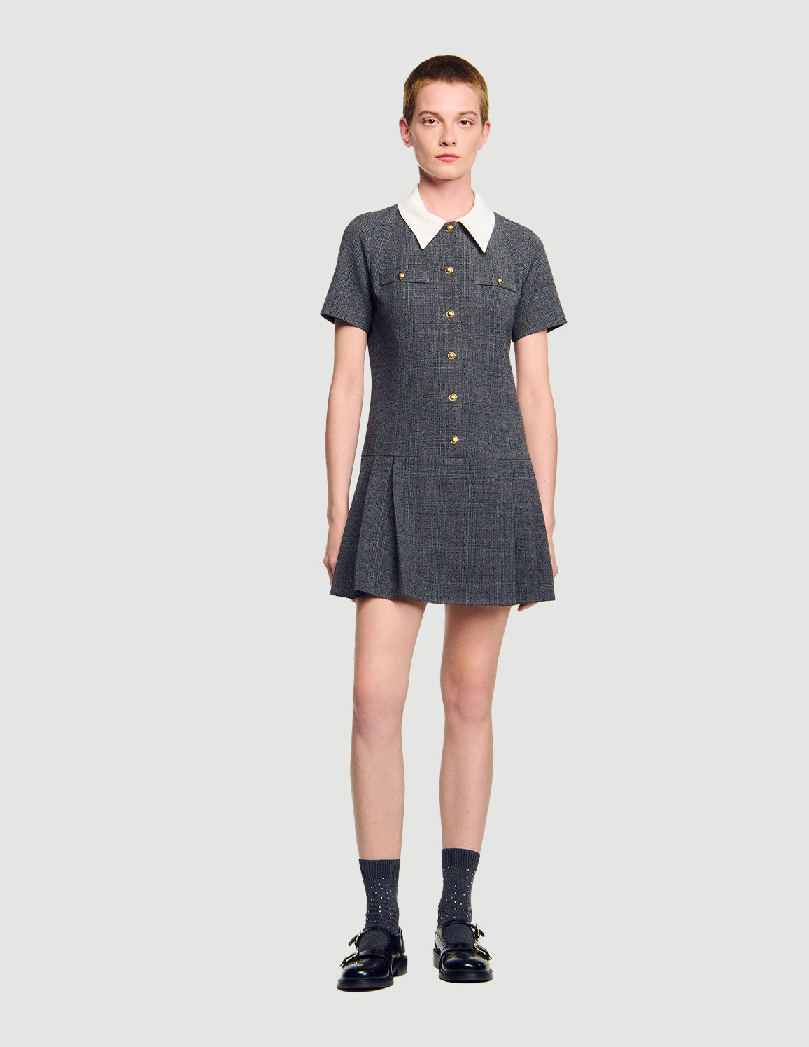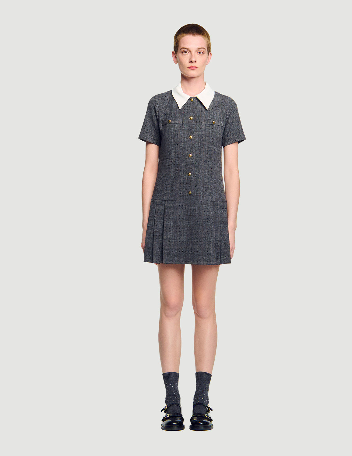 • SANDRO - Women's Mini Pleated Dress With Rhinestones
