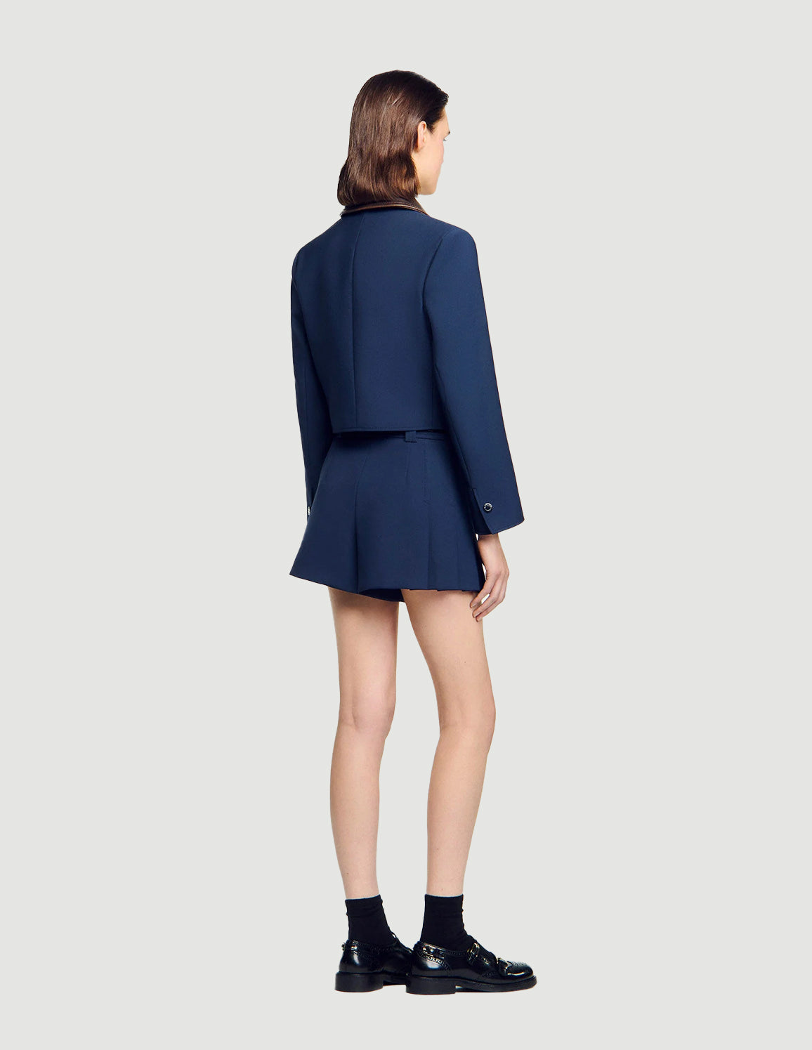 SANDRO - Women's Cropped Jacket With Leather Collar