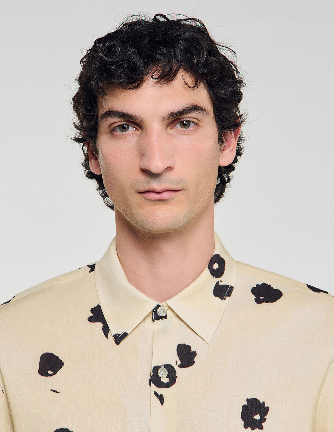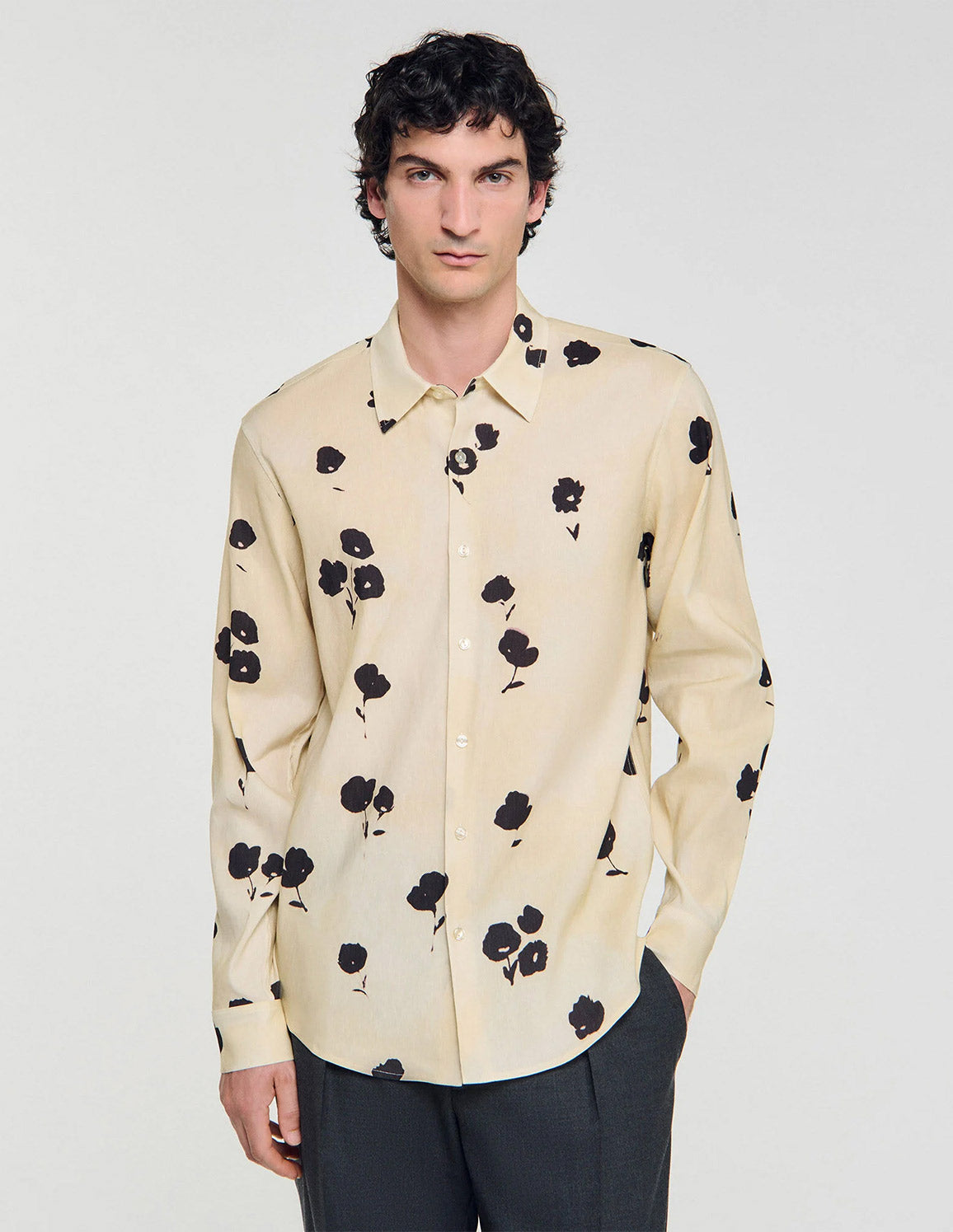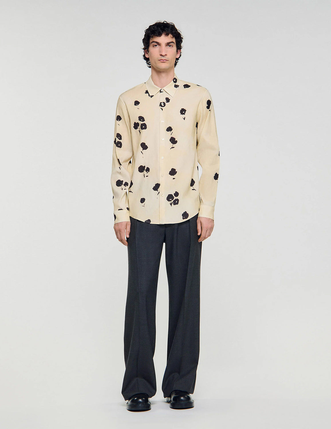 • Light linen shirt with classic collar, long sleeves and button fastening, featuring a floral print.