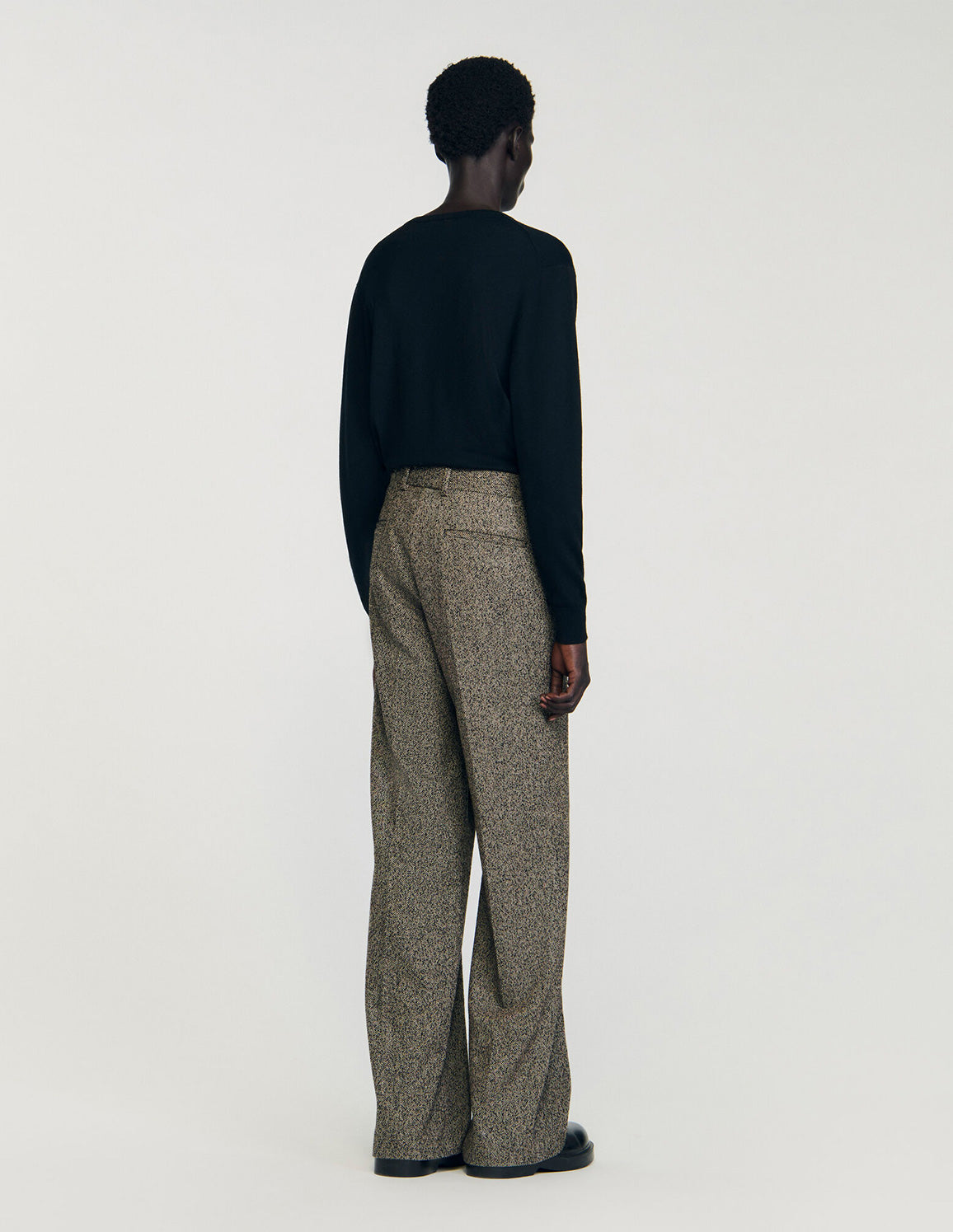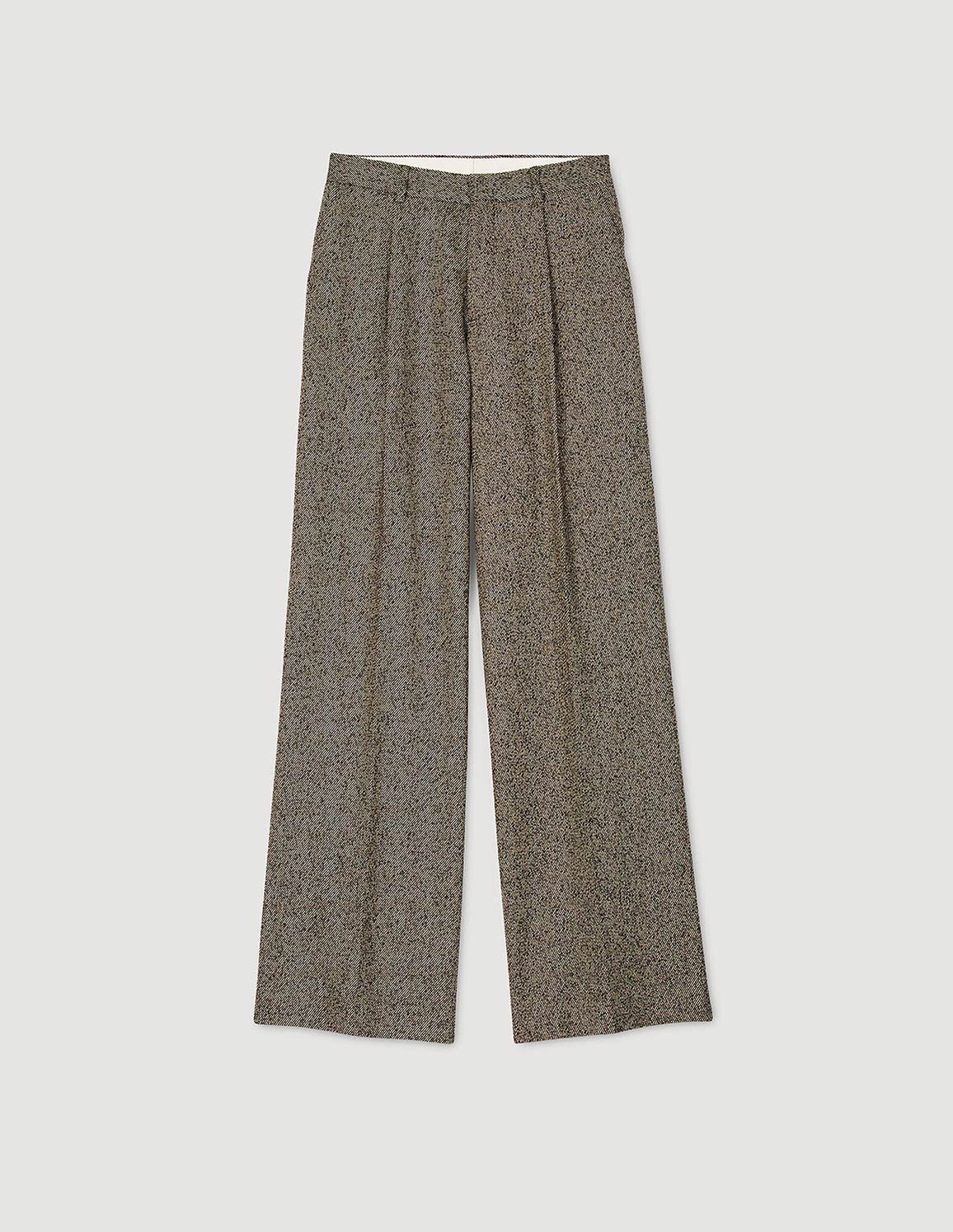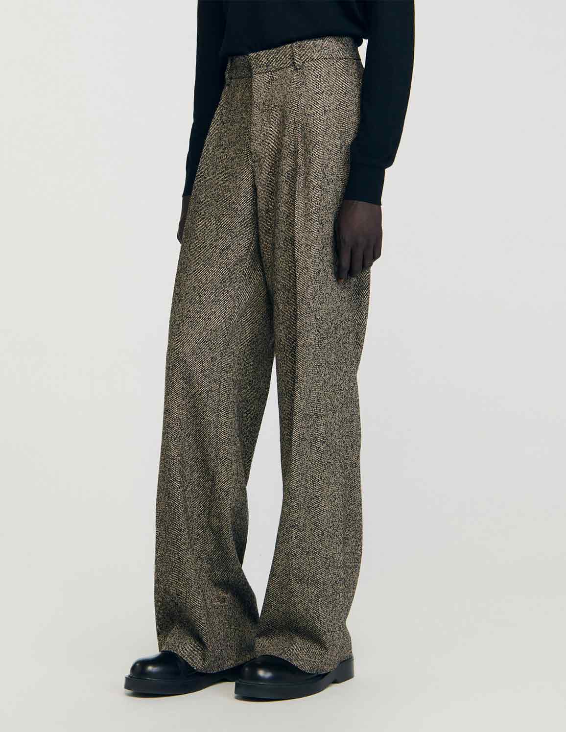 • Wide-leg wool suit trousers with front pockets and welt pockets on the back.