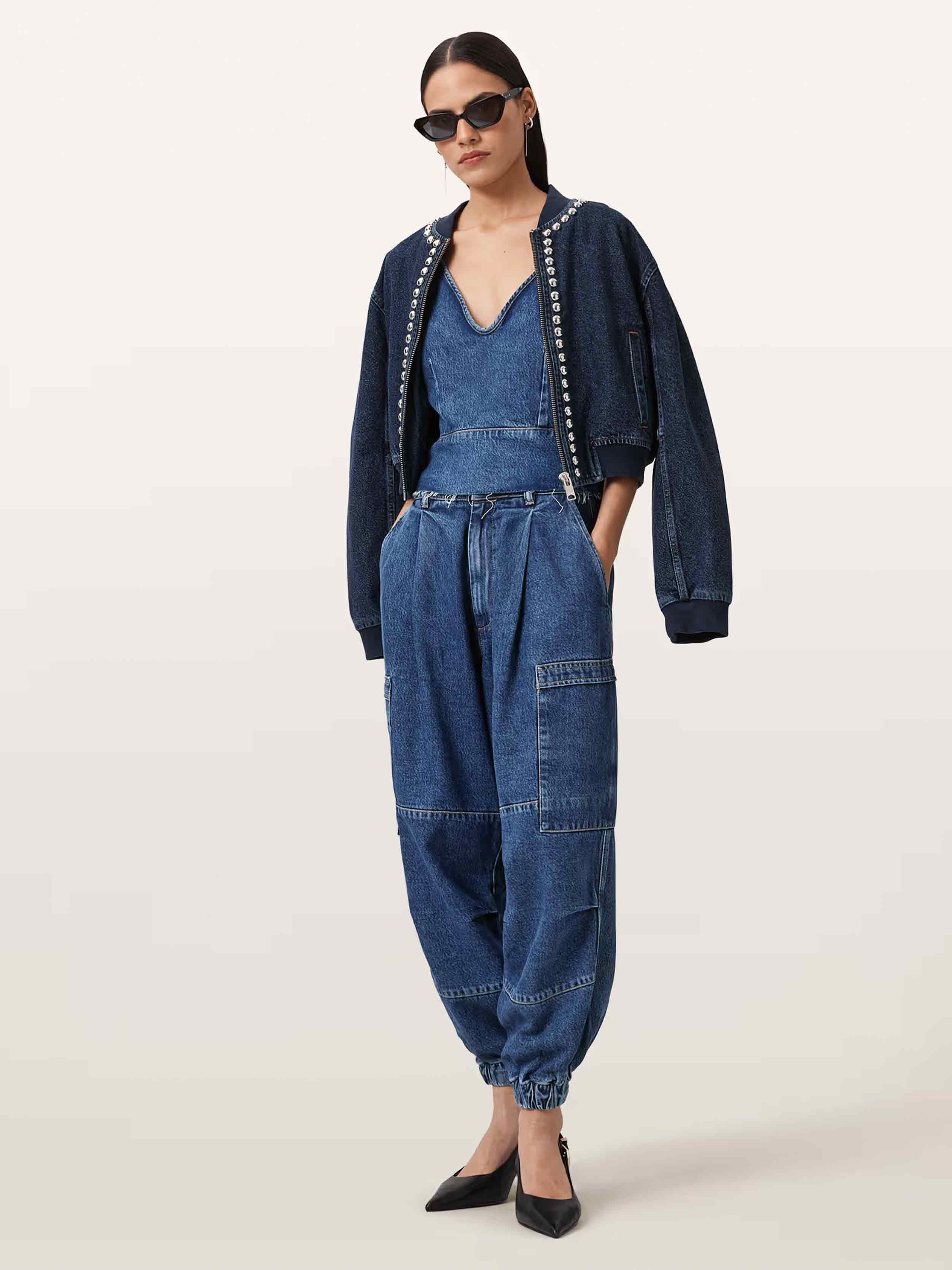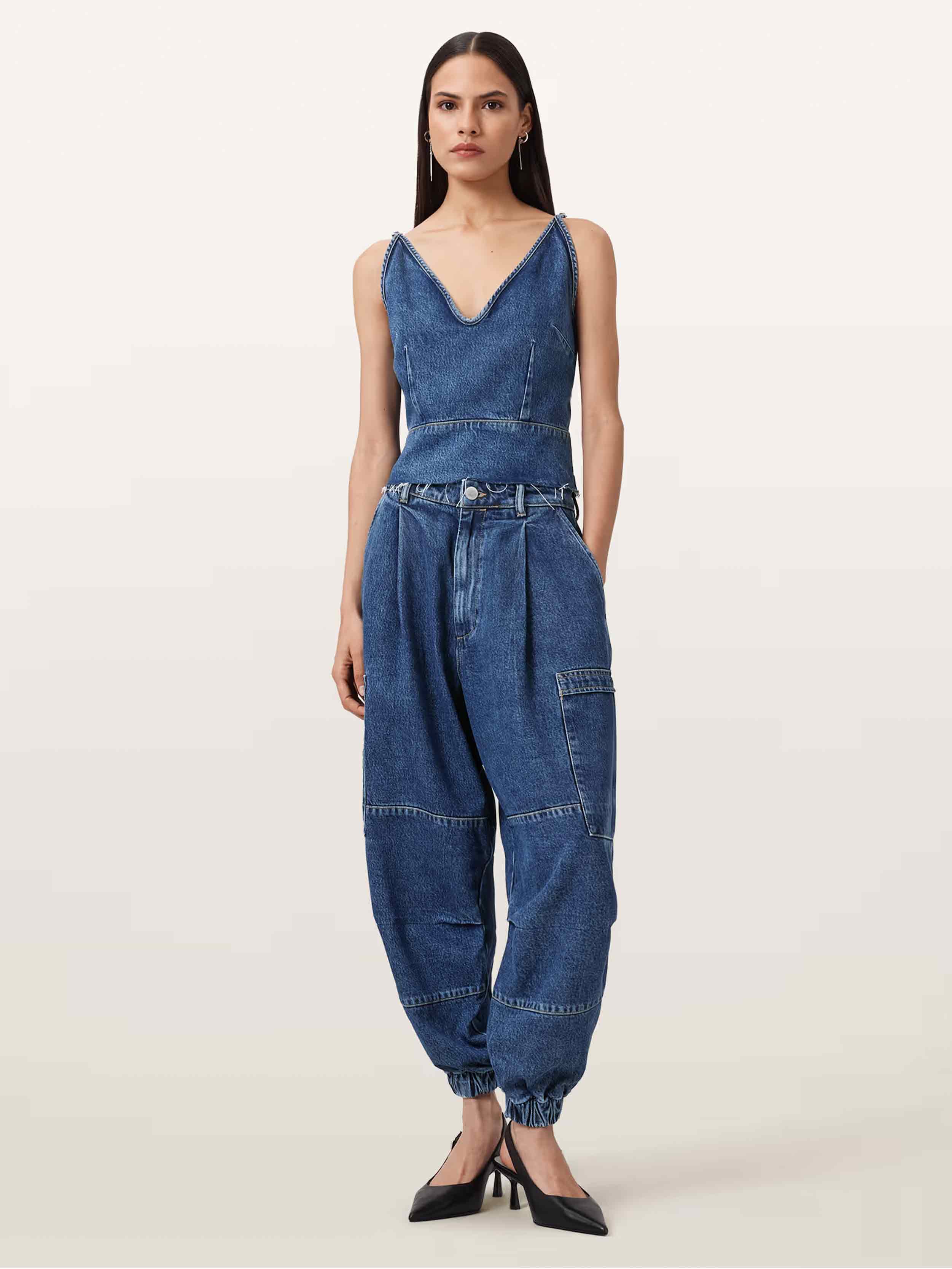 • Denim cargos? Yes please. Crafted from a cotton-blend, our Sol Denim Cargos are shaped to a tapered leg that flows effortlessly into an elasticated cuff. From tanks to oversized hoodies, these jeans offer endless styling options.