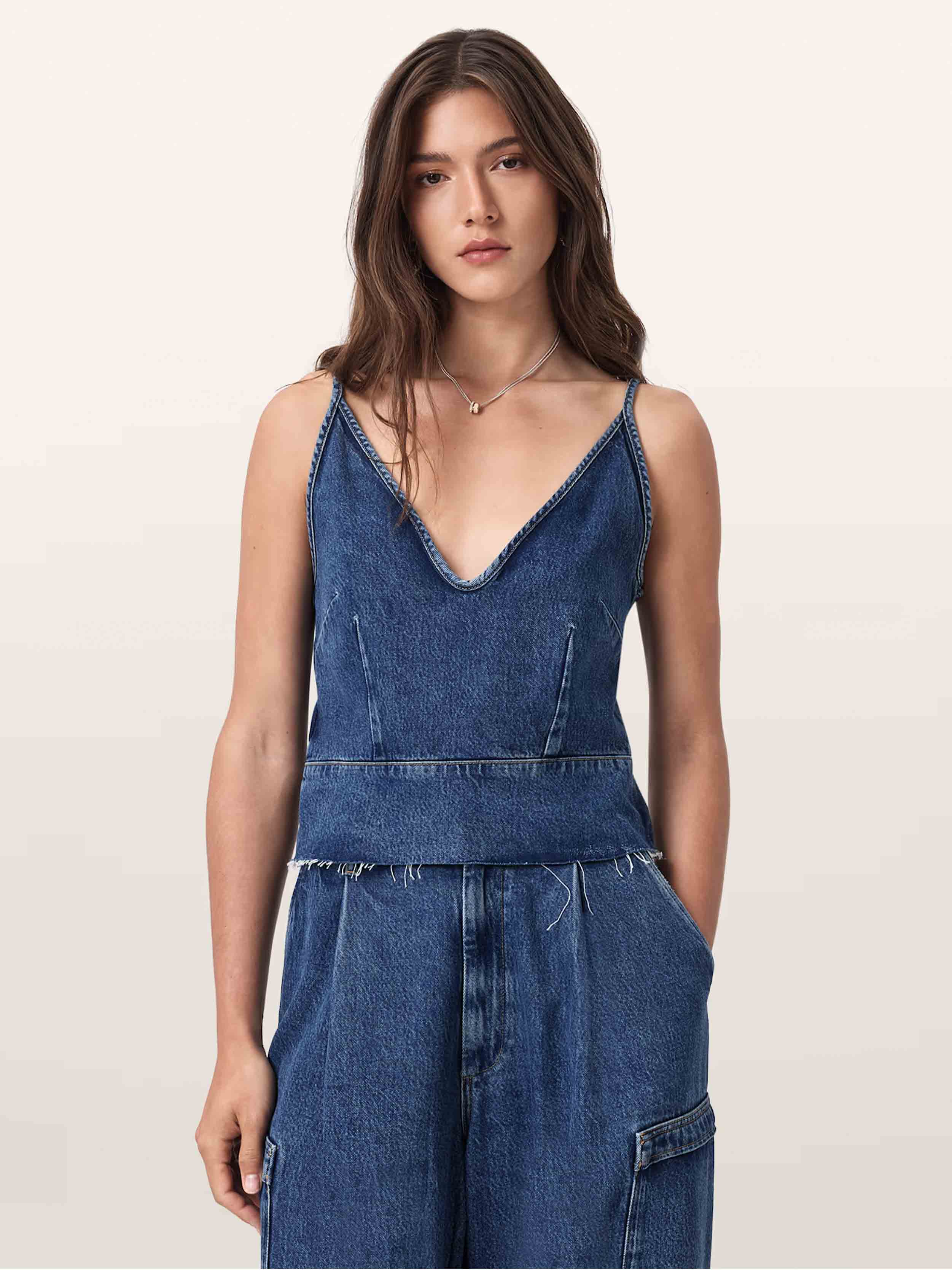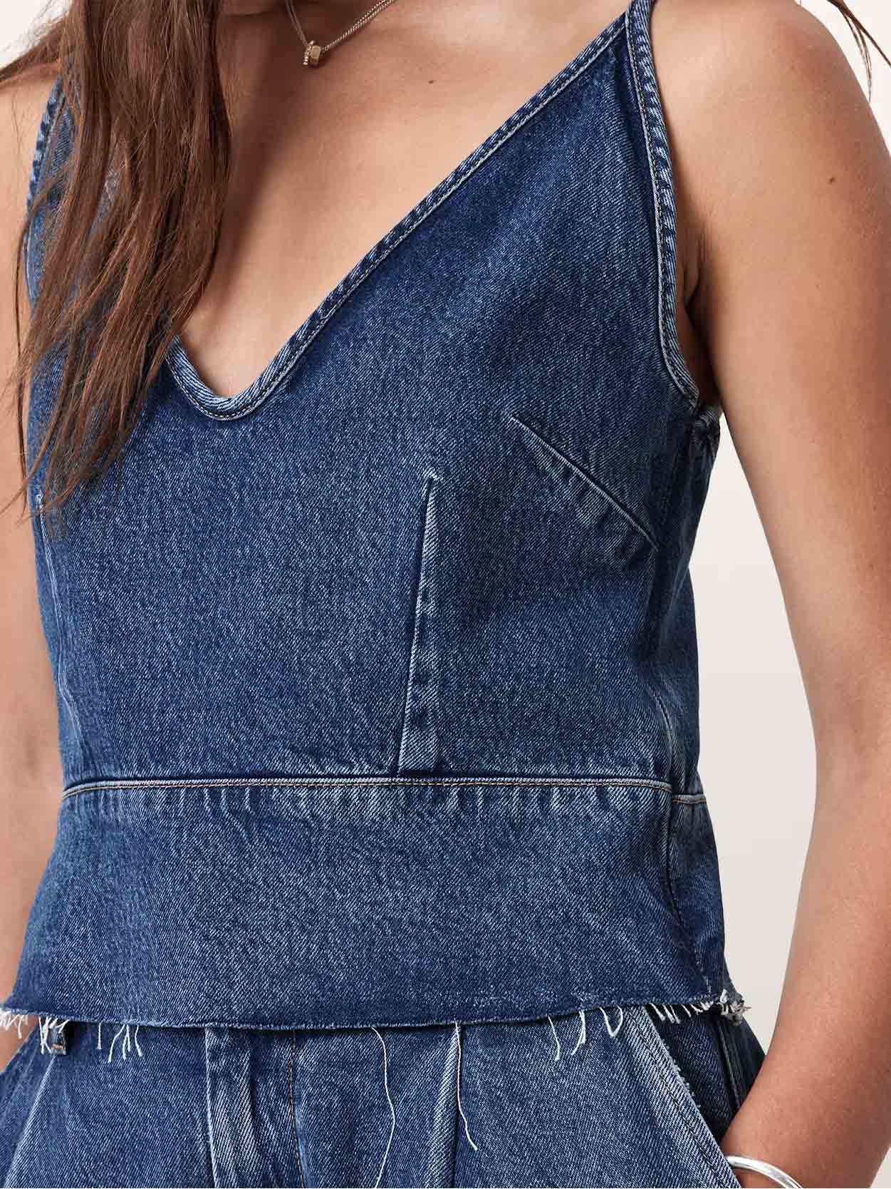 • Hey, Lilah. A denim tank top is a true noughties throwback and we are so here for it. Cut to a slim silhouette, our Lilah Denim Tank is finished with a raw hem for an alternative feel. Grab your jeans for an iconic double-denim outfit.