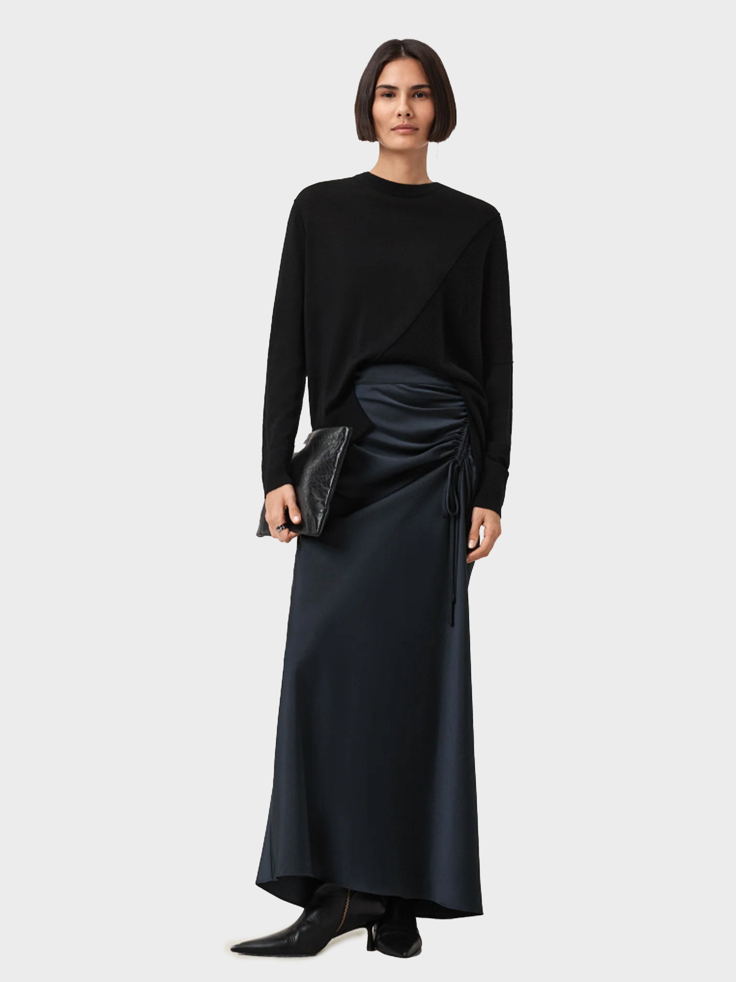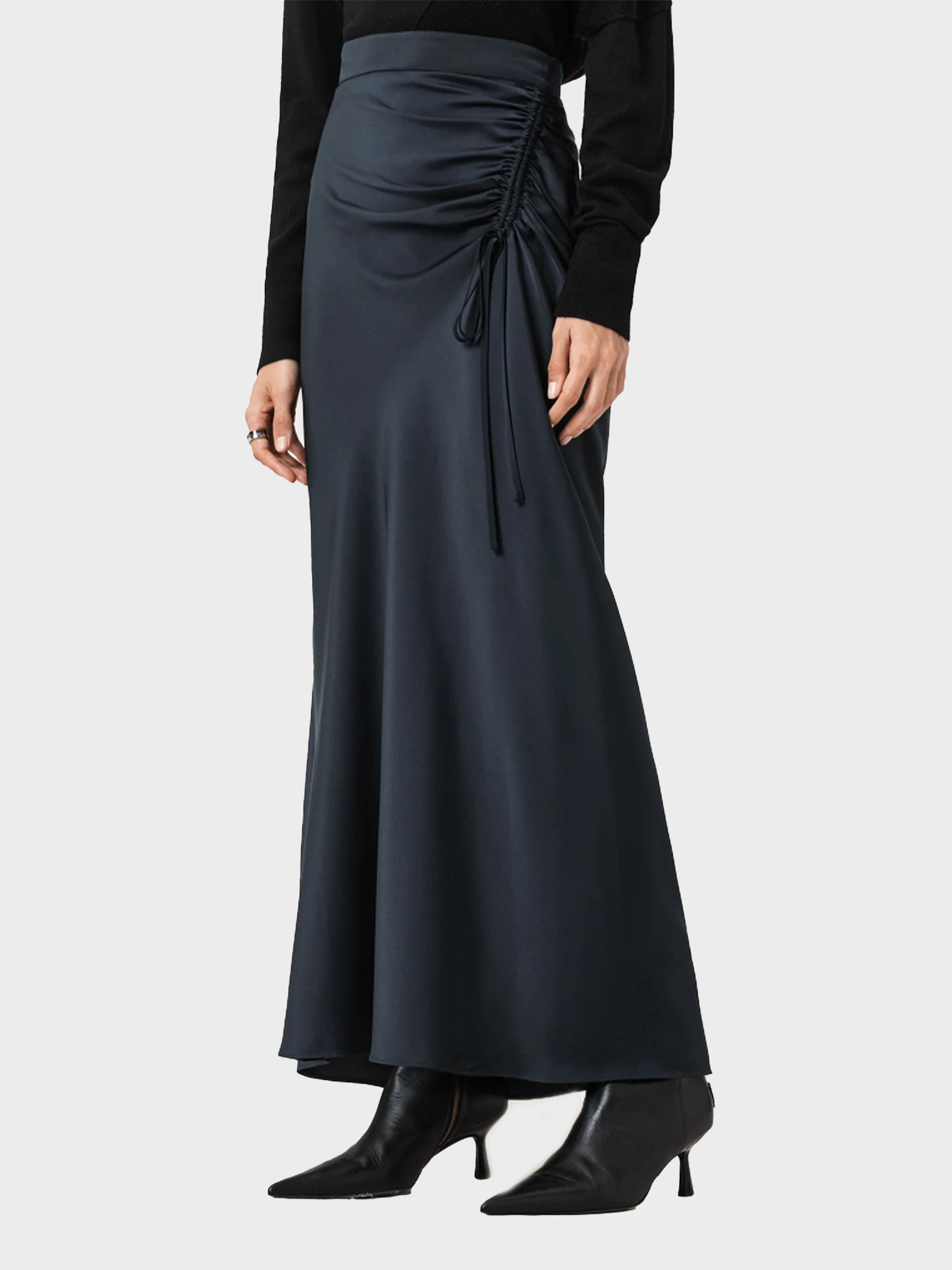 • A sultry wardrobe staple, this is the Alexia. Cut to a classic regular shape with an elegant drape, this maxi-length skirt features refined drawstring ruching at the hip. Dress it up with heels and one of our blazers for your next evening drinks.