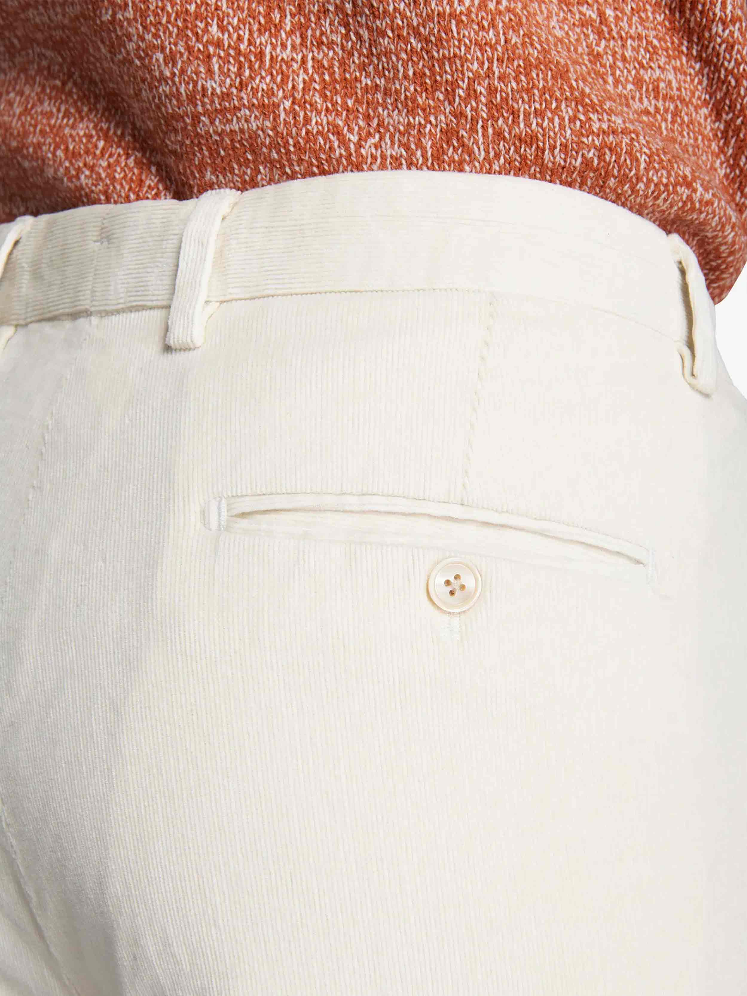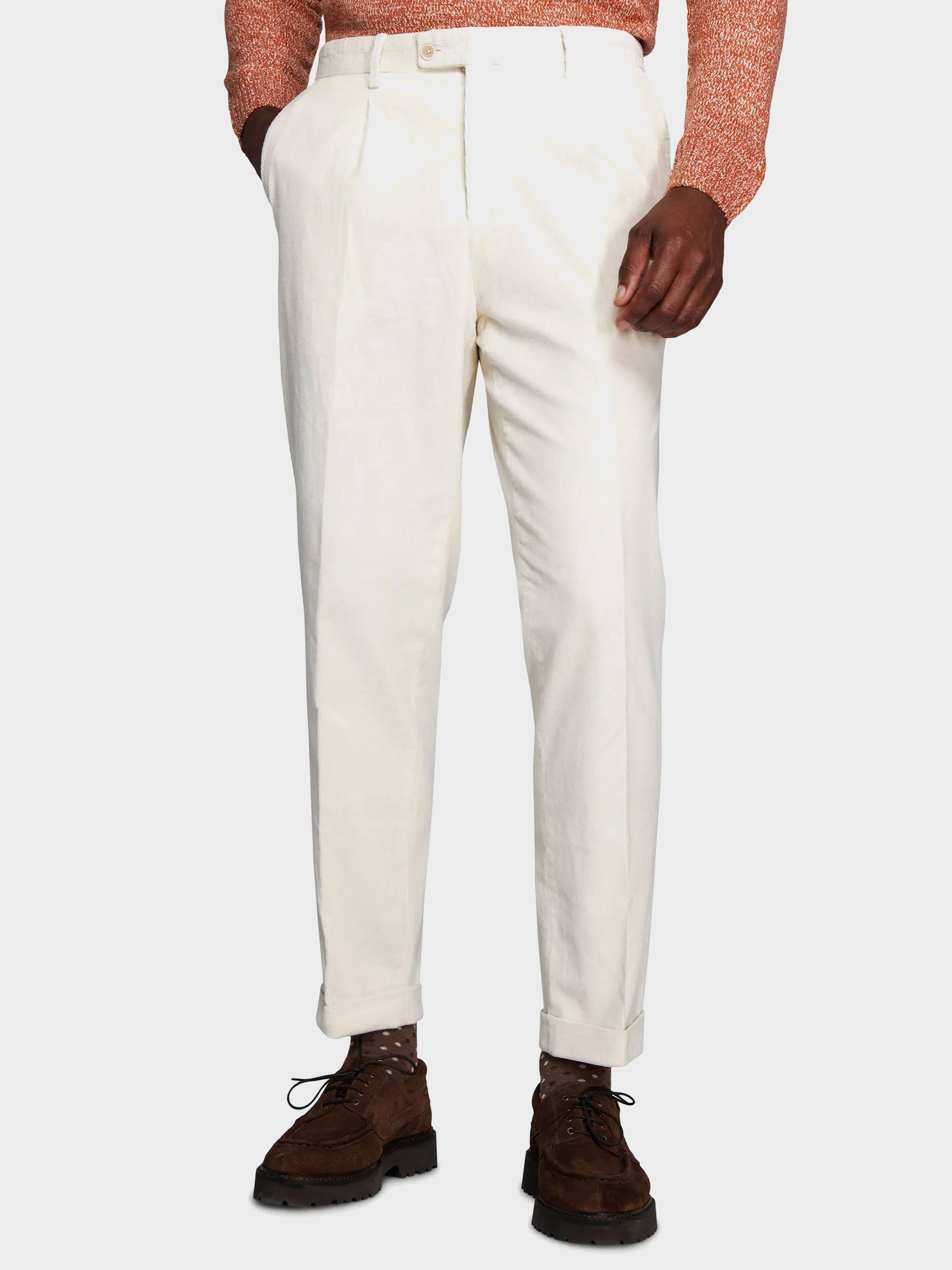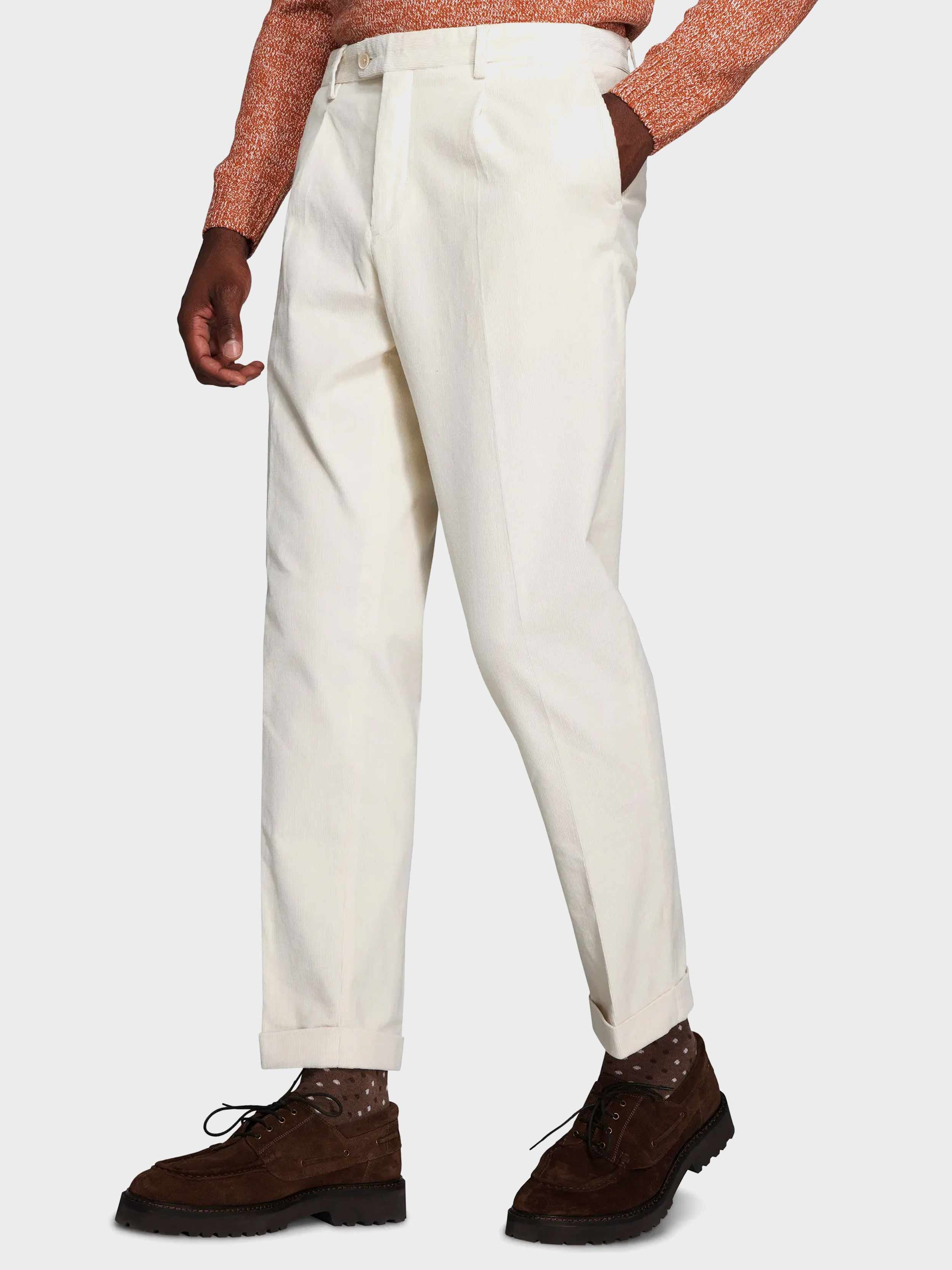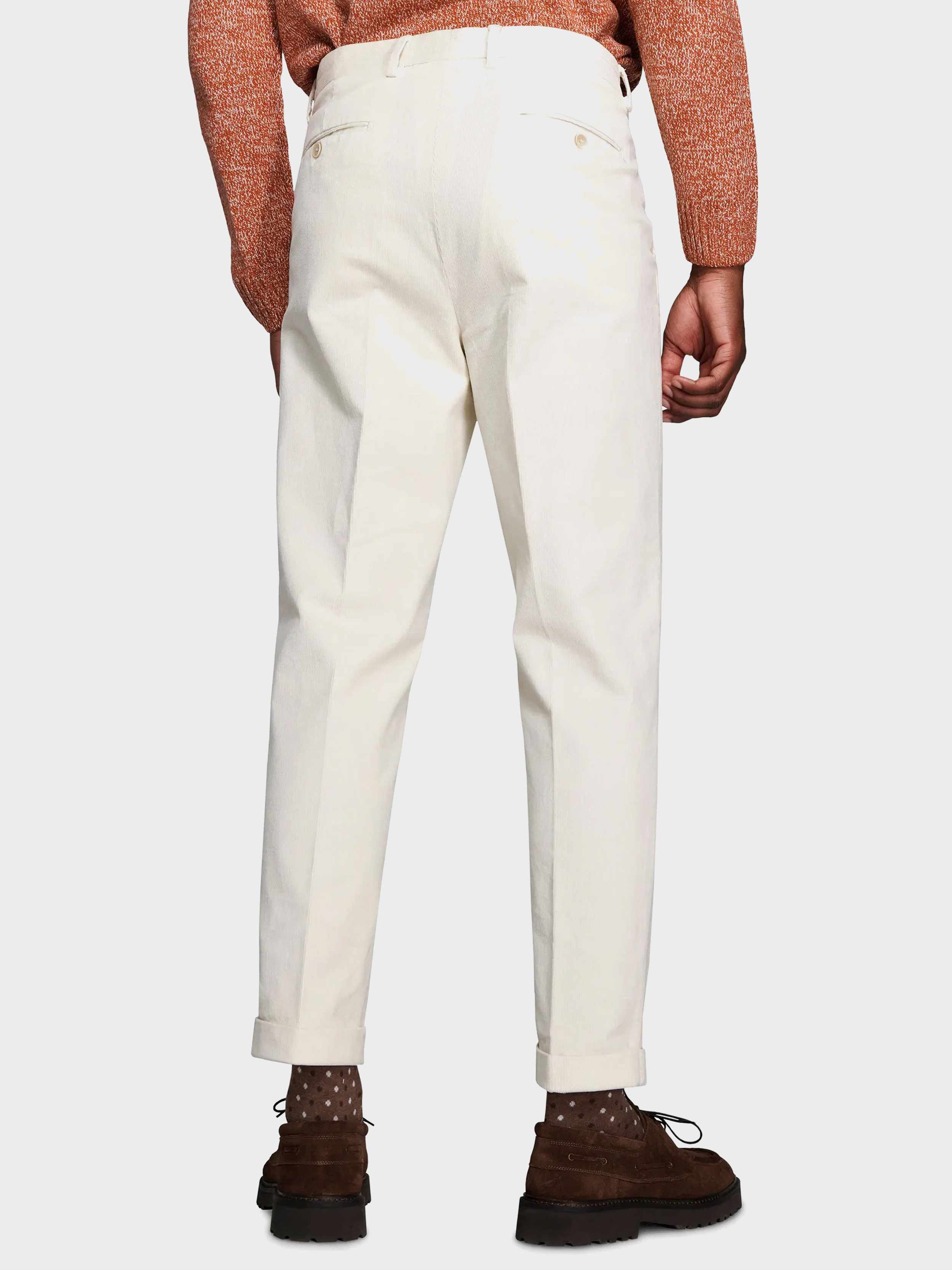 • Millesime velvet trousers. Straight cut with slanted pockets. Pleated trousers, belt with belt loops at the waist.